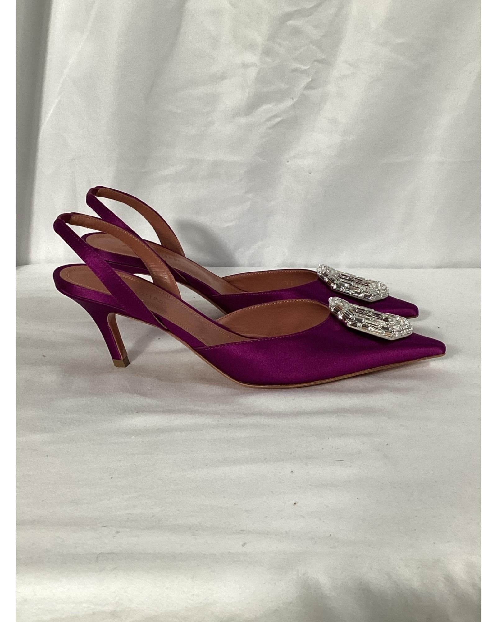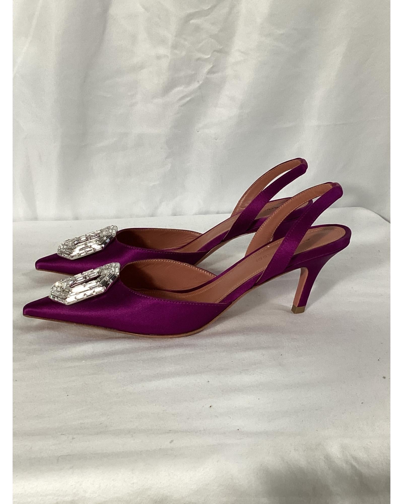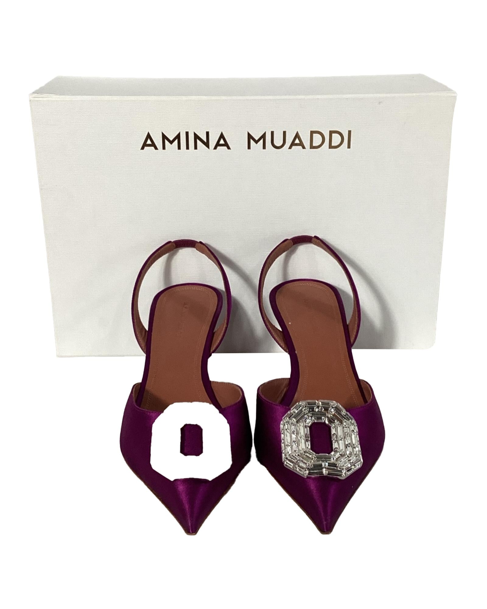- Amina Muaddi Camelia Slingback Pumps in Purple Satin