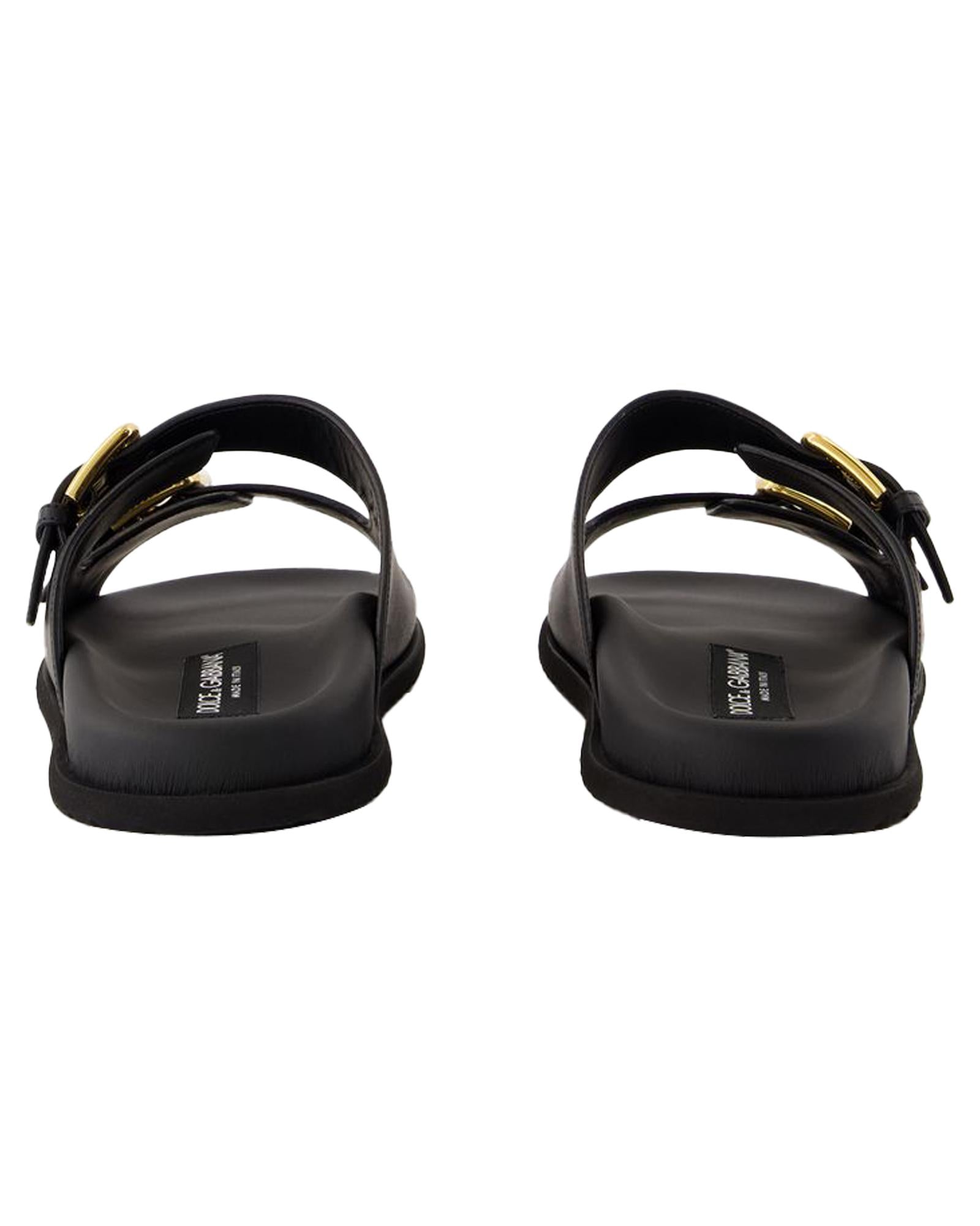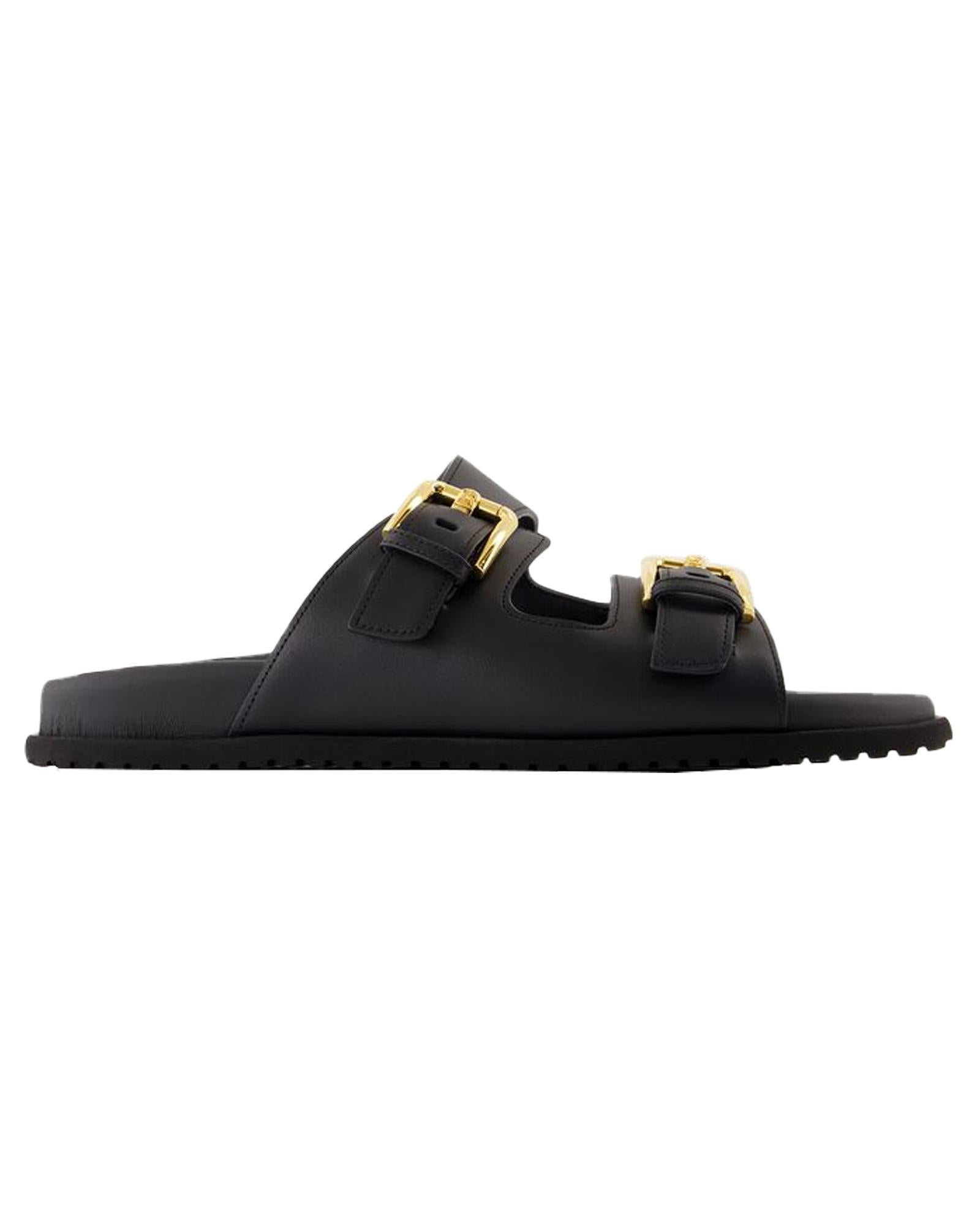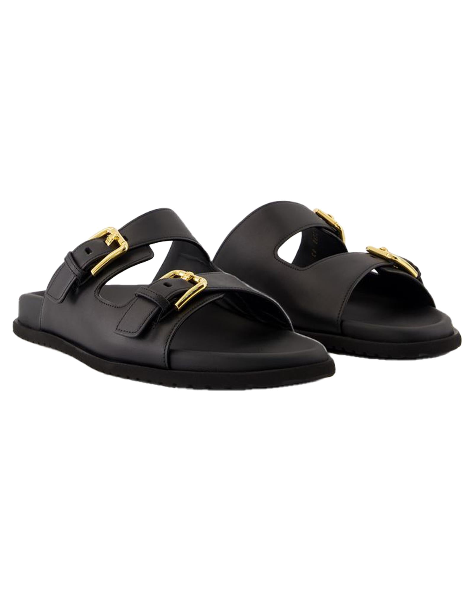 Leather Slides Double Buckle Sandals