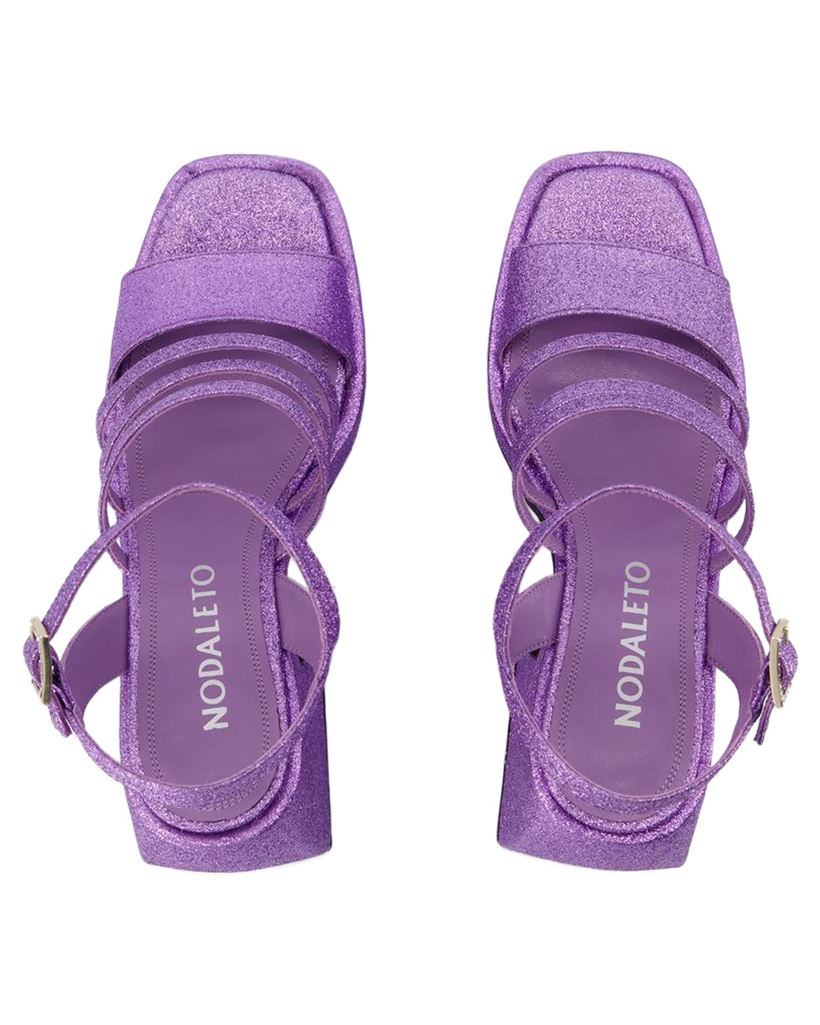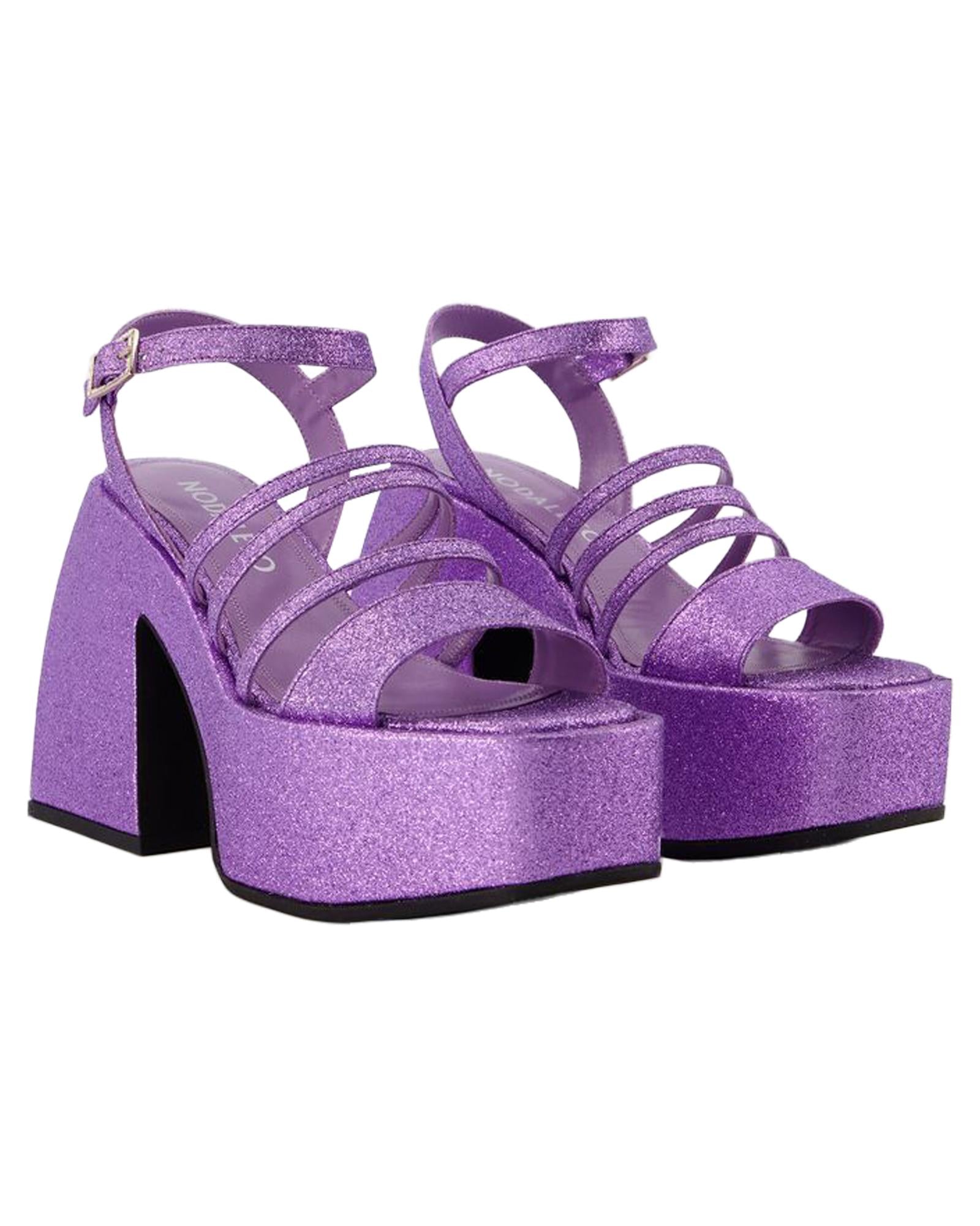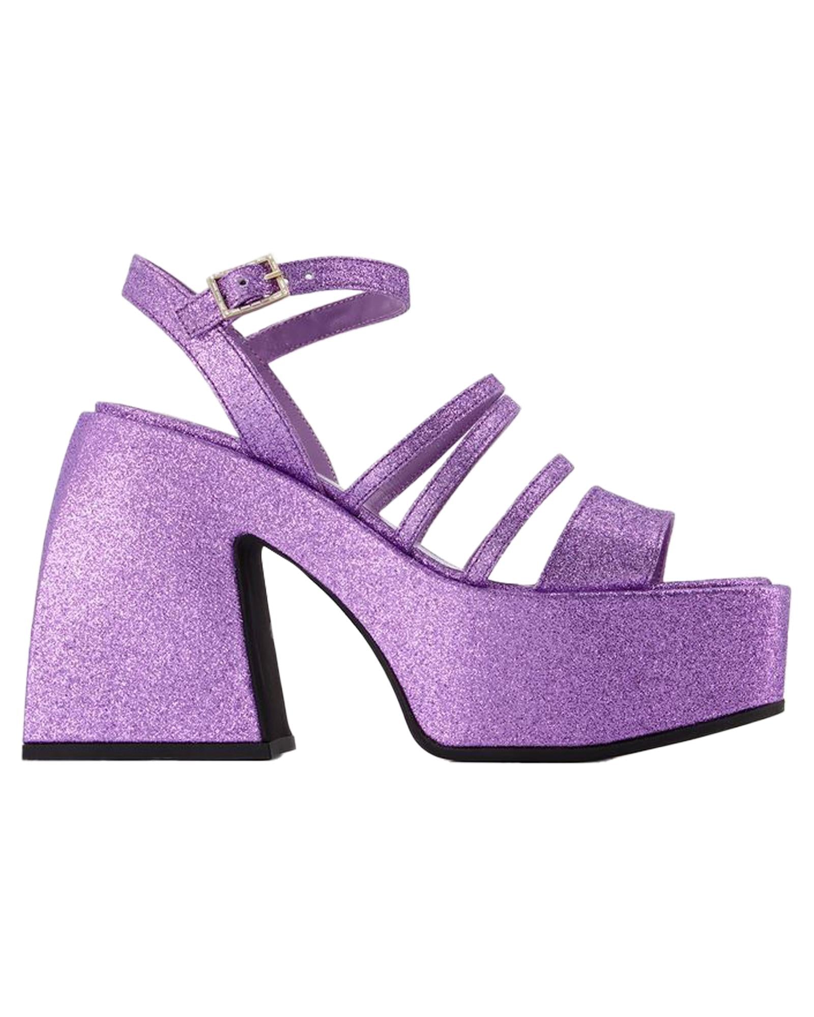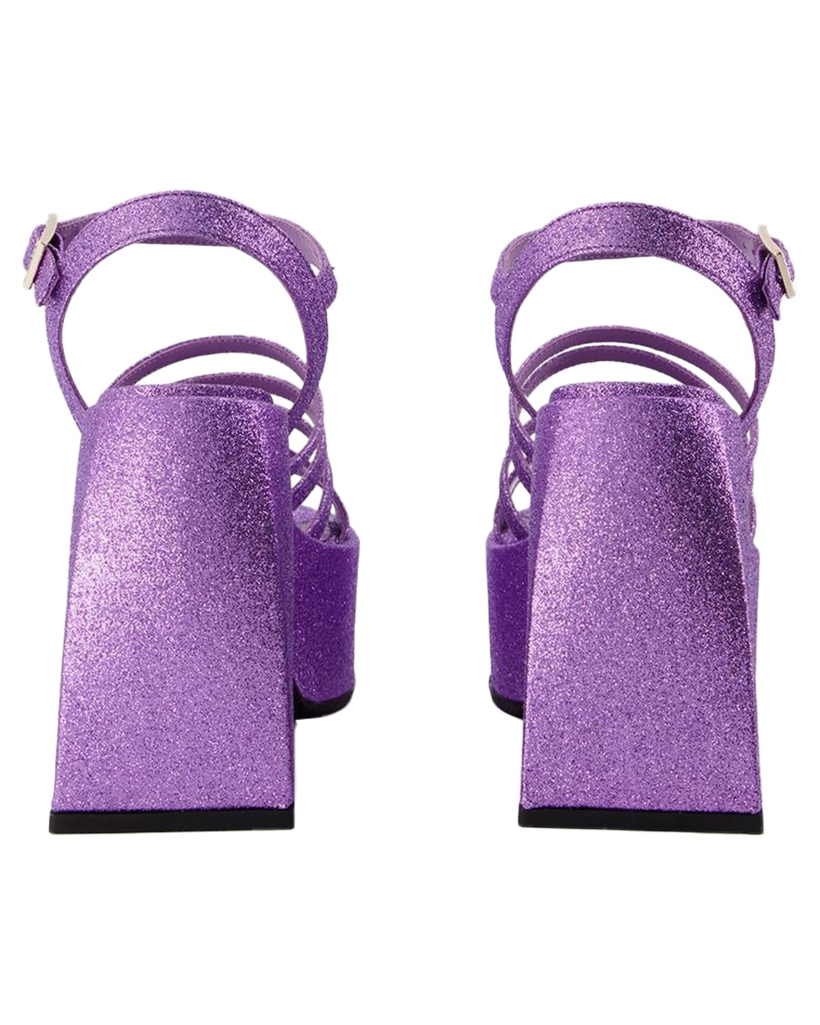Glitter Leather Ankle Strap Sandals with Open Round Toe
