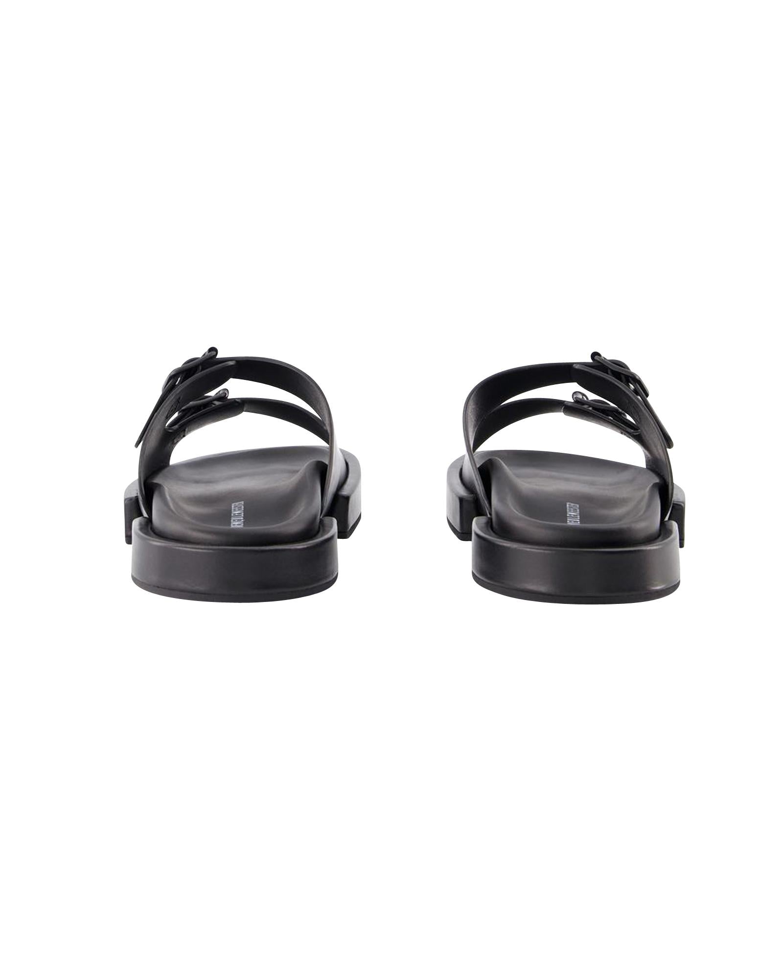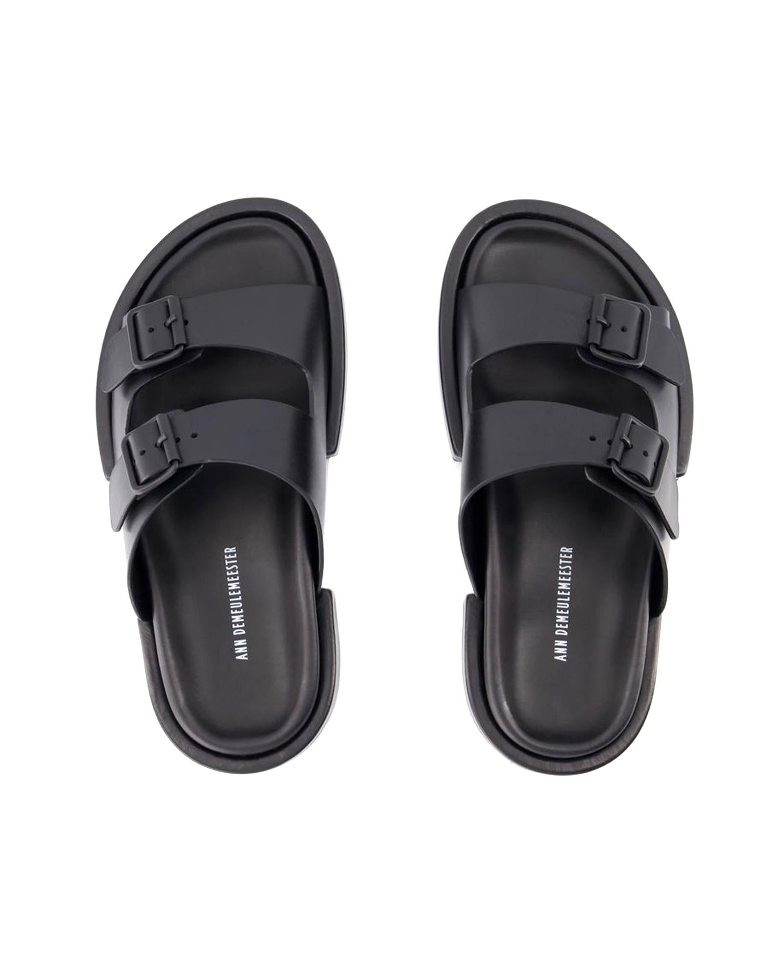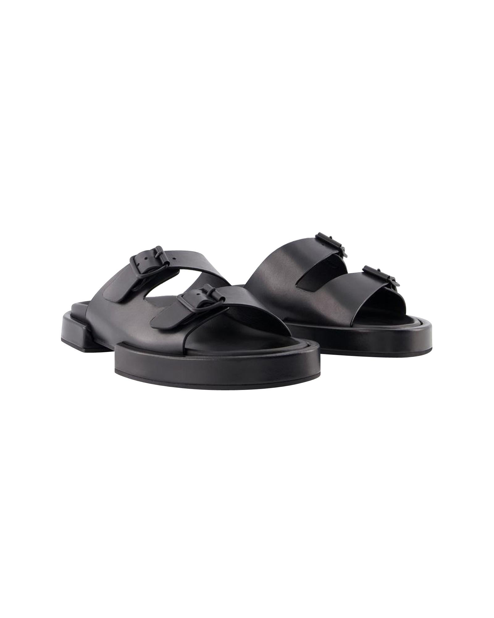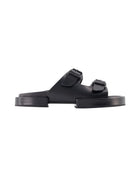 Pointed Toe Slip-on Sandals - Smooth Black Leather