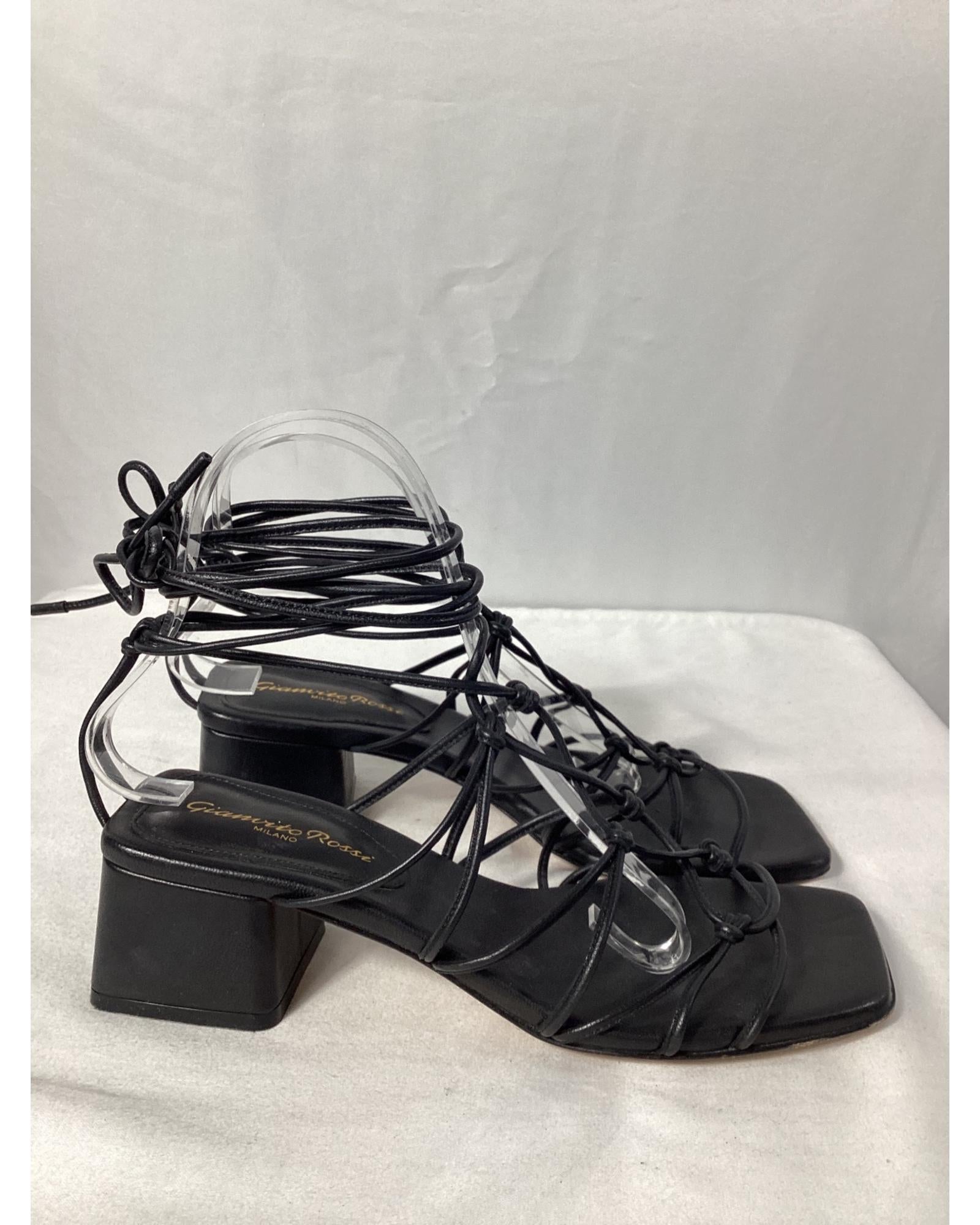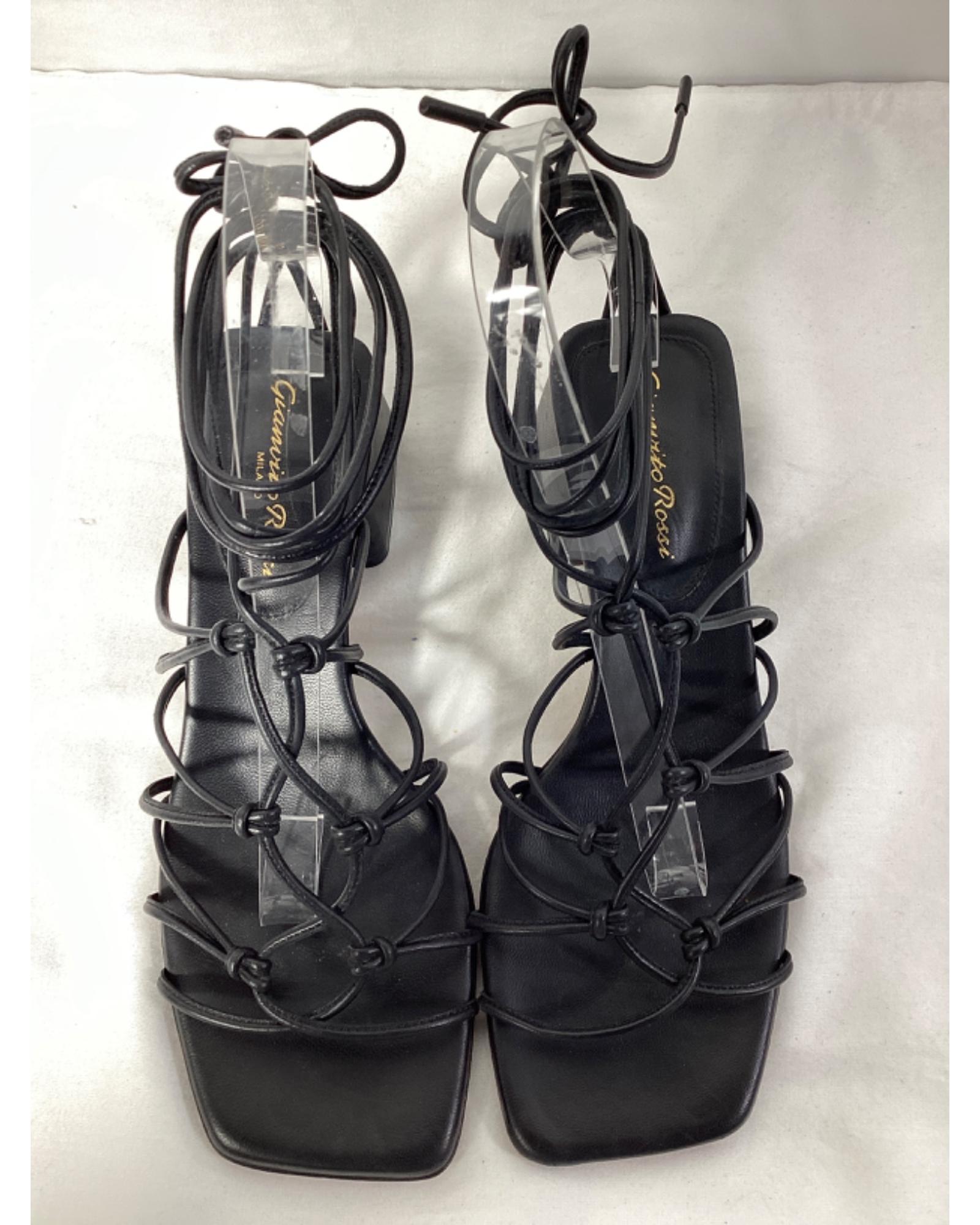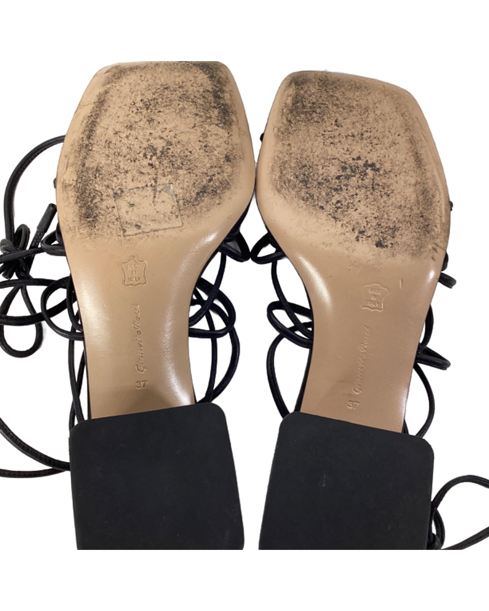 • Gianvito Rossi Minas 45 Knotted Sandal Heels in Black Leather