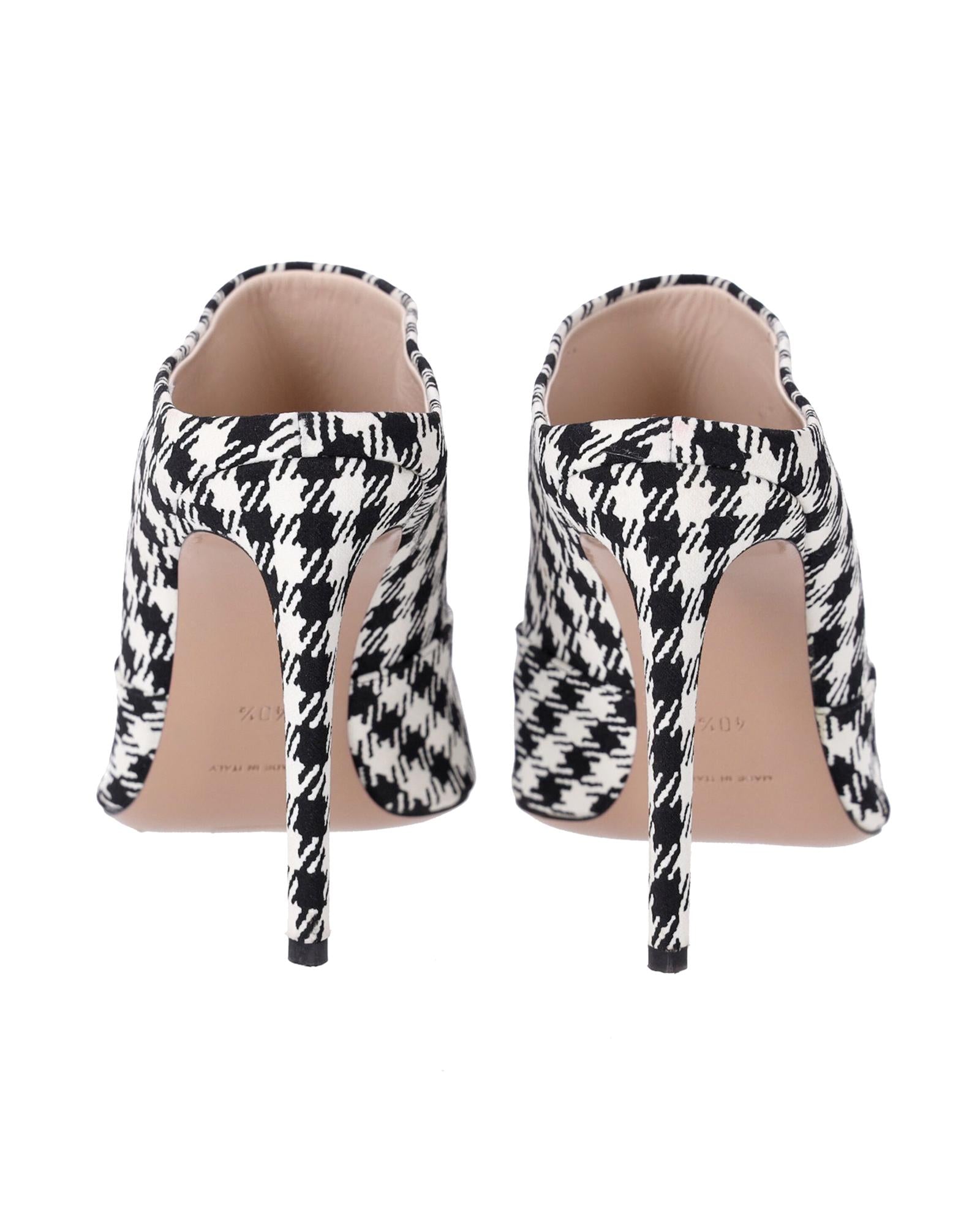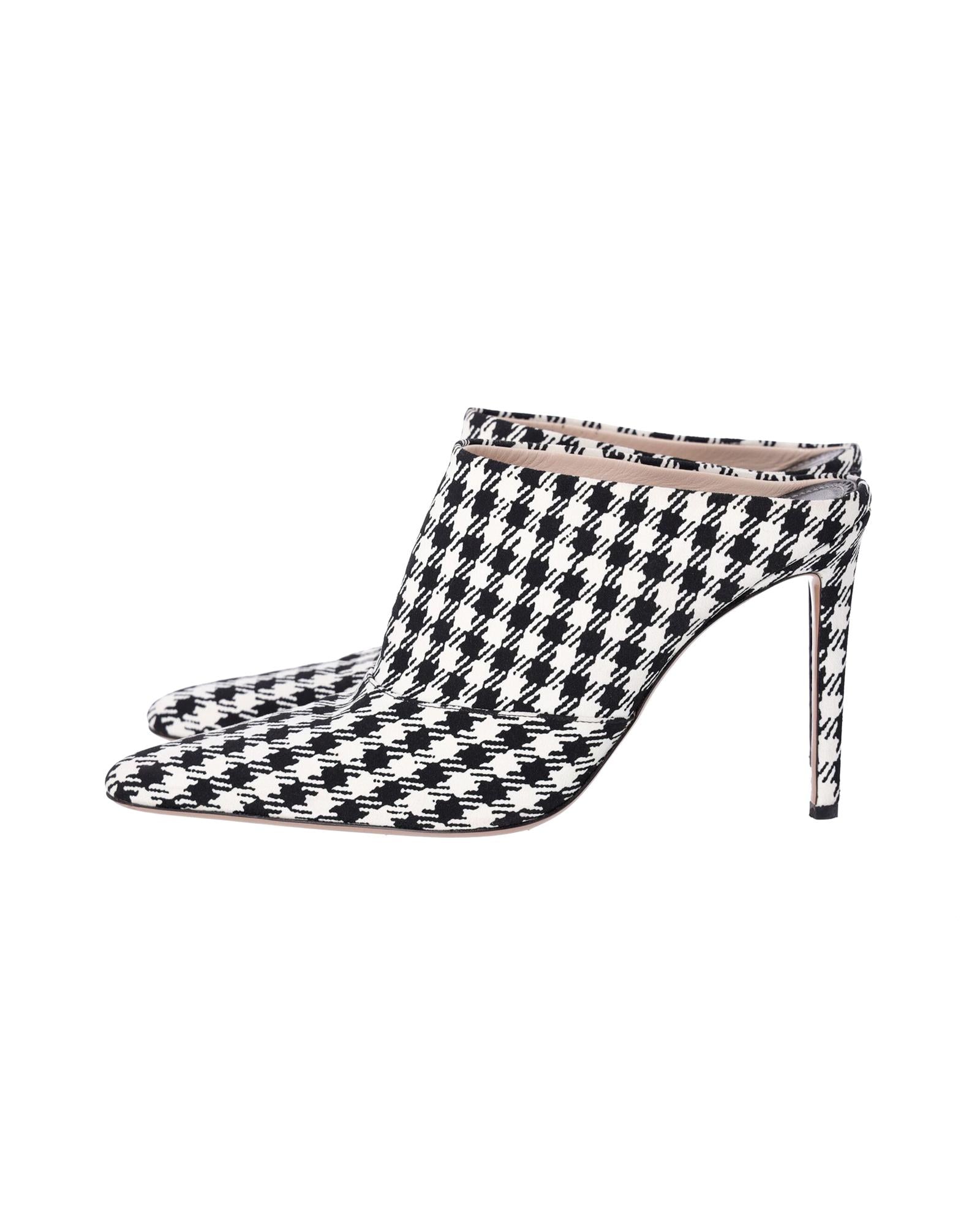 Pre-owned Houndstooth Pointy Toe Mules