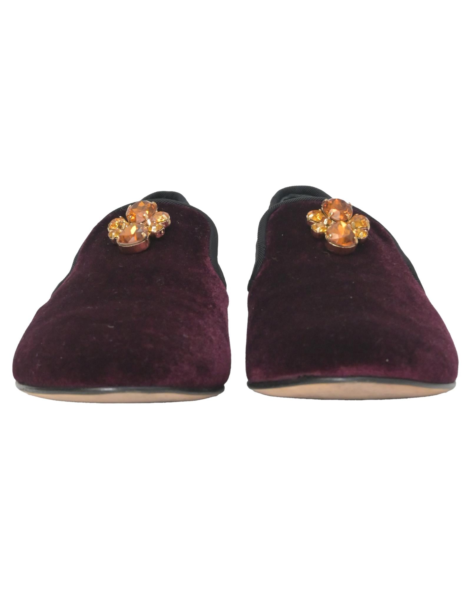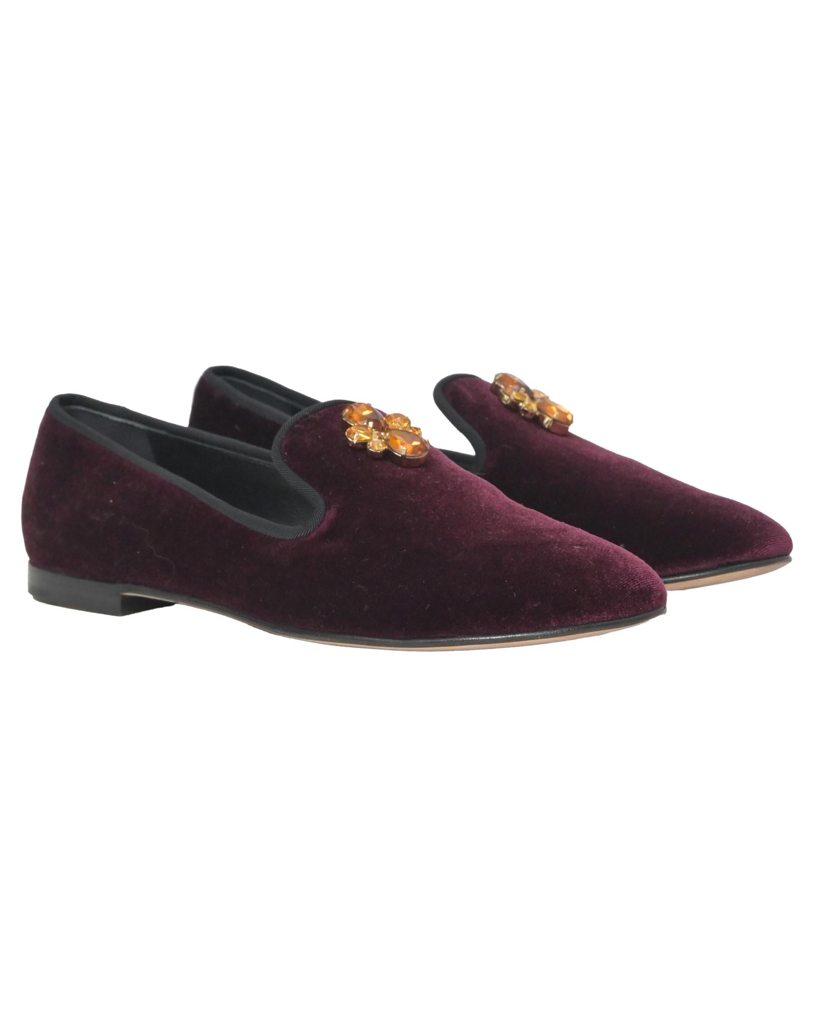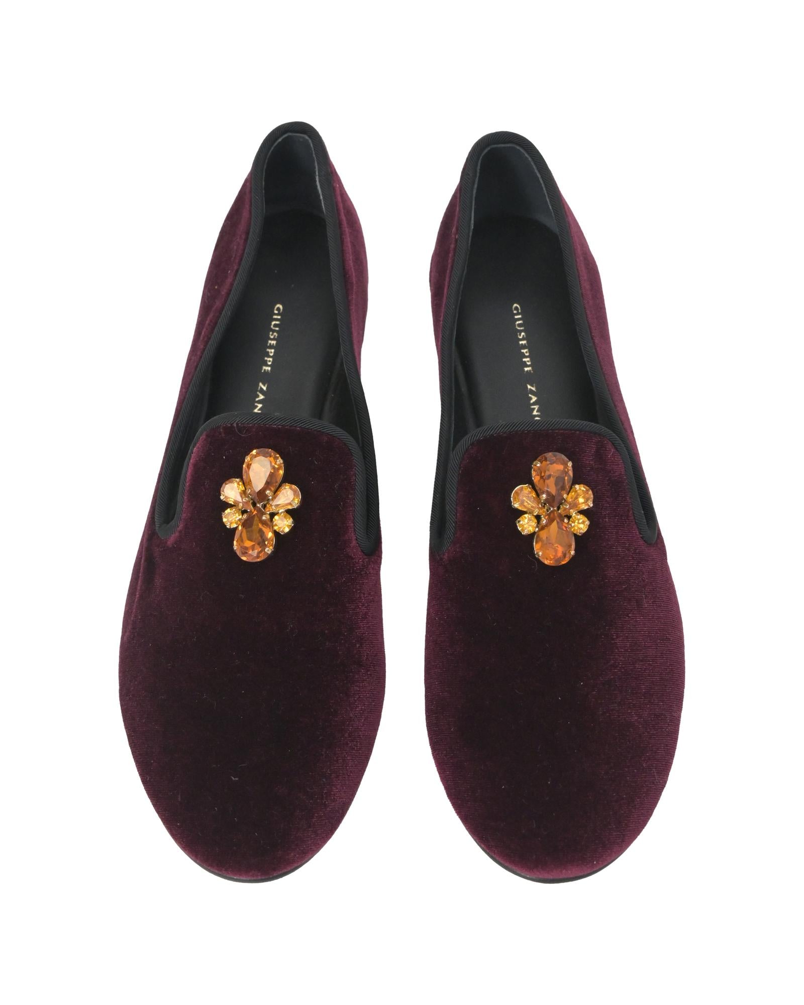 - Giuseppe Zanotti Dalila Crystal Embellished Loafers in Burgundy Velvet