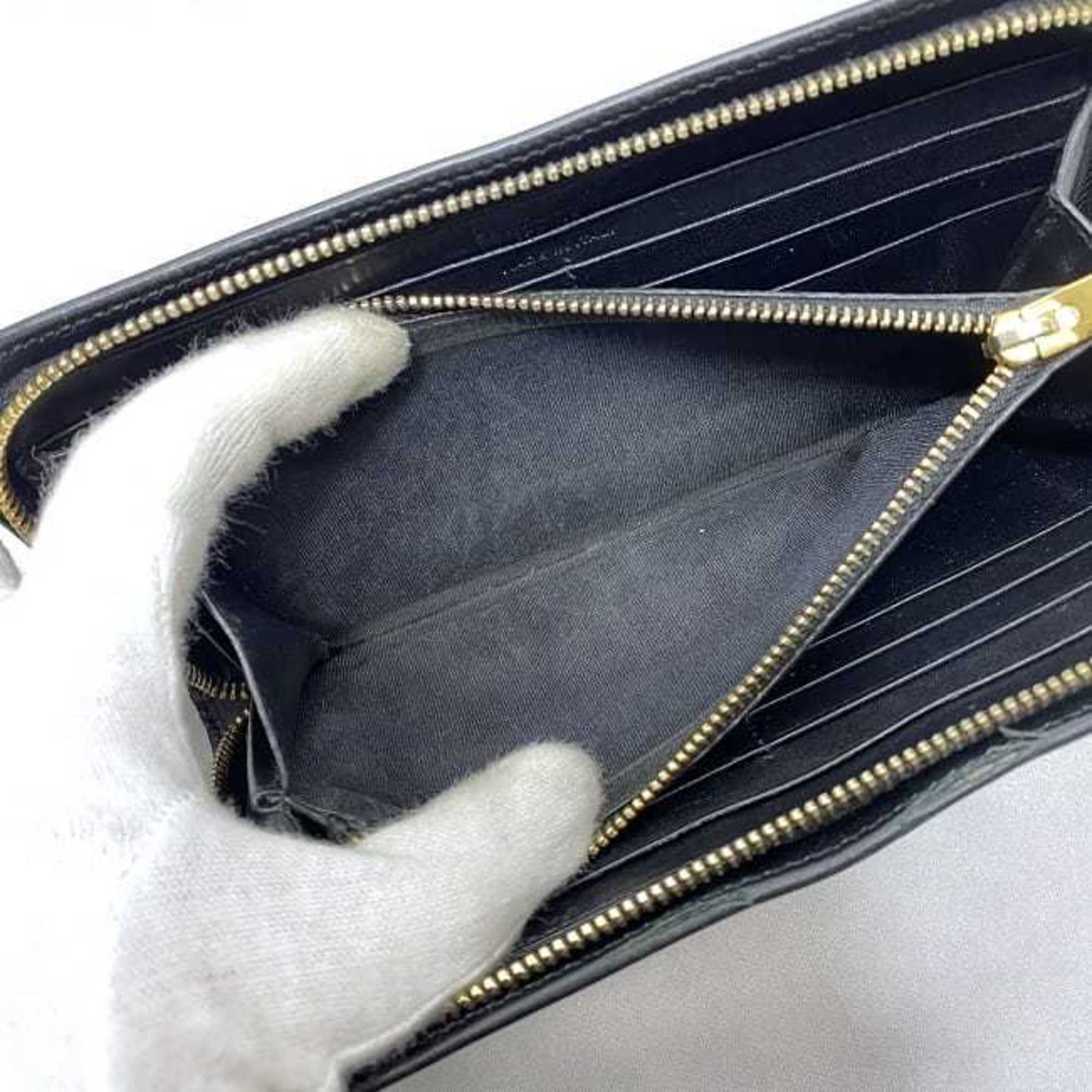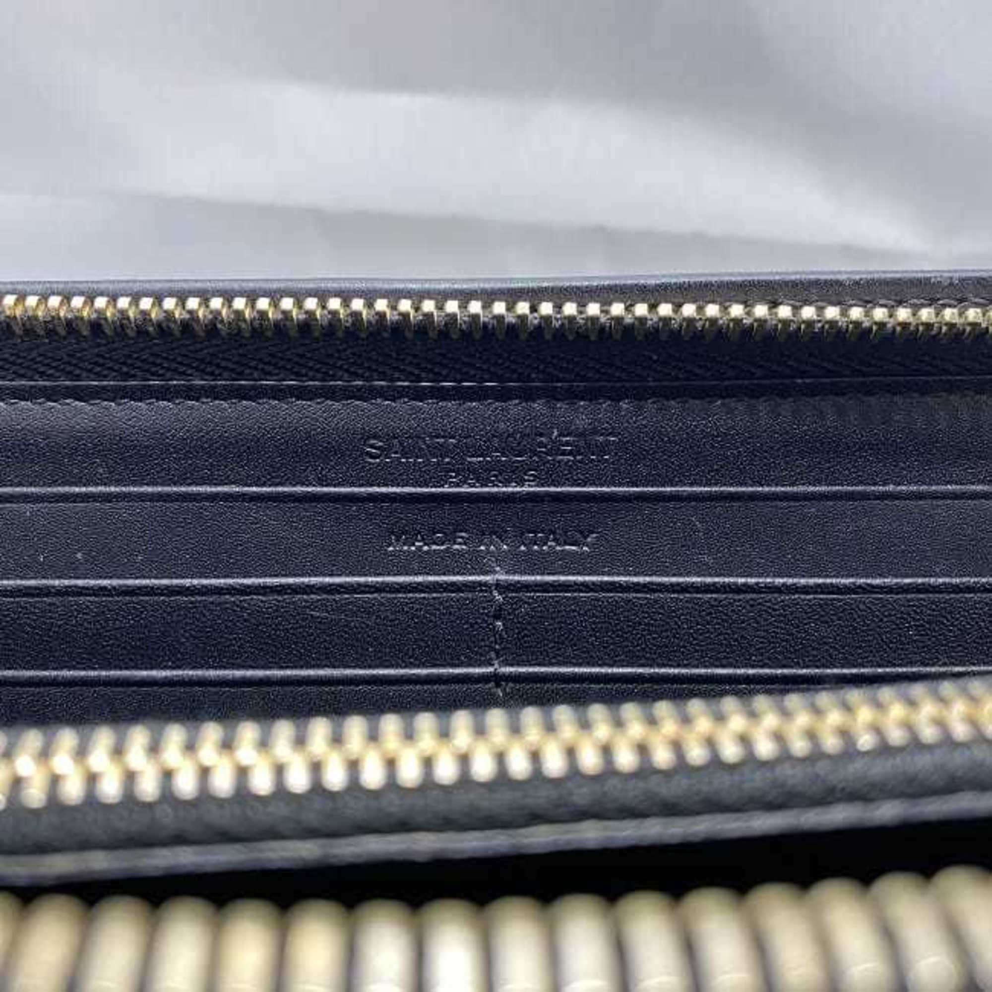 Introducing the Yves Saint Laurent Zip Around long wallet a stylish and functional accessory designed for women. Crafted from luxurious black leather this bi-fold wallet features a zip-around design for secure and organized storage. With the iconic Yves Saint Laurent brand the zip-around long wallet is a chic addition to a woman's accessories offering both style and practicality in a timeless color.