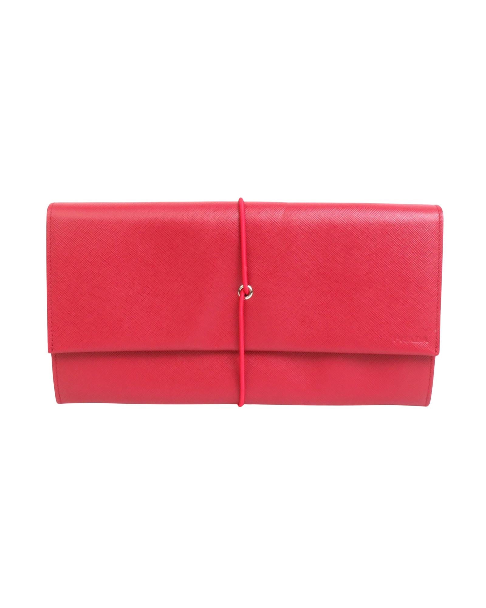 Introducing the Prada Saffiano Long Wallet a luxurious accessory crafted for the modern woman who values both style and functionality. Made from exquisite leather in a vibrant red color this bi-fold wallet exudes sophistication and elegance. Perfect for organizing your essentials with ease its spacious design offers ample room for cards cash and receipts.