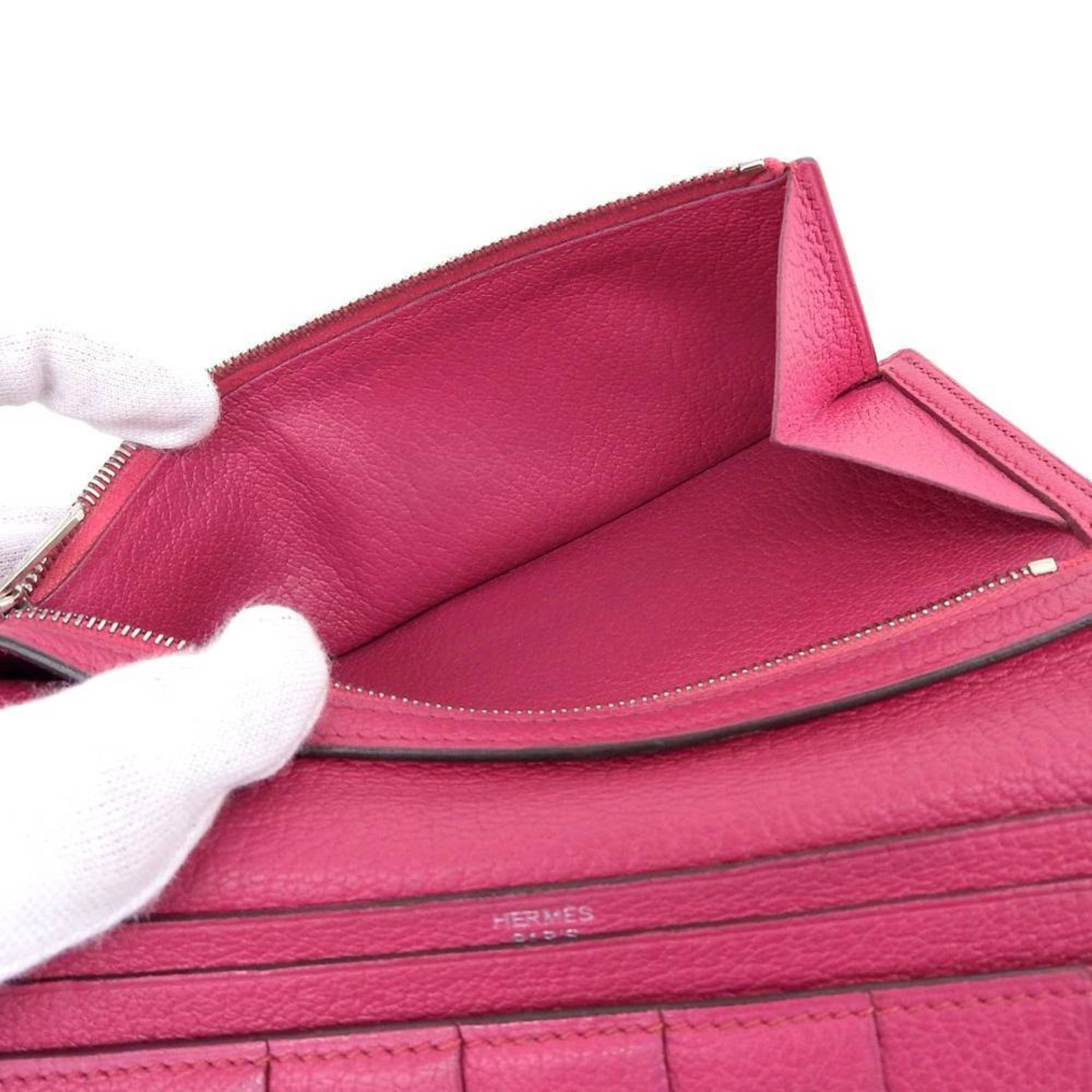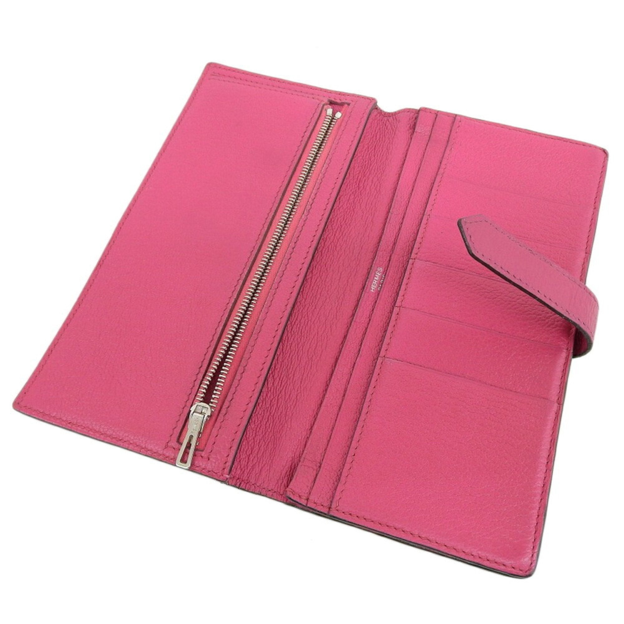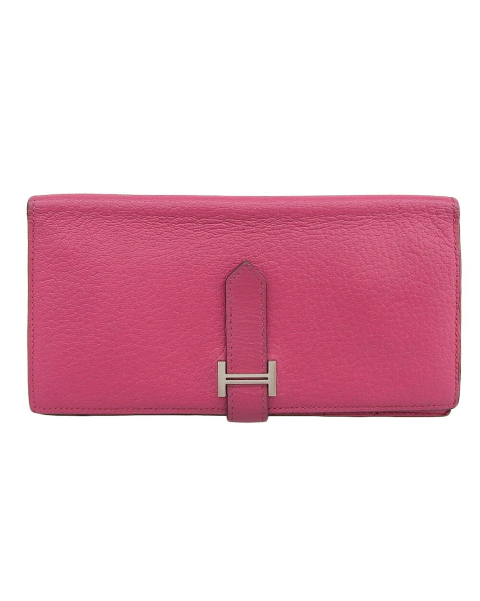 The Hermes Bearn long wallet a symbol of sophistication and practicality is tailored for the modern woman boasting a stunning pink hue in the shade of Rose Shocking and crafted from luxurious Chevre leather.
