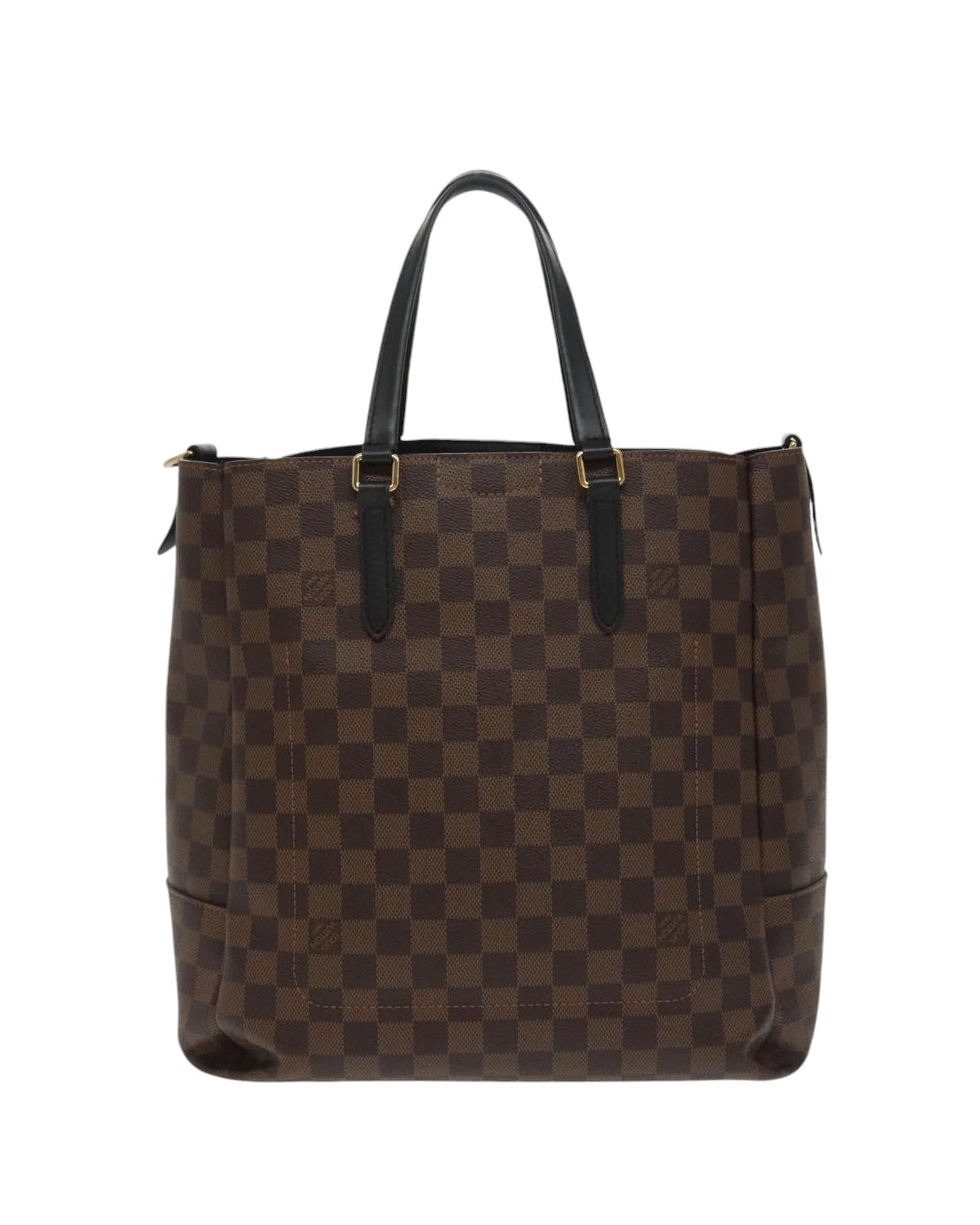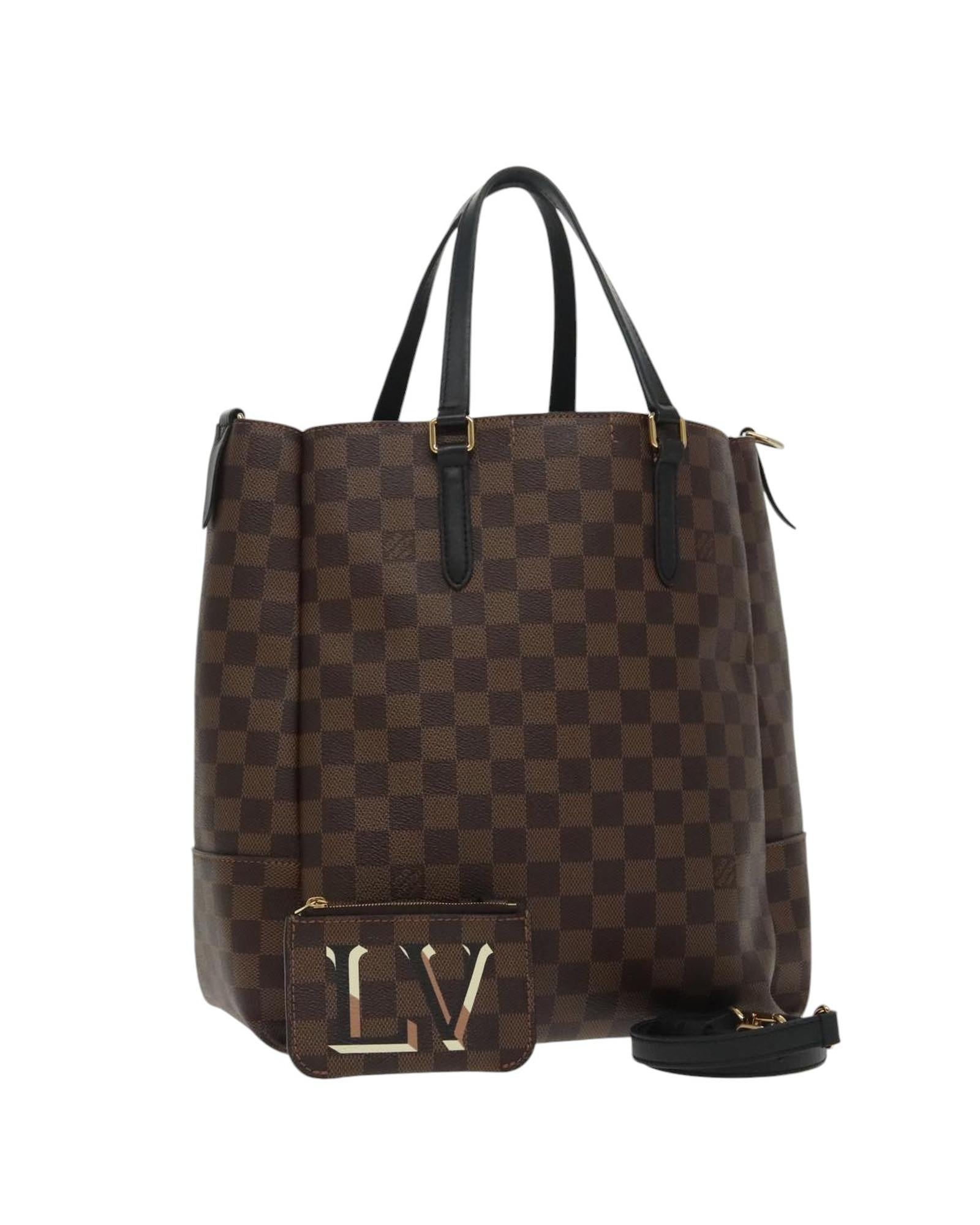 Damier Ebene Canvas Tote Bag with Shoulder Strap and Pouch