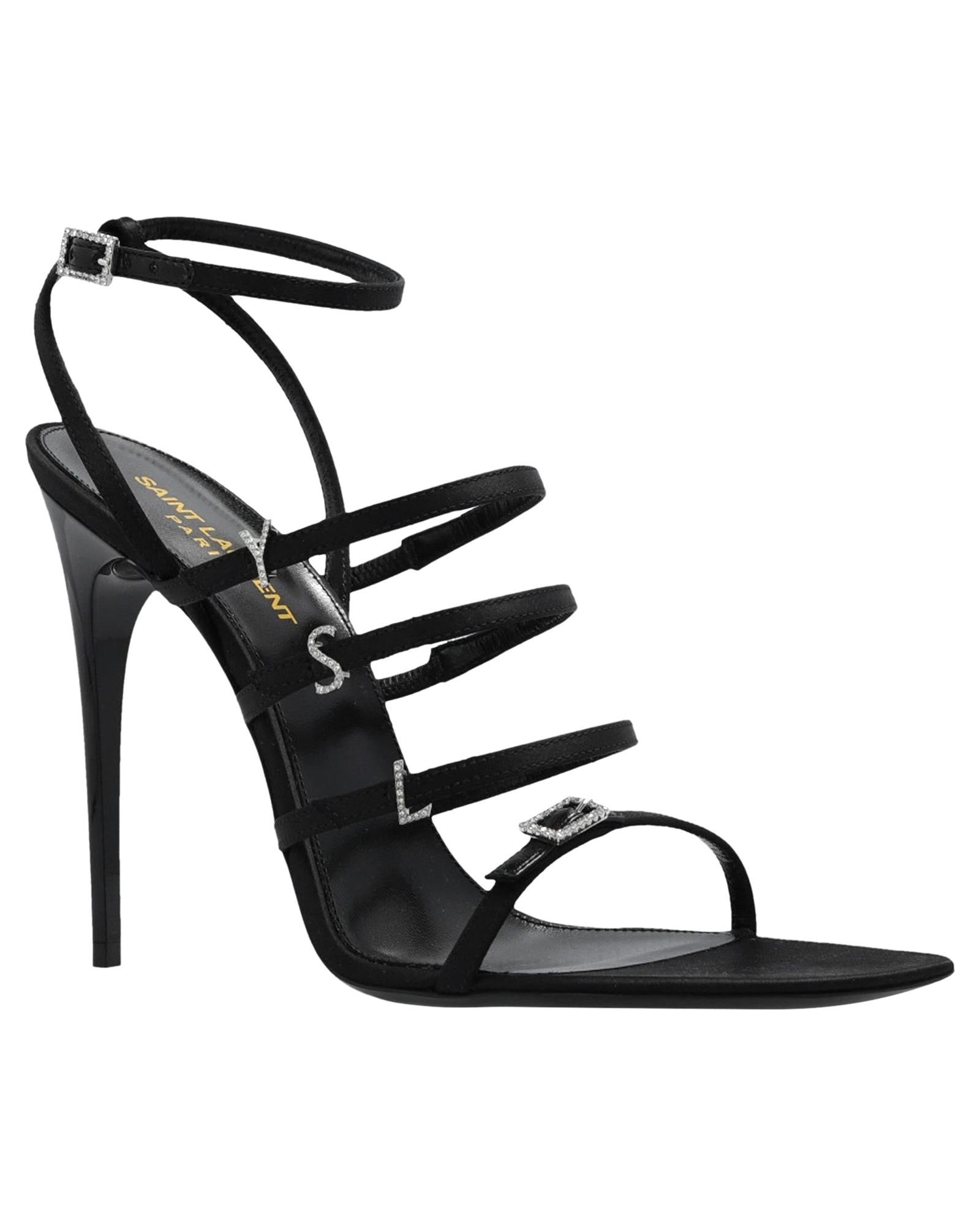 Elegant Heeled Sandals with Ankle Strap and Decorative Accents