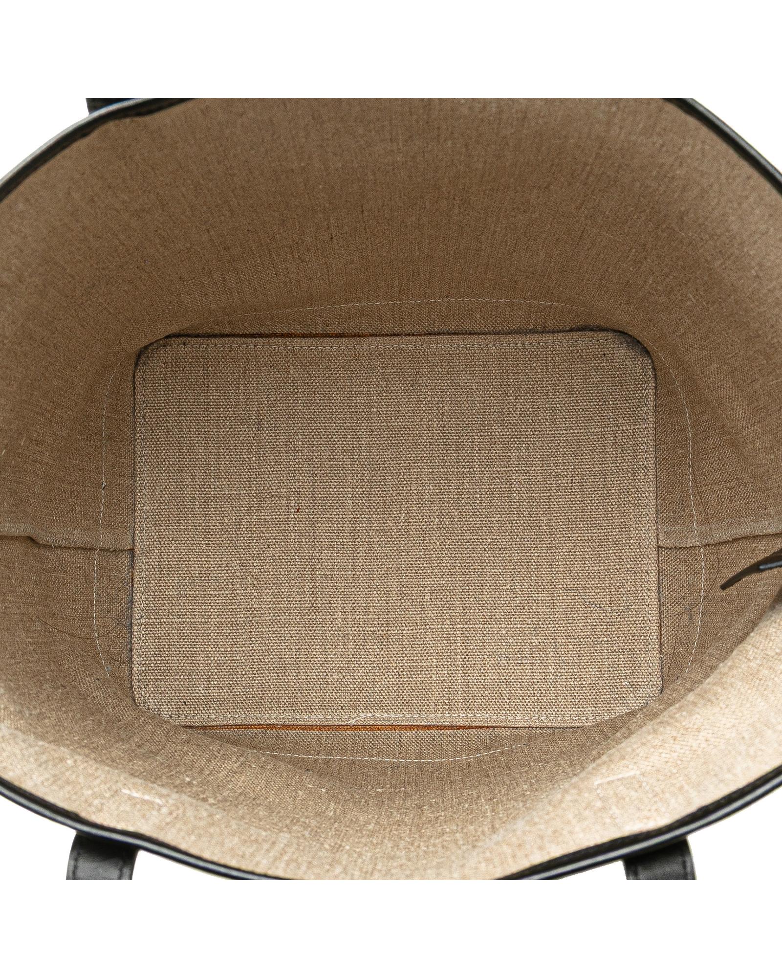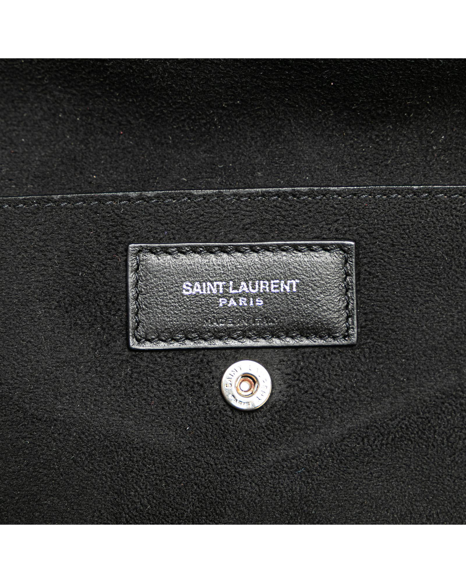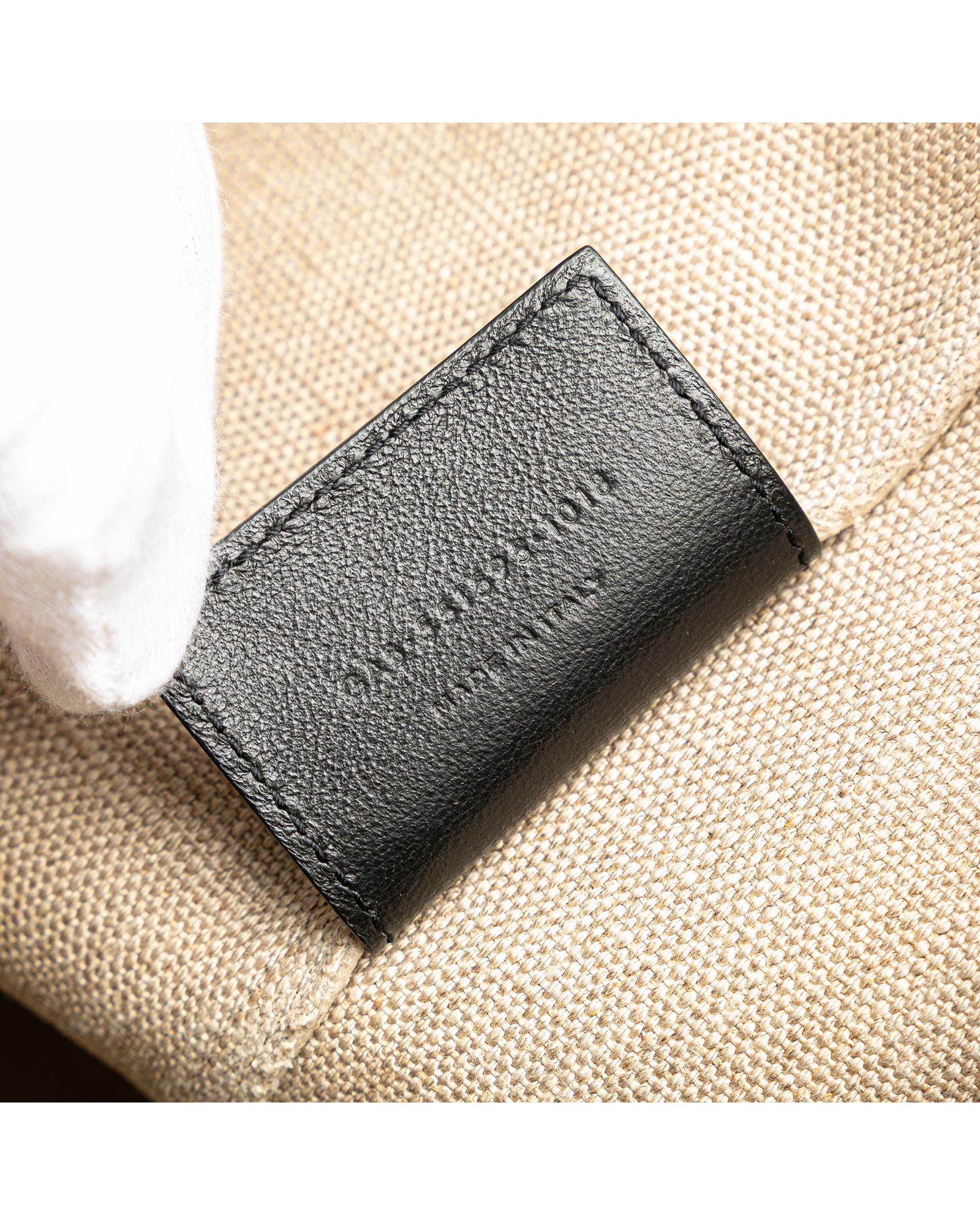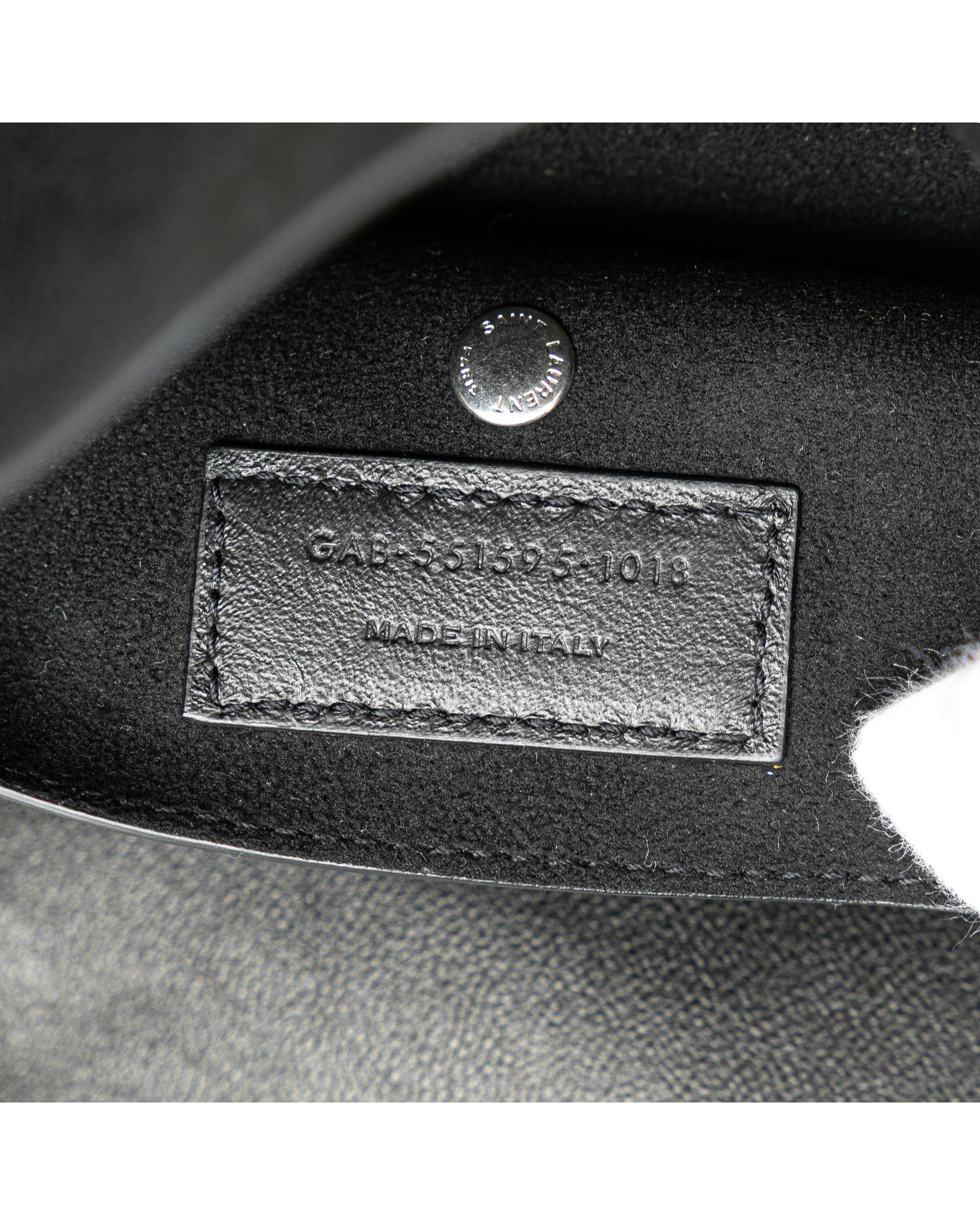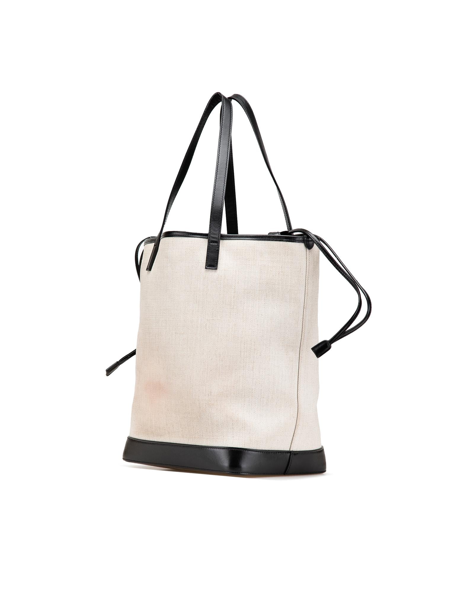 The Teddy Shopping Tote features a canvas body with leather trim flat leather straps a top drawstring closure and a detachable interior flap pouch.Brand: Saint Laurent