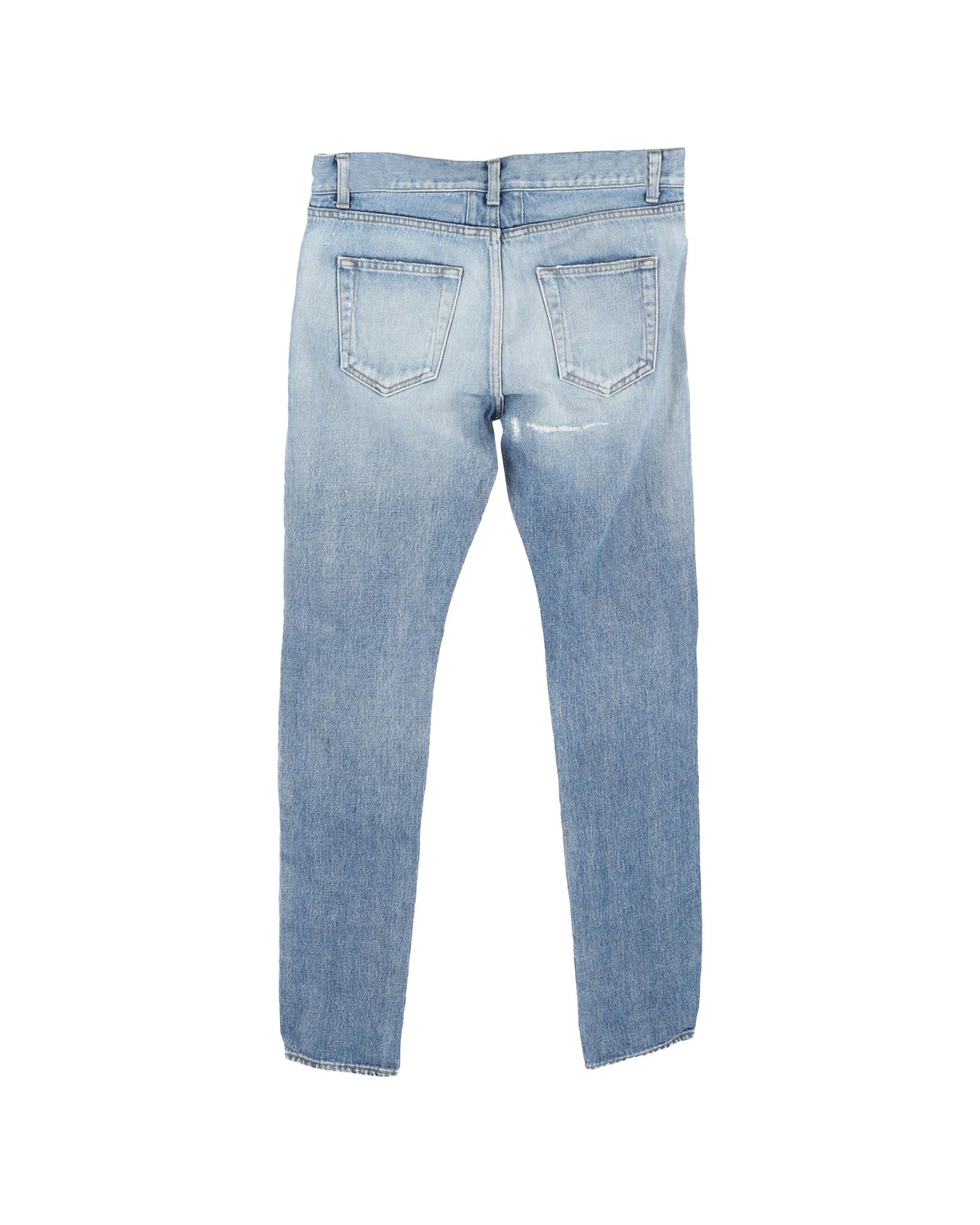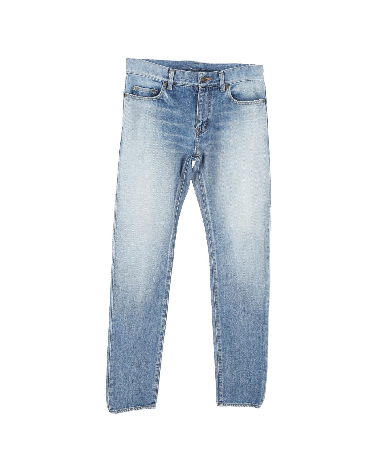 - Saint Laurent Faded Jeans in Light Blue Cotton Denim