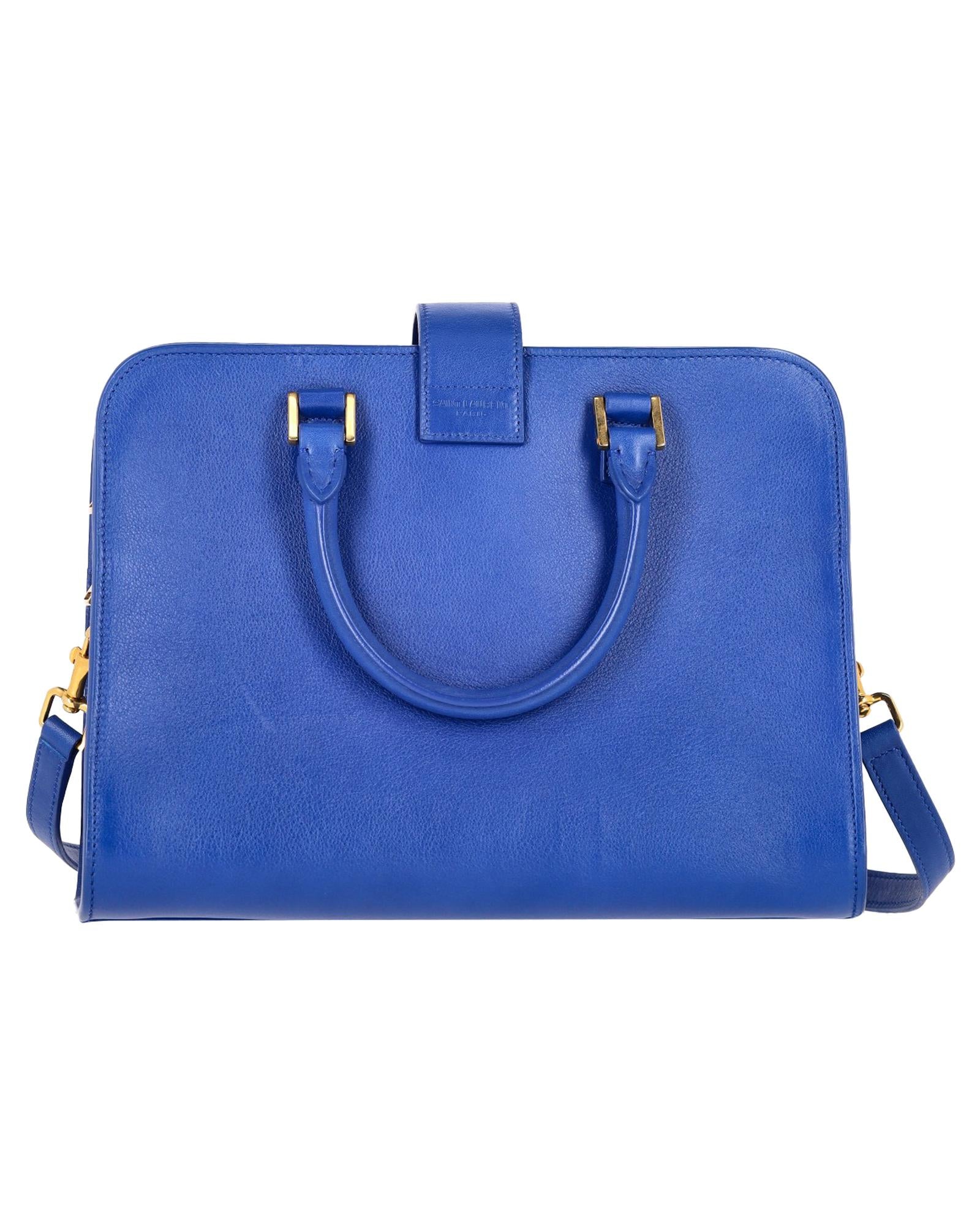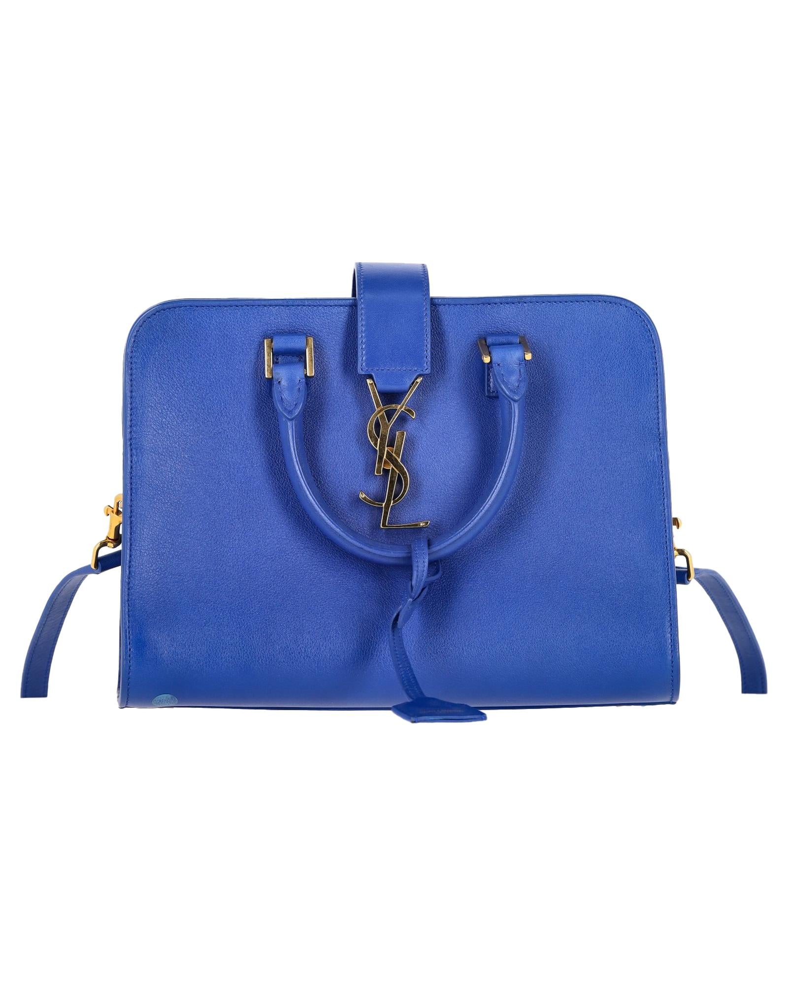 - Saint Laurent Baby Monogram Cabas Tote in Blue Leather