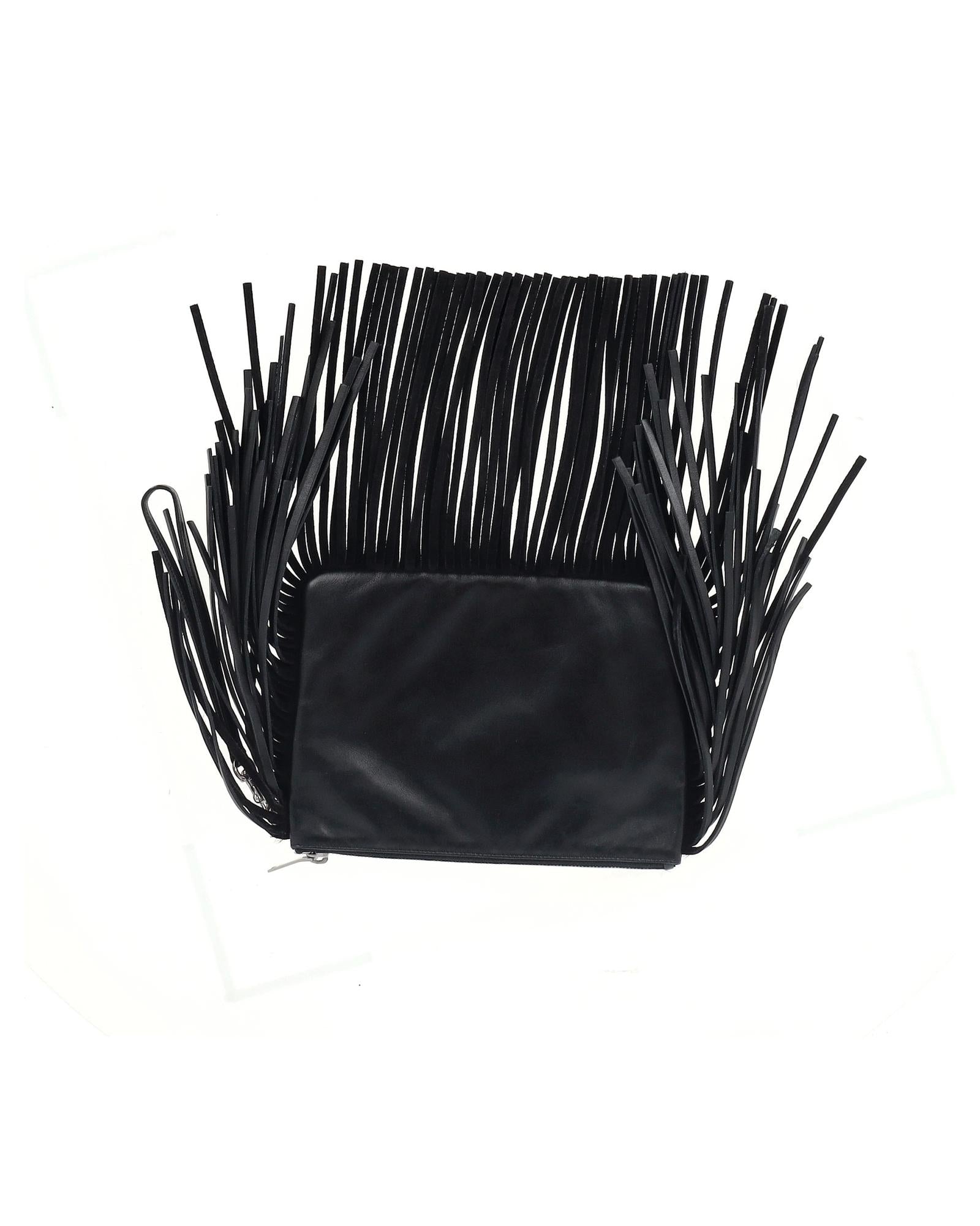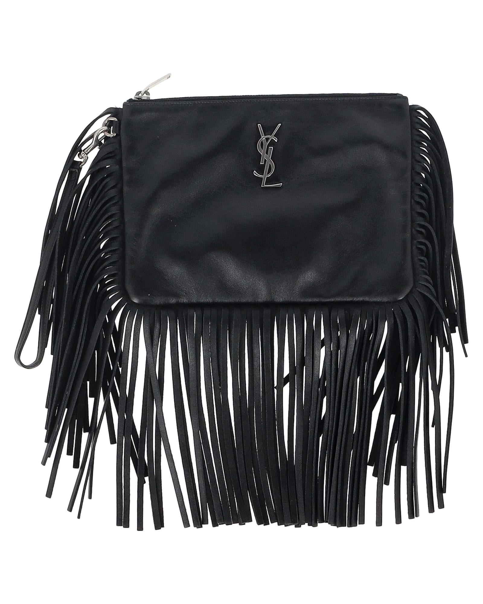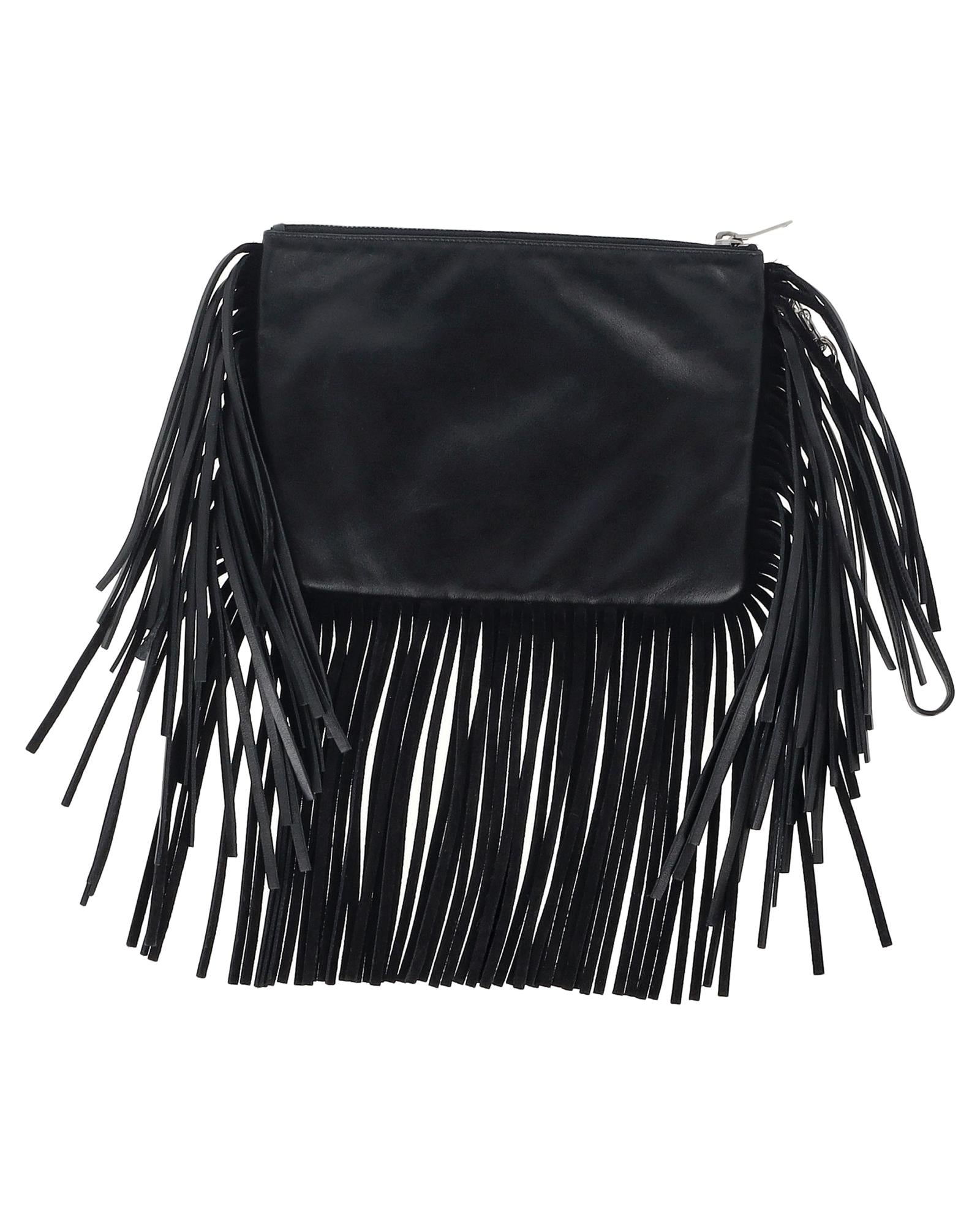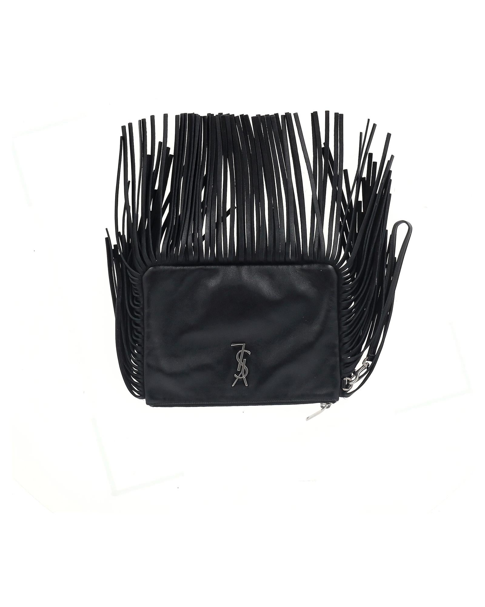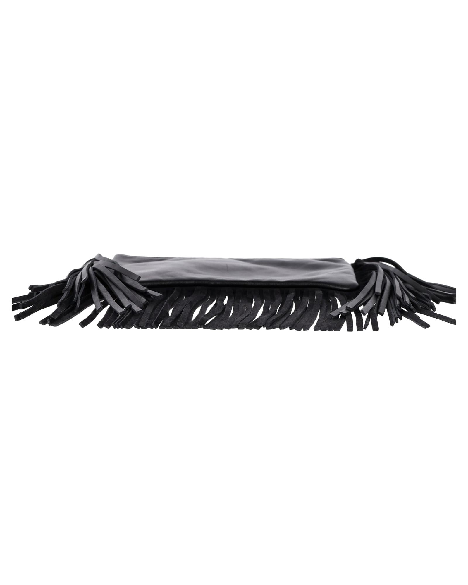 • Saint Laurent Fringe Shoulder Bag in Black Leather