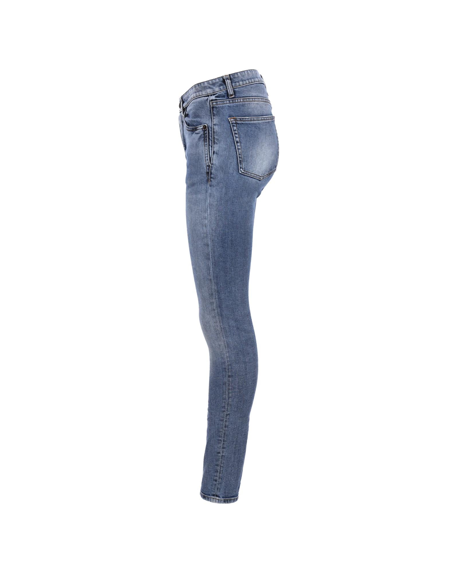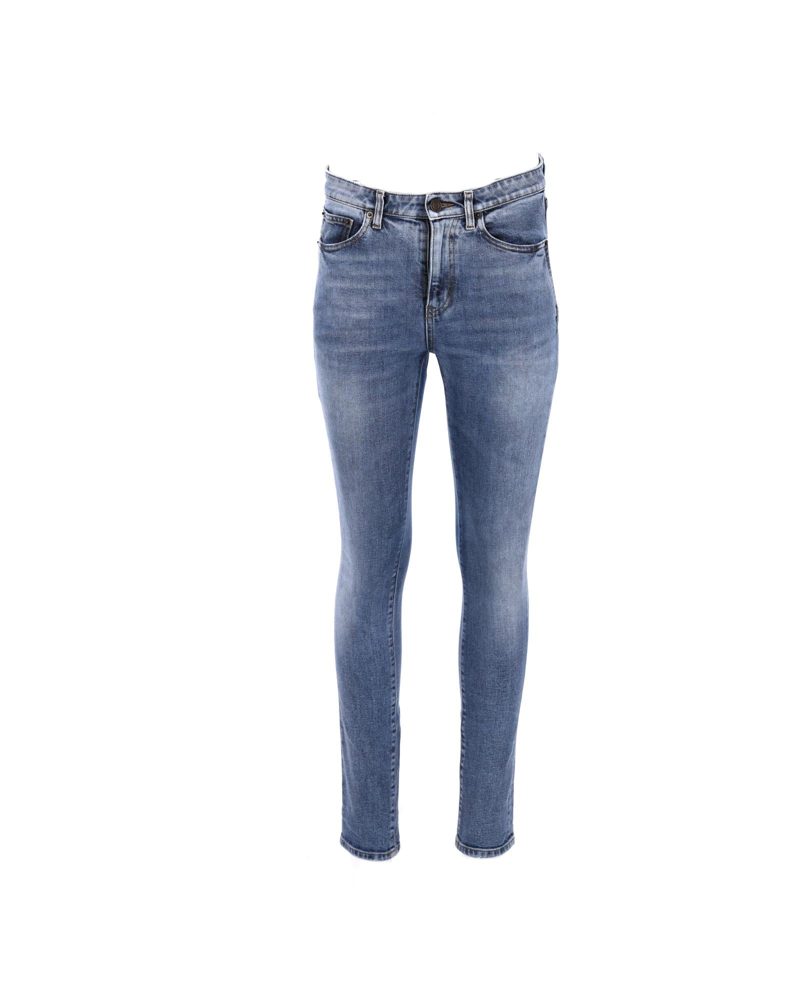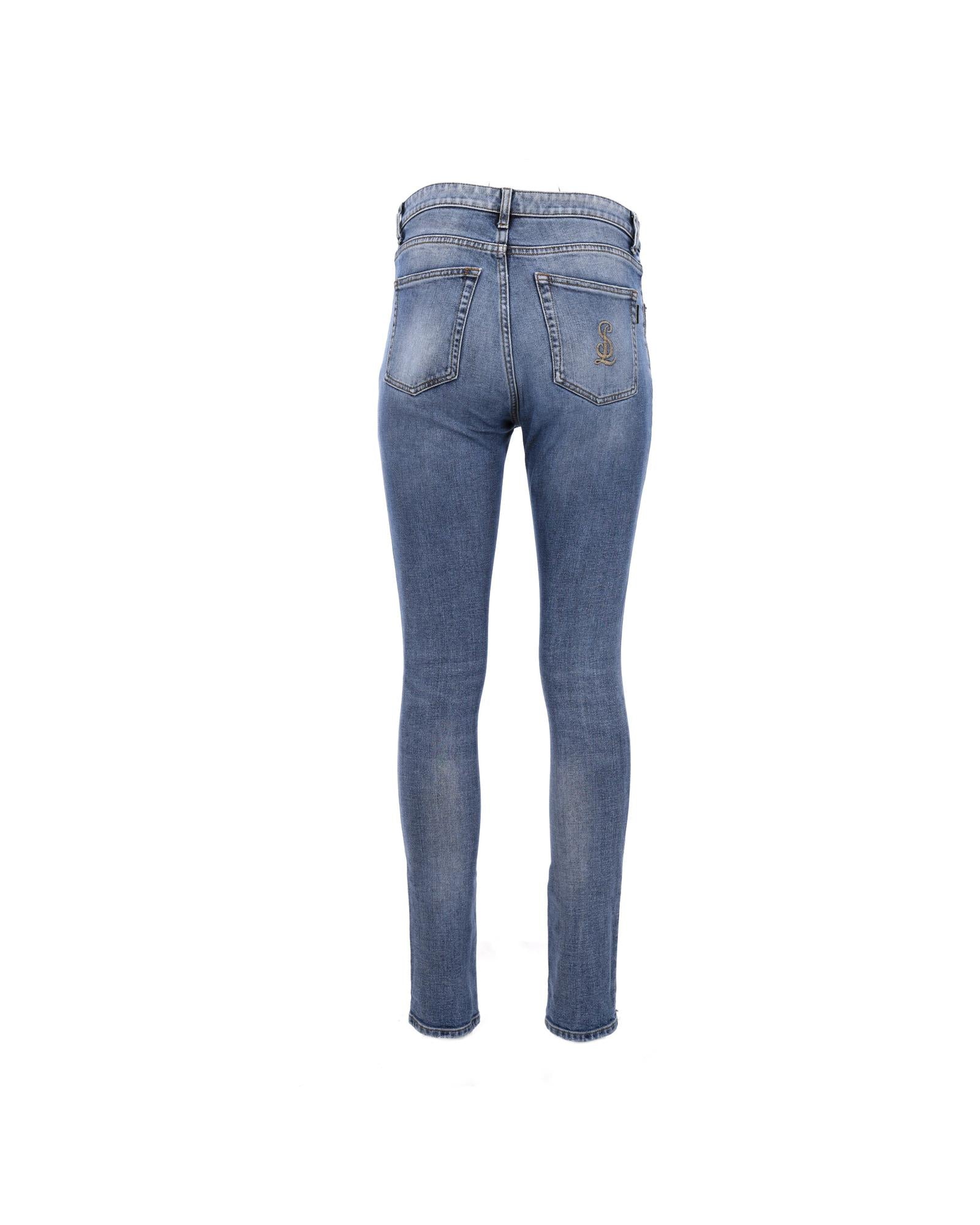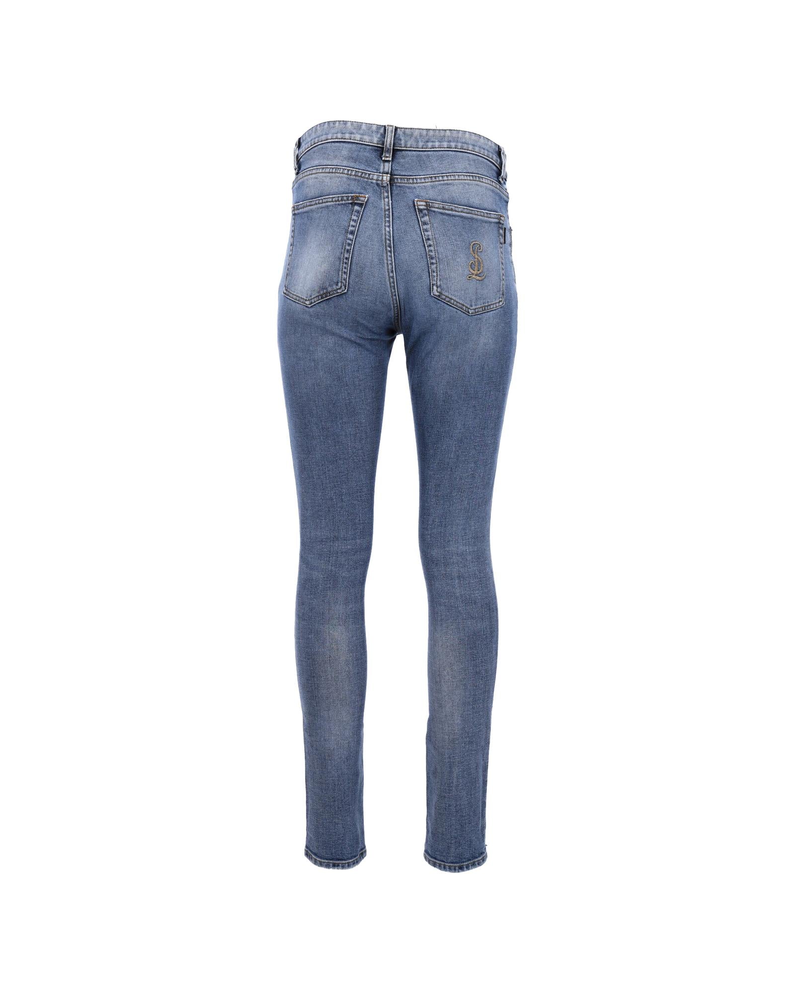 - Embroidered Slim Fit Jeans in Blue Cotton Denim