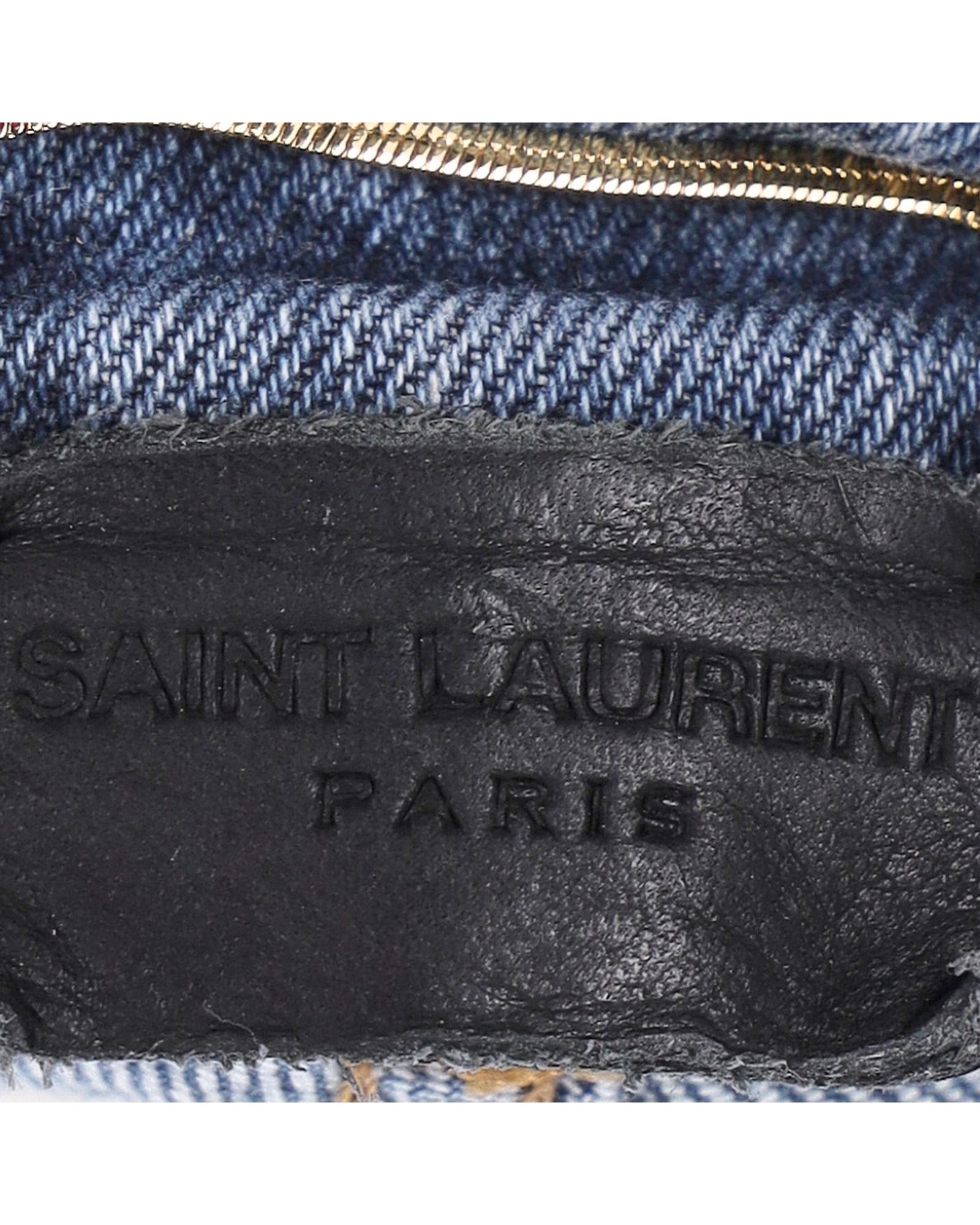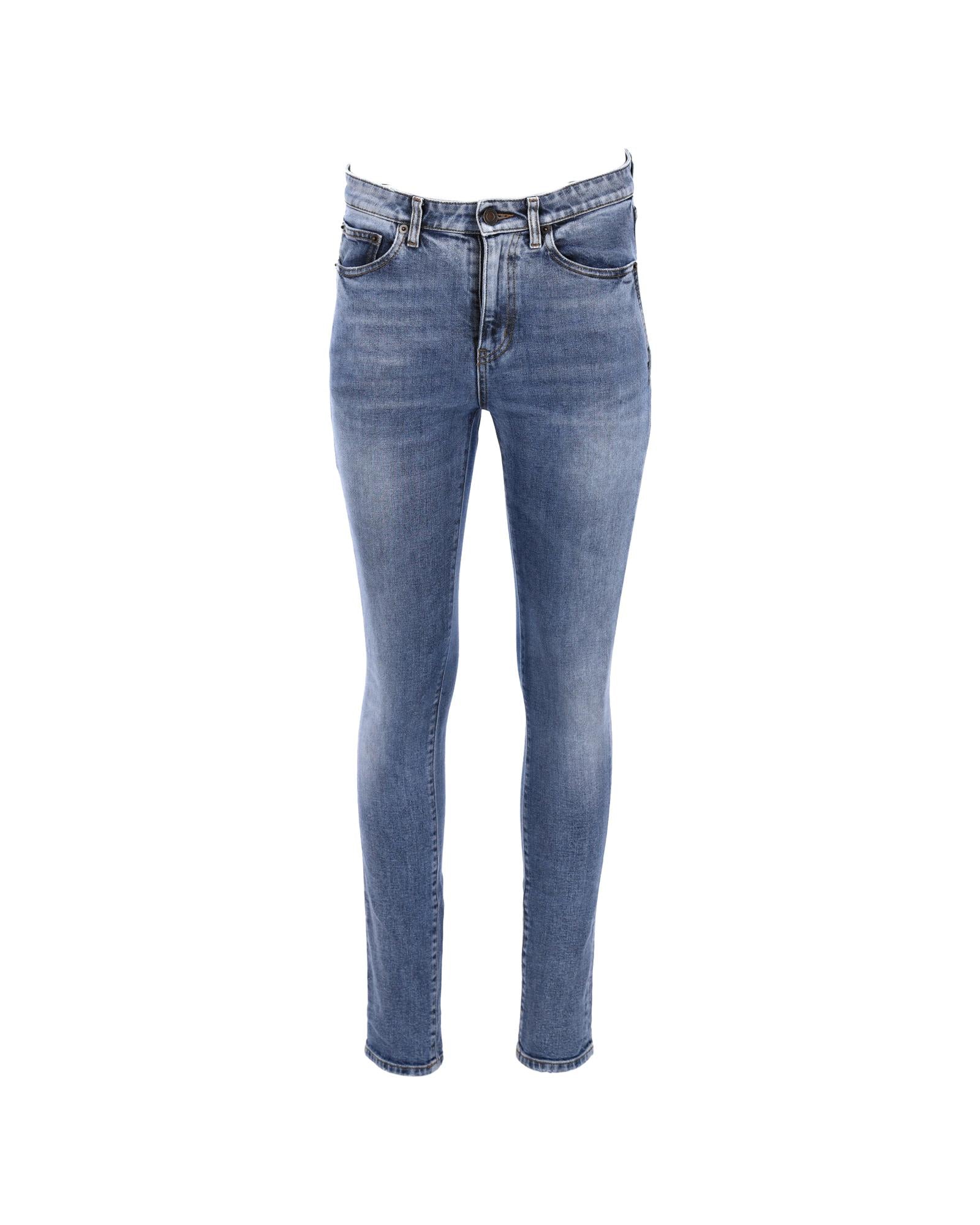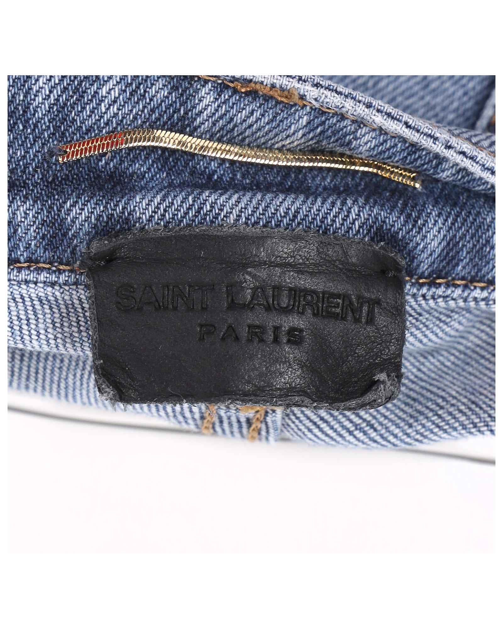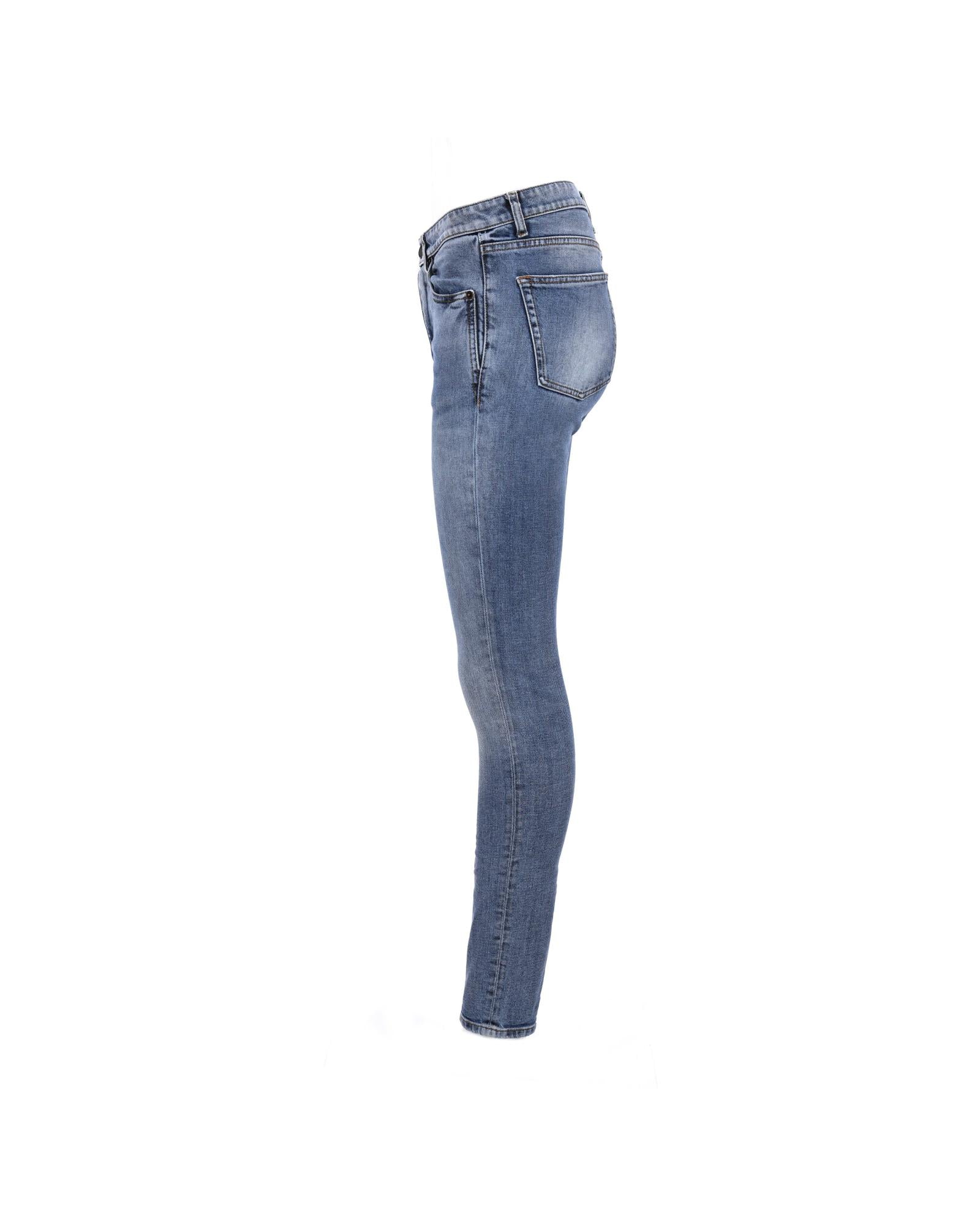 - Embroidered Slim Fit Jeans in Blue Cotton Denim