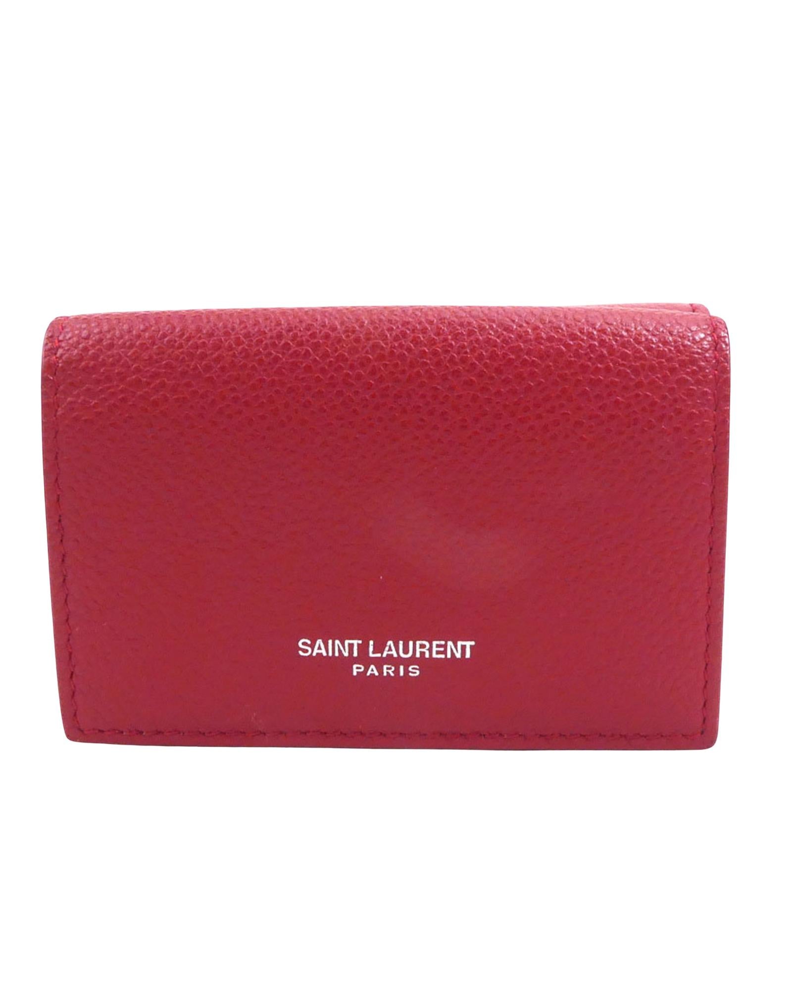 Introducing the Saint Laurent Tri-Fold Wallet a sophisticated accessory designed for both men and women who appreciate the perfect blend of style and practicality. Crafted from luxurious red leather this wallet exudes timeless elegance. The tri-fold design provides ample space for your essentials making it a versatile and functional addition to your daily repertoire. The overall condition is impeccable with only insignificant scratches and dirt as well as minimal traces of use that do not compromise the wallets refined appearance. Elevate your everyday essentials with the Saint Laurent Tri-Fold Wallet a symbol of enduring craftsmanship and understated luxury. Embrace the seamless integration of fashion and functionality with this exquisite accessory. We recommend that you look at all the pictures before making your purchase to ensure that you are satisfied with the condition of the item.
