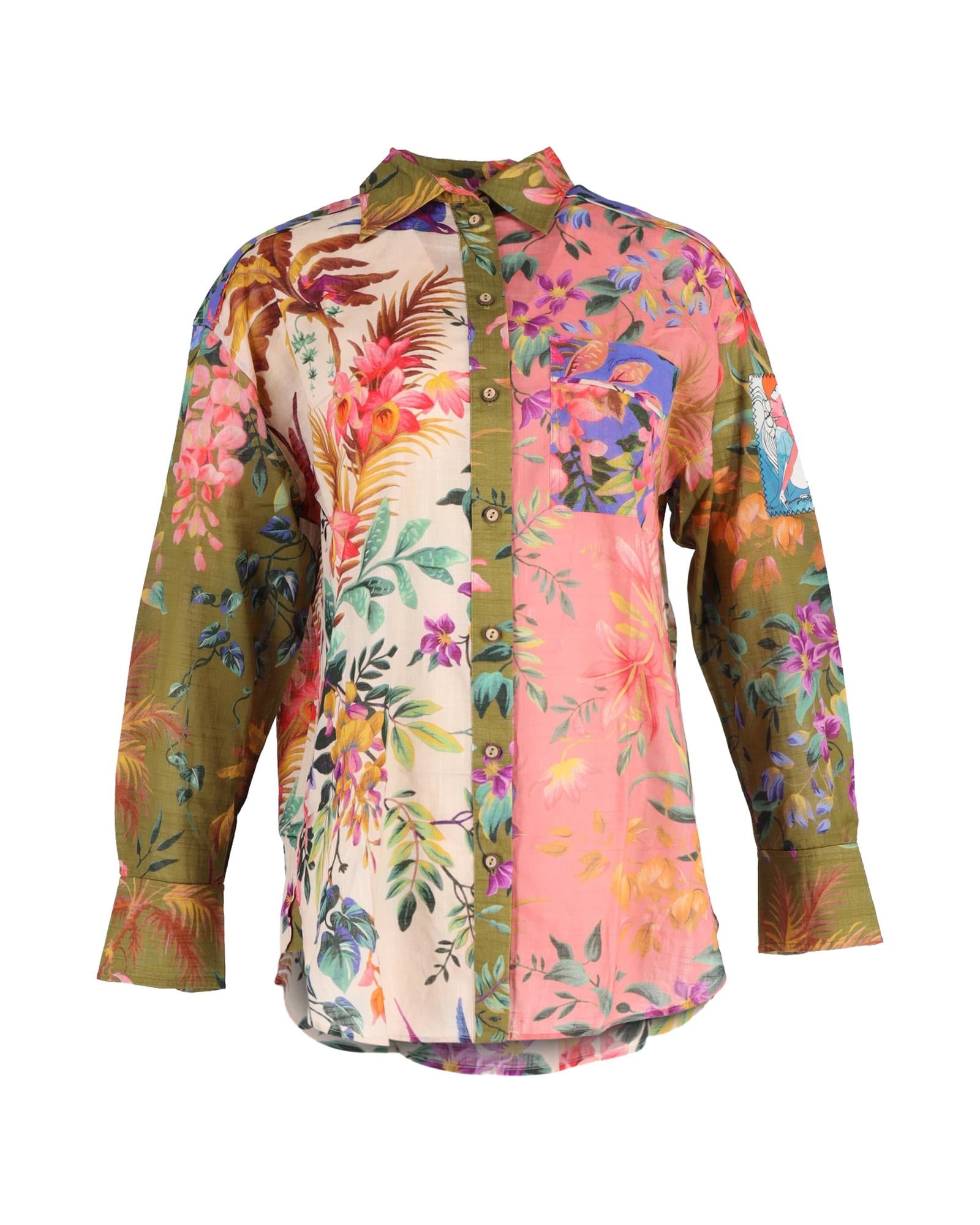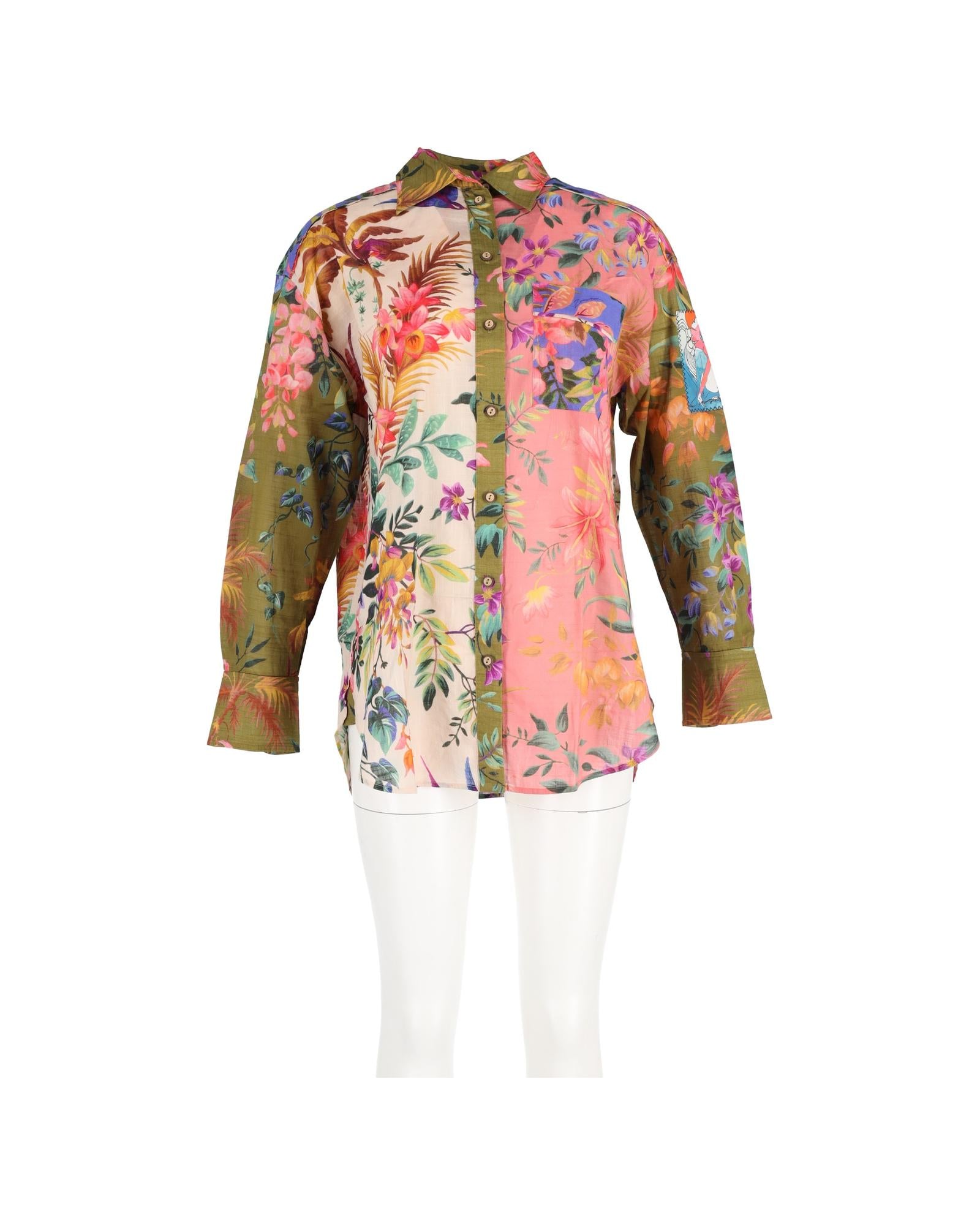 - Zimmermann Tropicana Printed Panelled Shirt in Multicolor Cotton