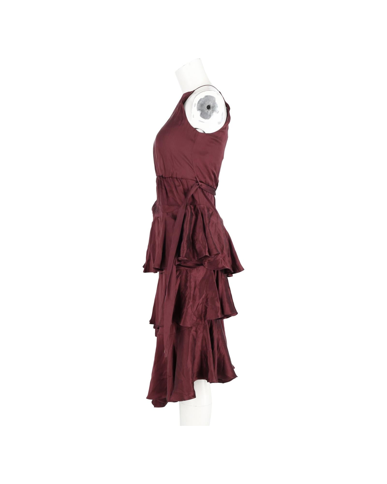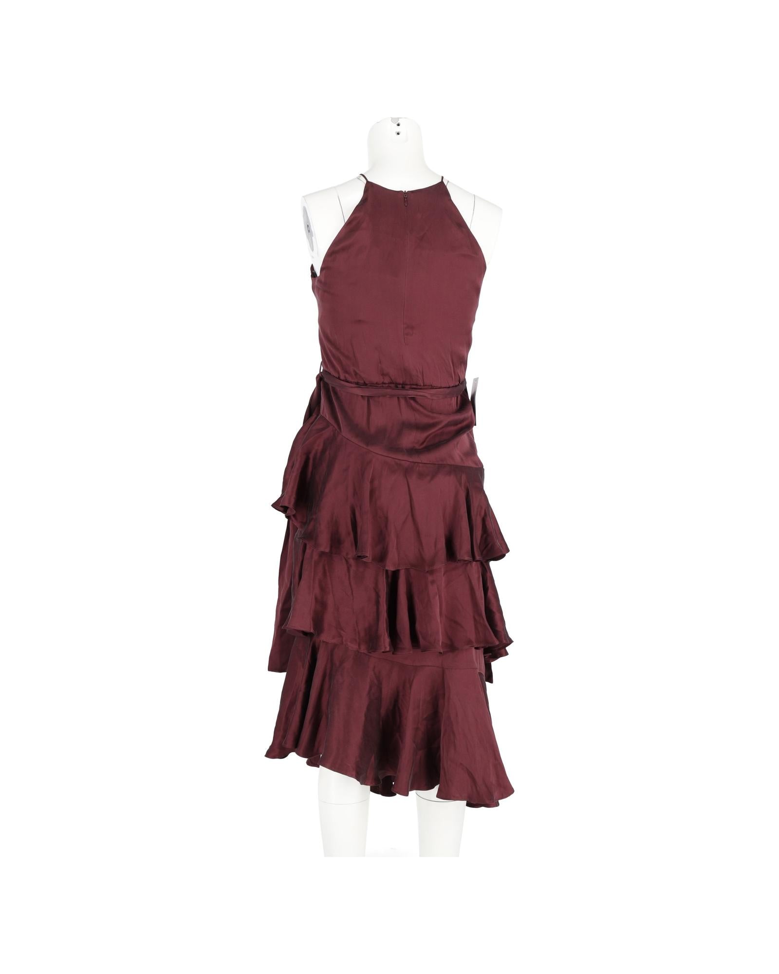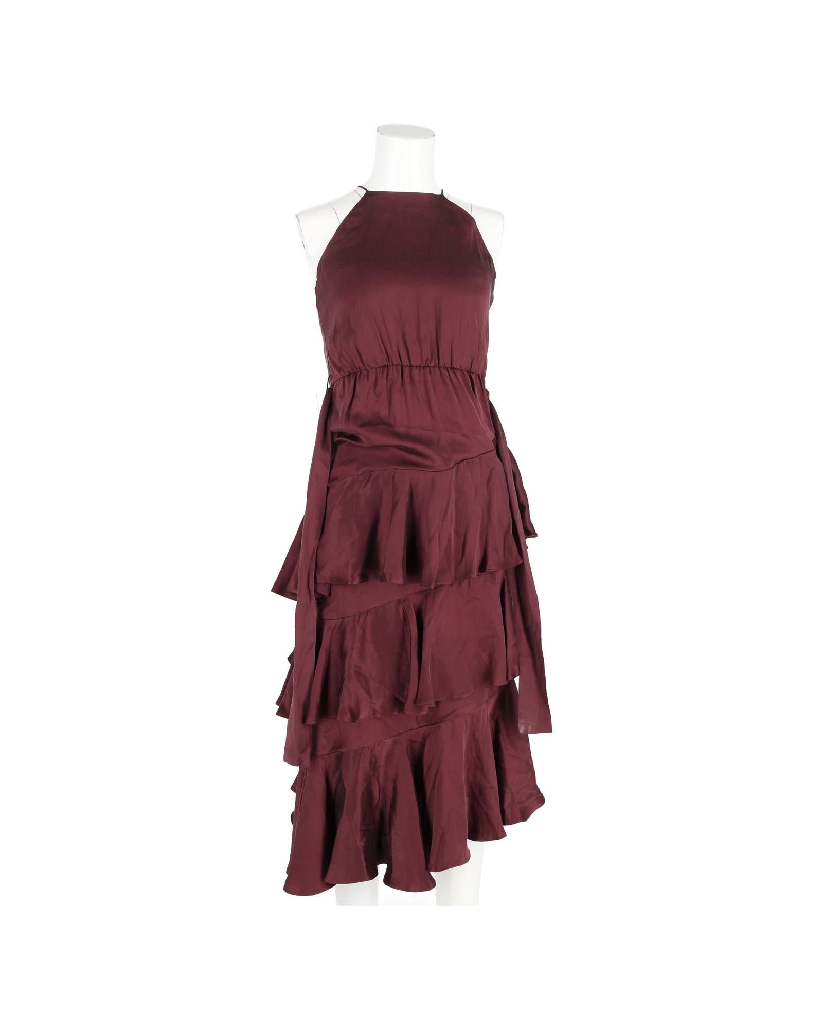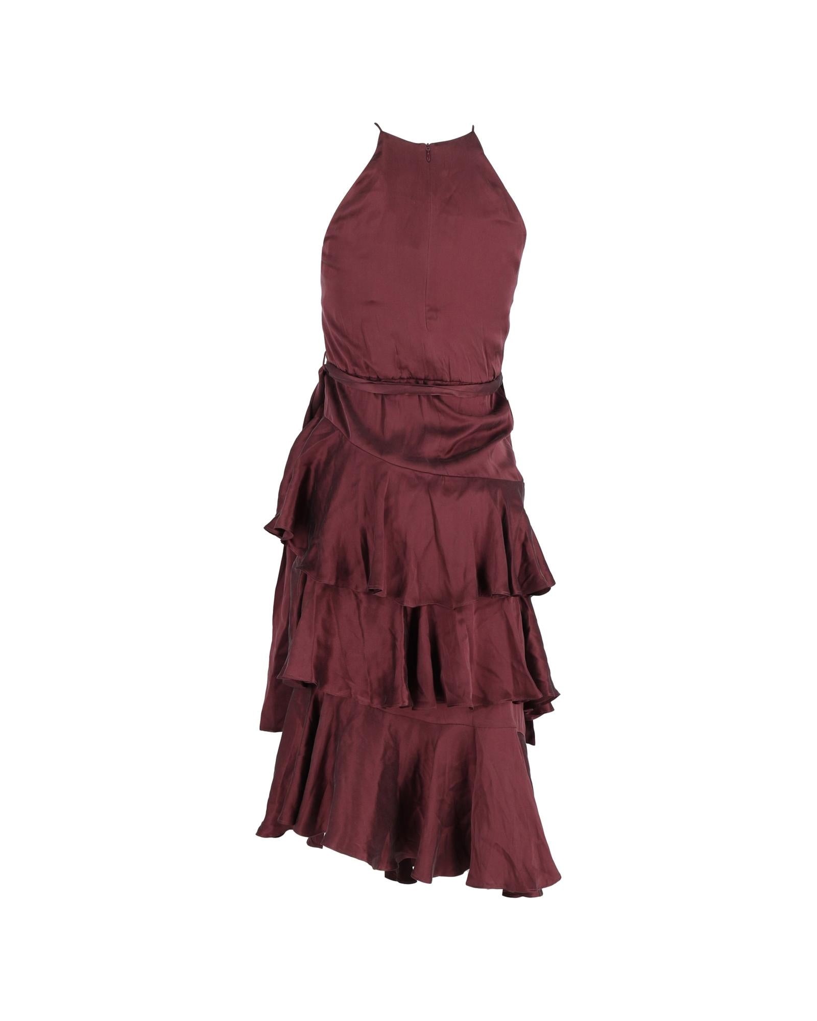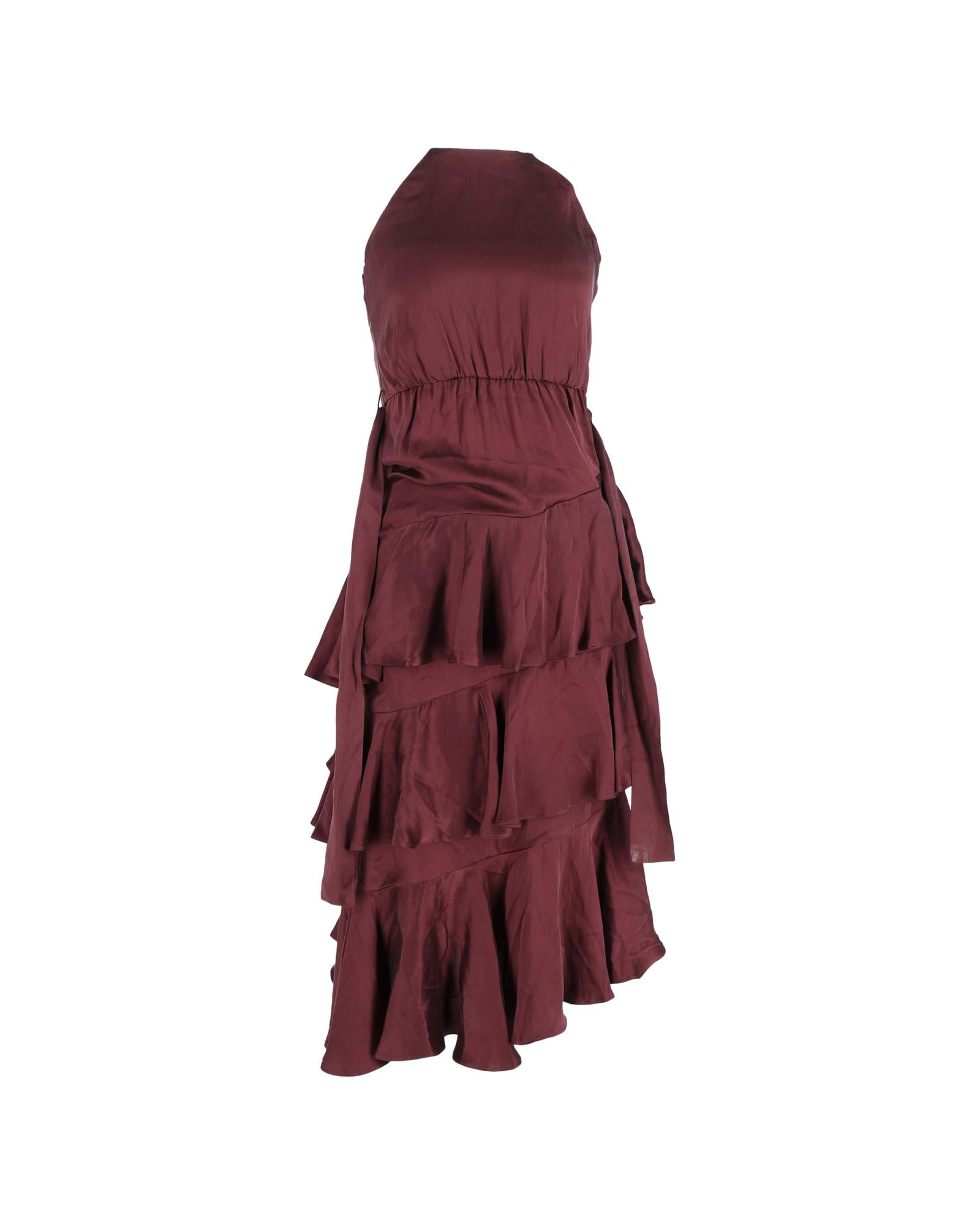 • Zimmermann Ruffled Midi Halter Neck Dress in Burgundy Silk