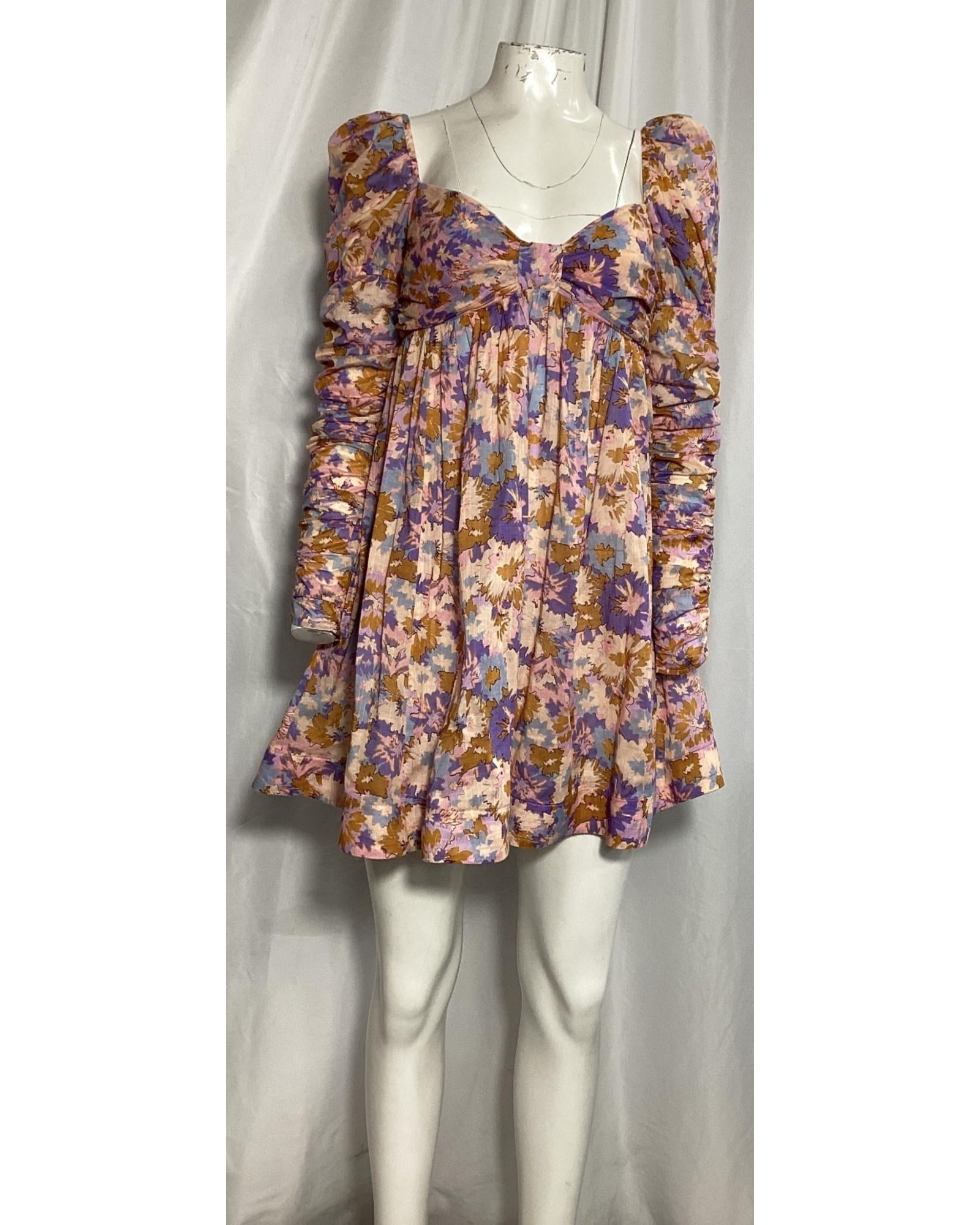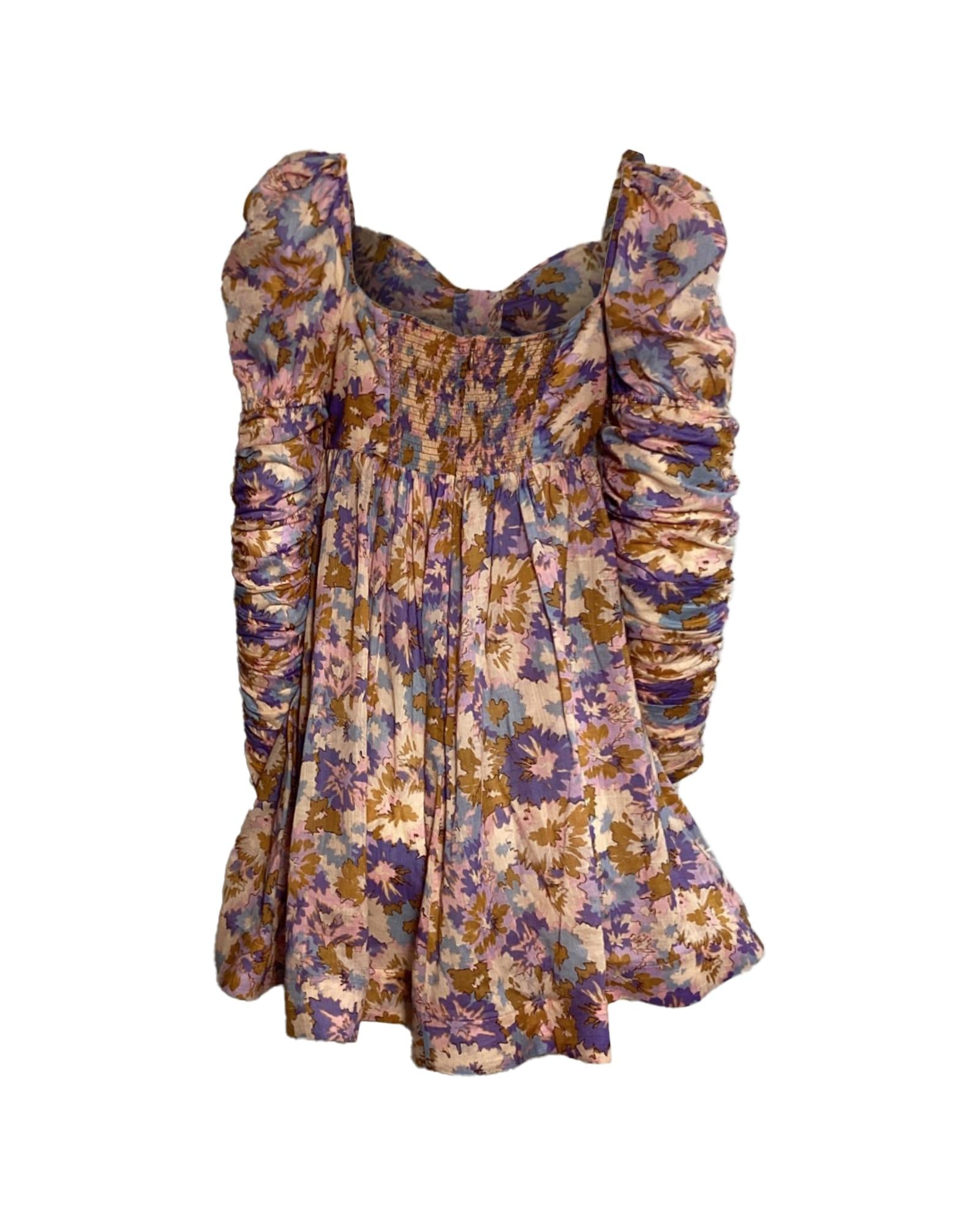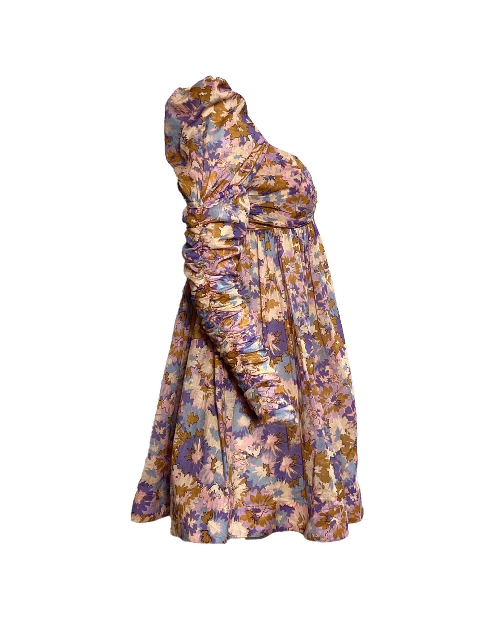 • Zimmermann Floral Print Ruched Mini Dress in Multicolor Cotton