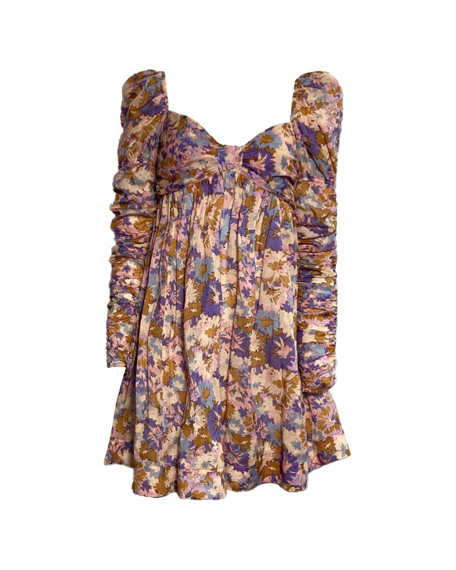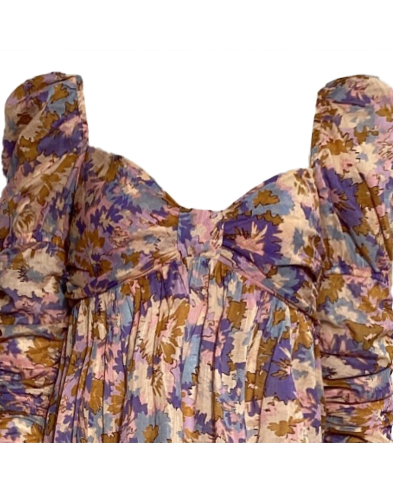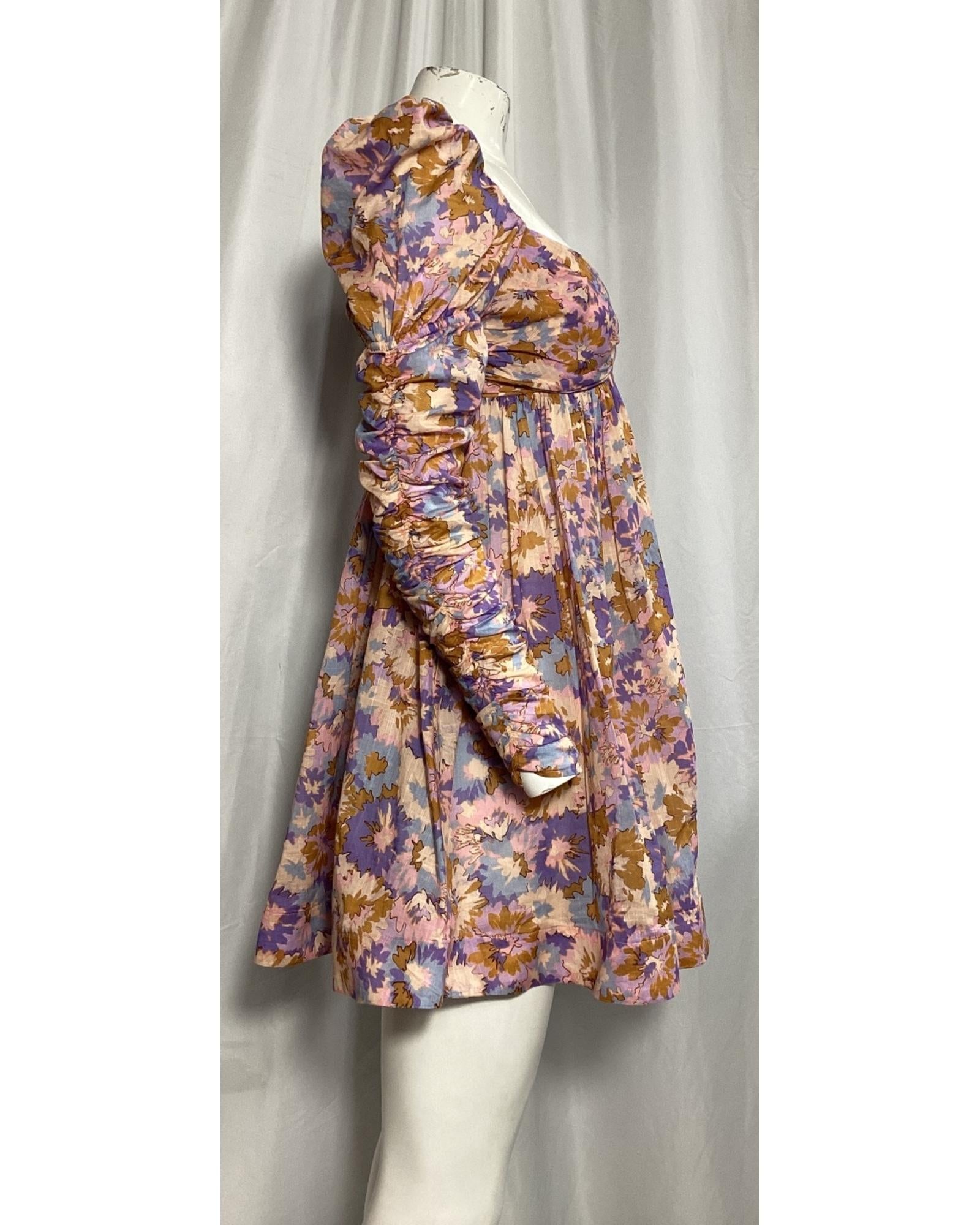 • Zimmermann Floral Print Ruched Mini Dress in Multicolor Cotton