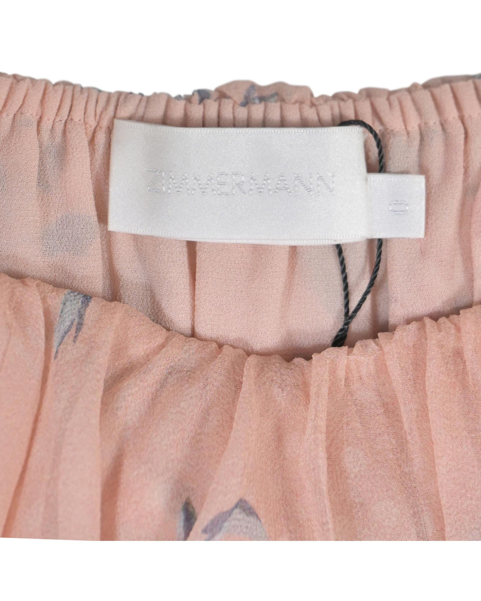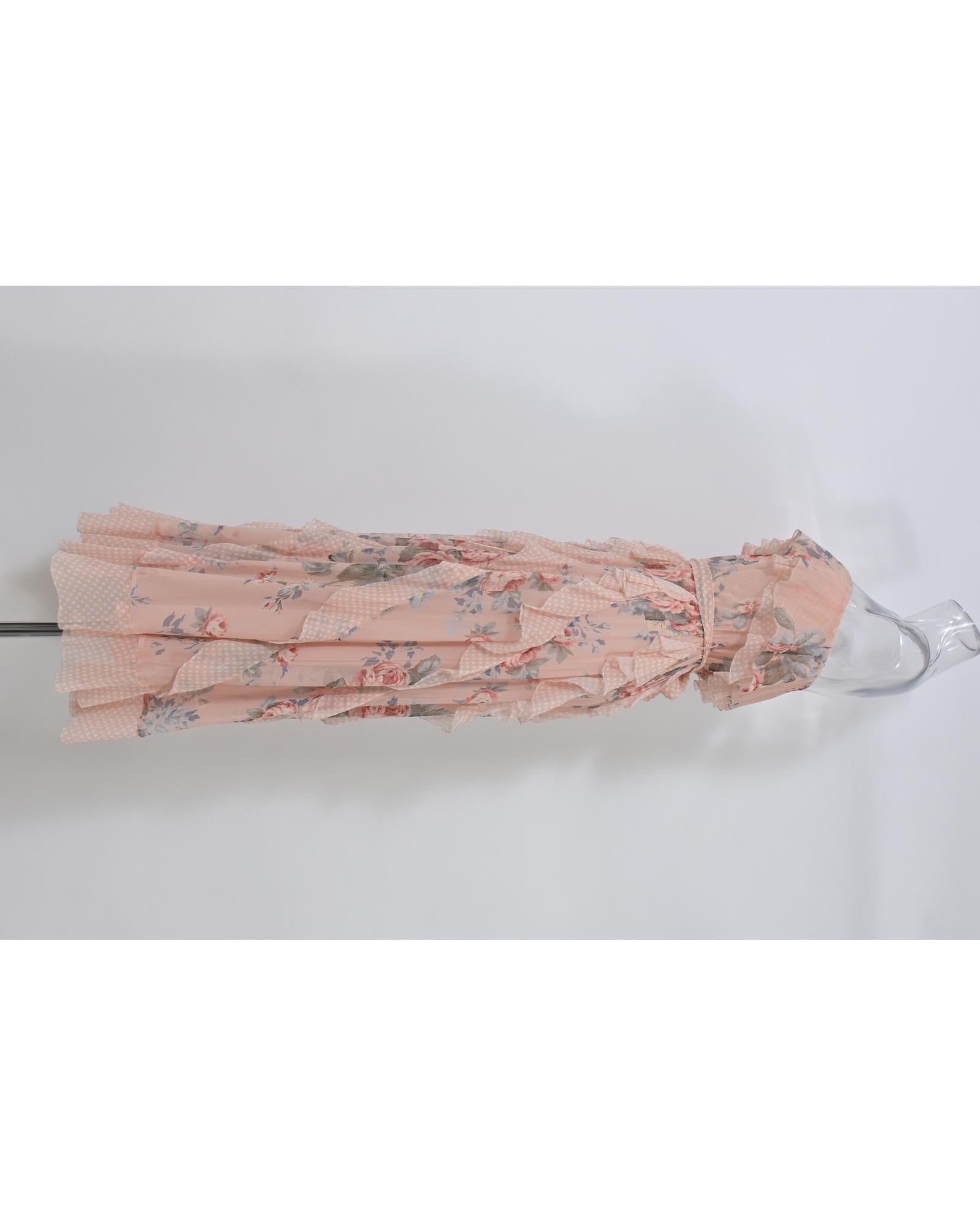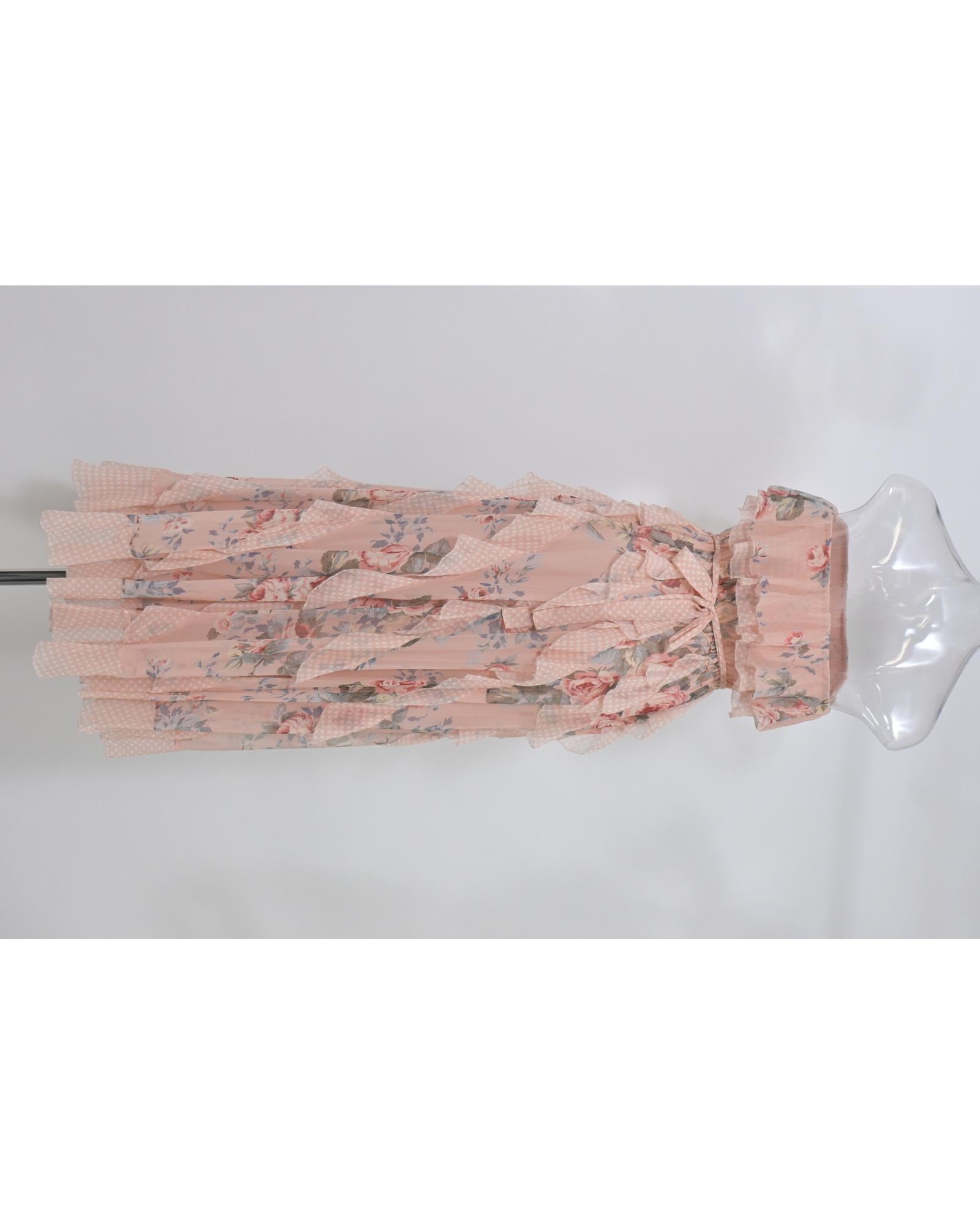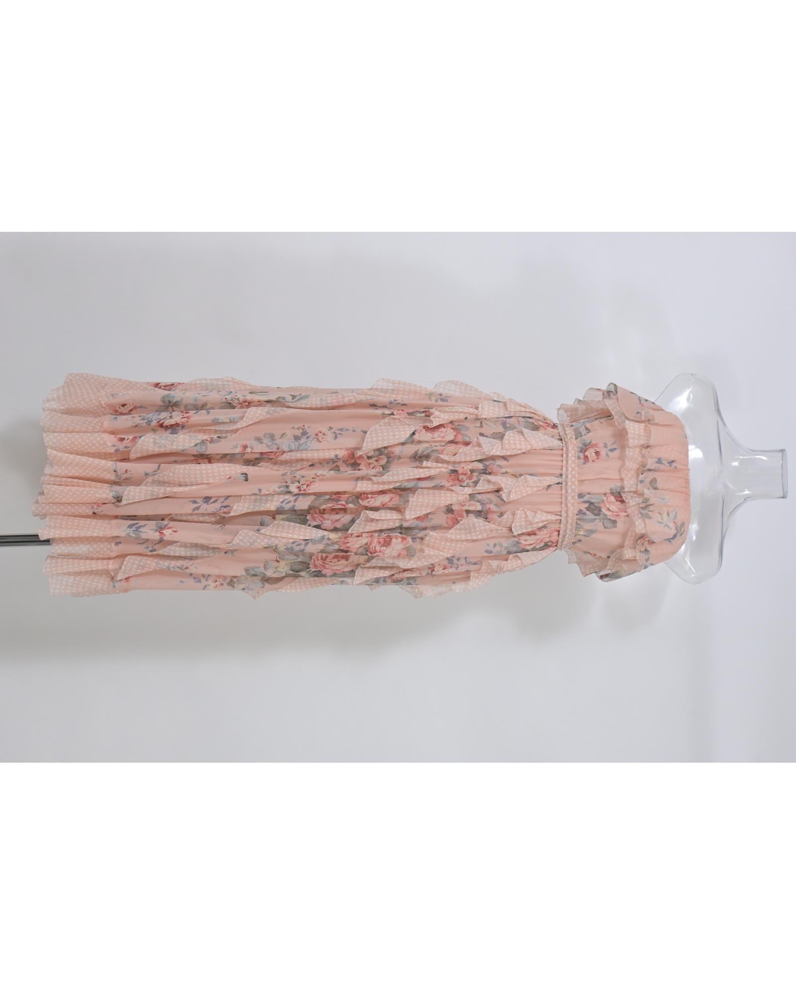 Floral Print Silk Strapless Ruffle Midi Dress with Cinched Waist