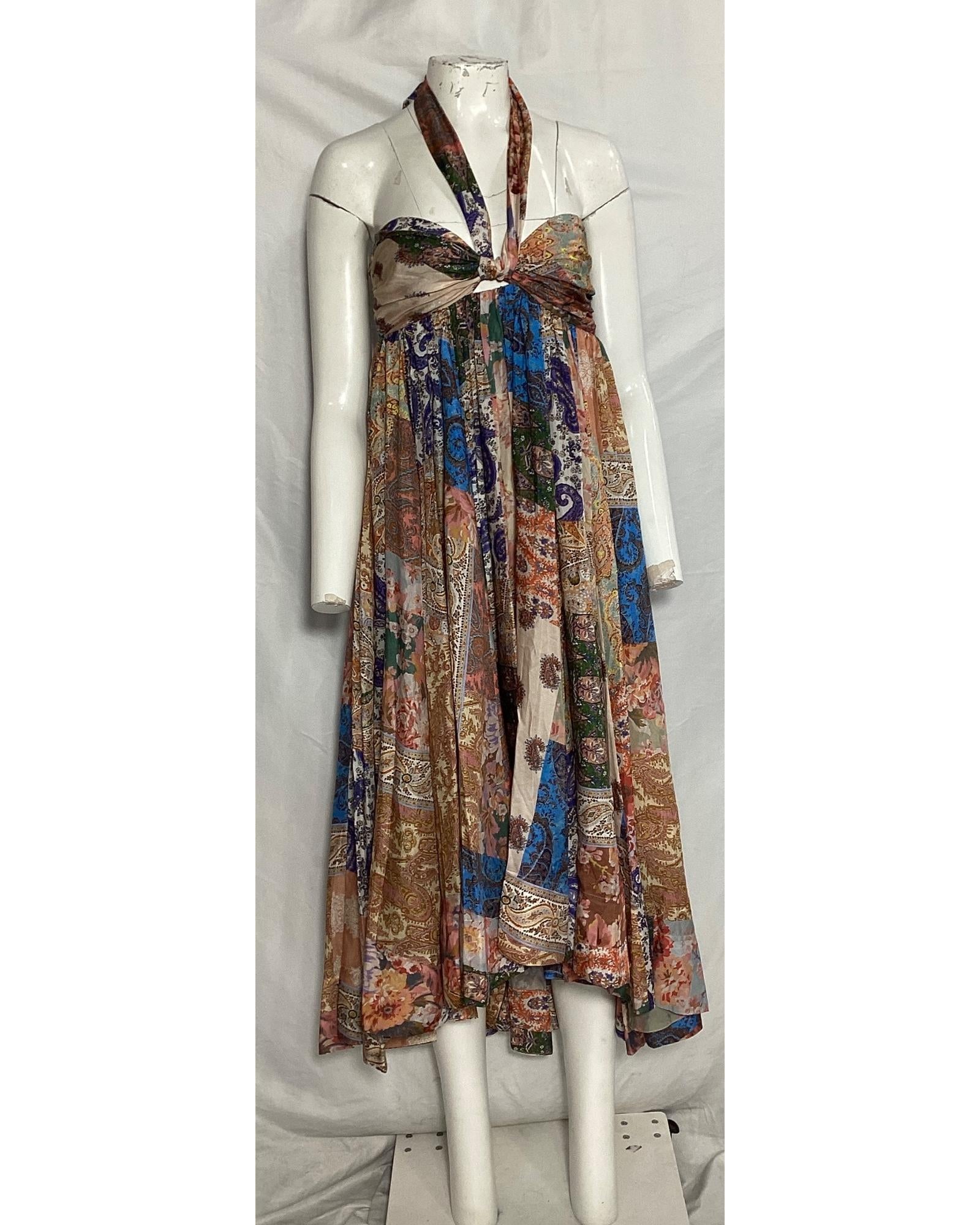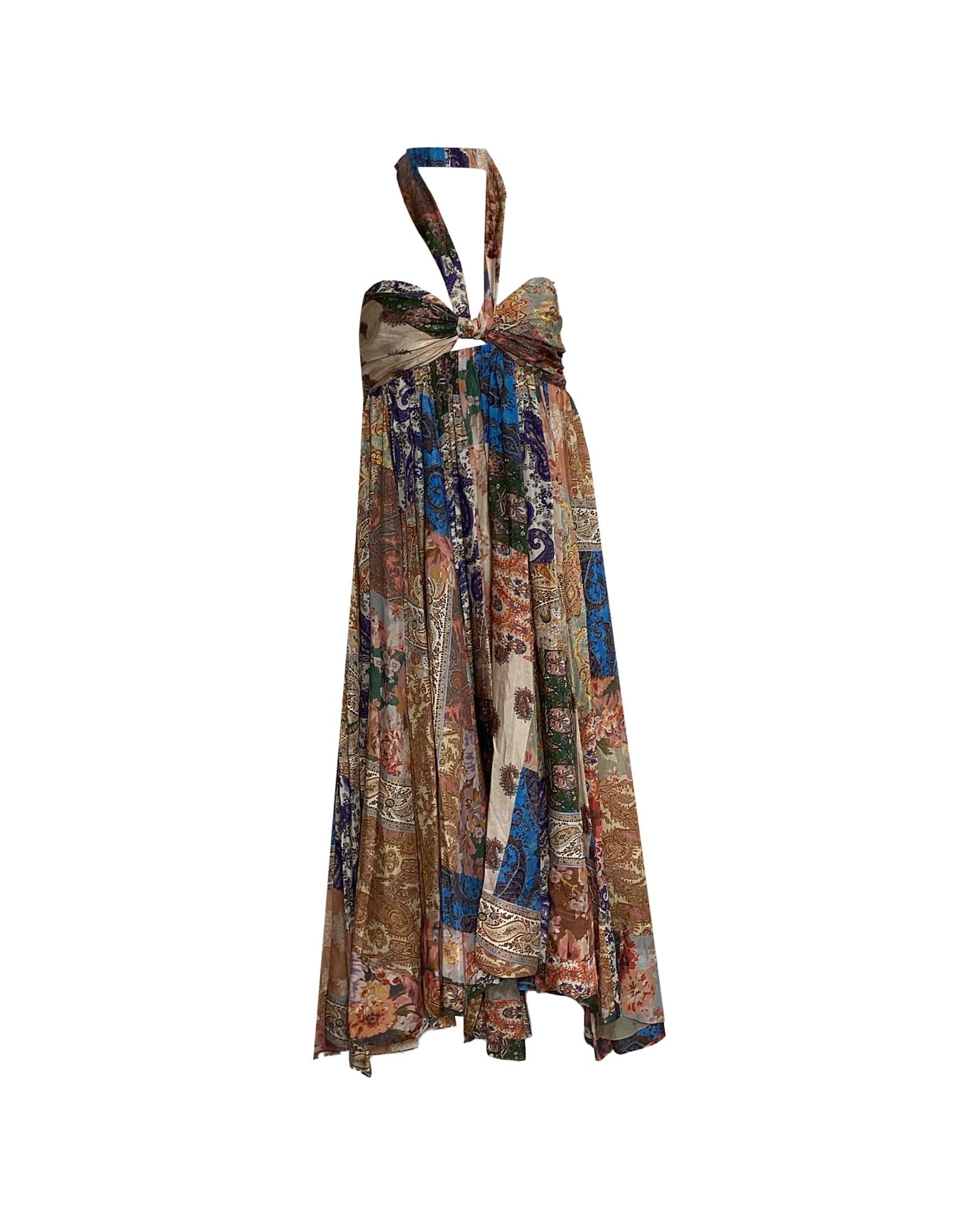 • Zimmermann Devi Paisley Halter Neck Midi Dress in Multicolor Silk