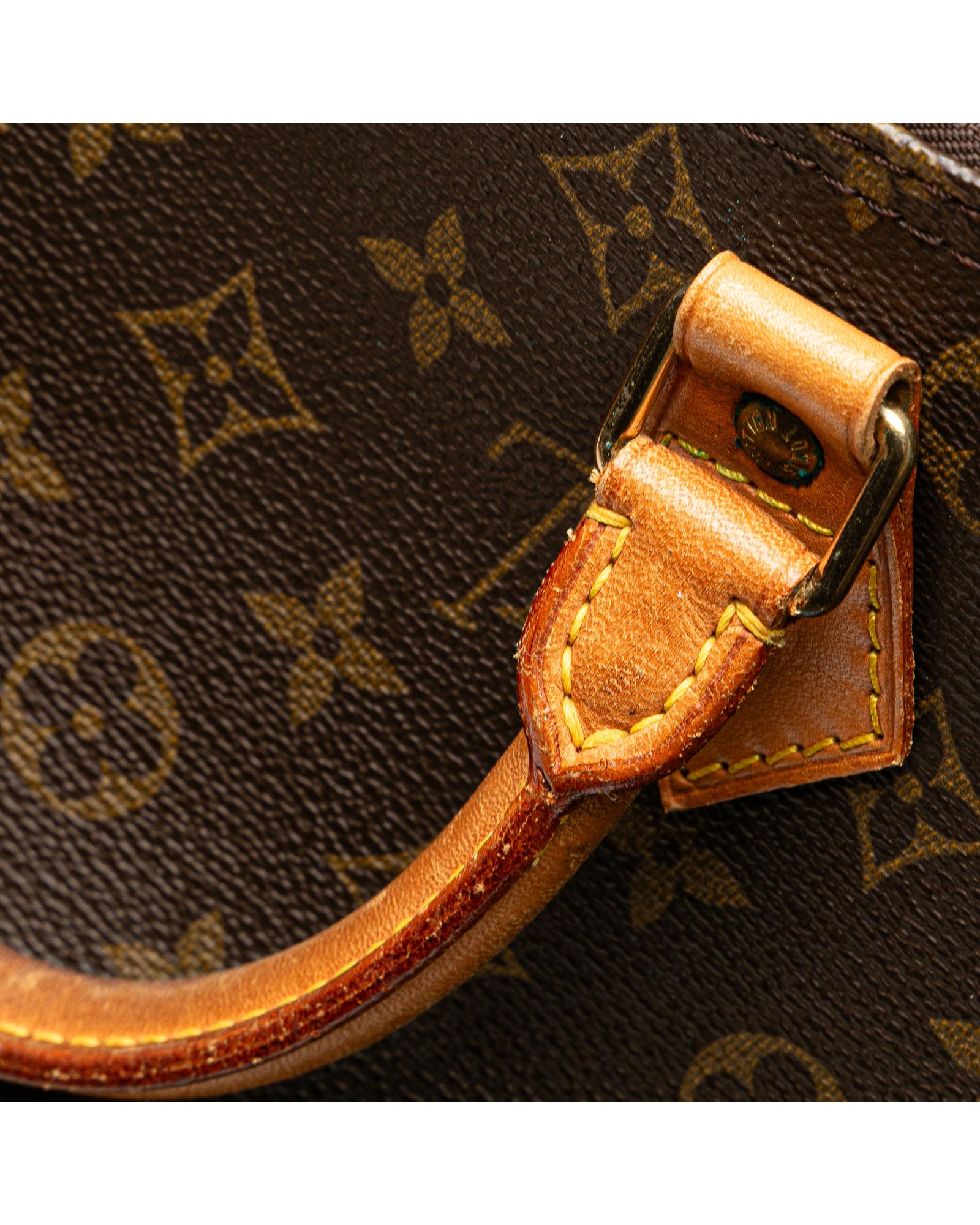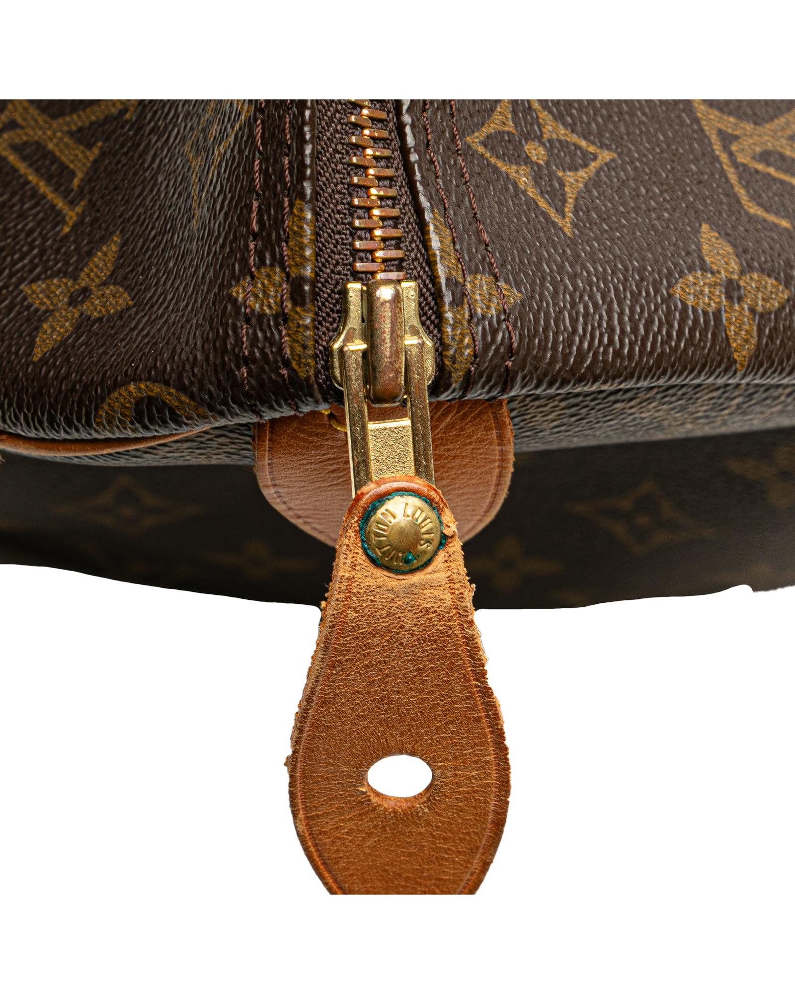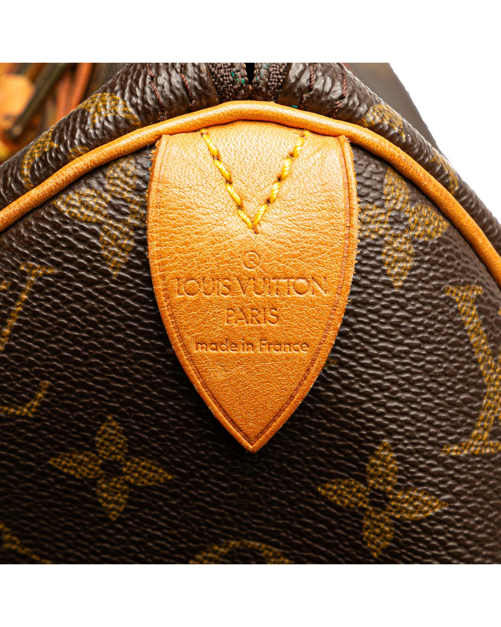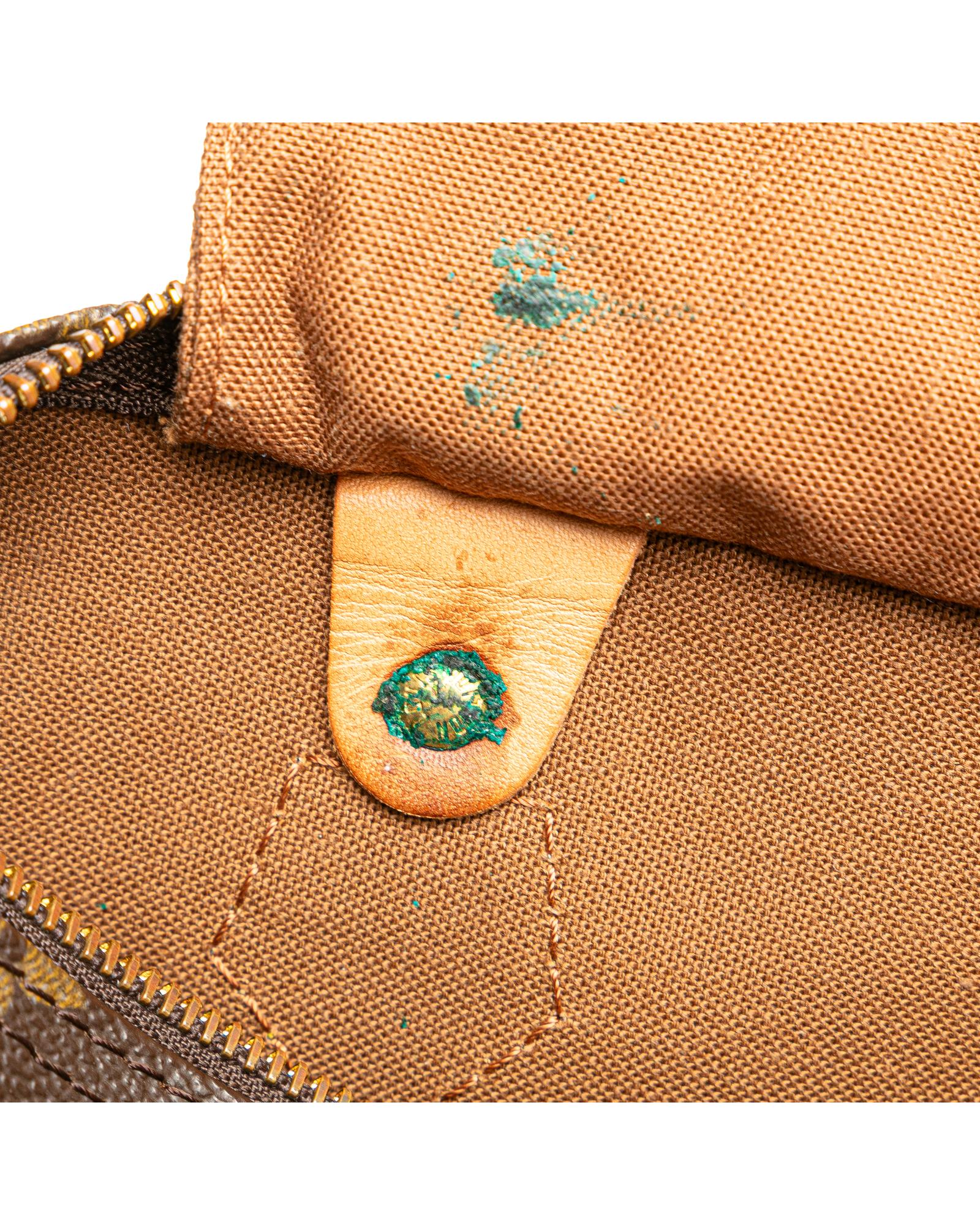 The Speedy 30 features a monogram canvas body rolled vachetta leather handles a top zip closure and an interior pocket.