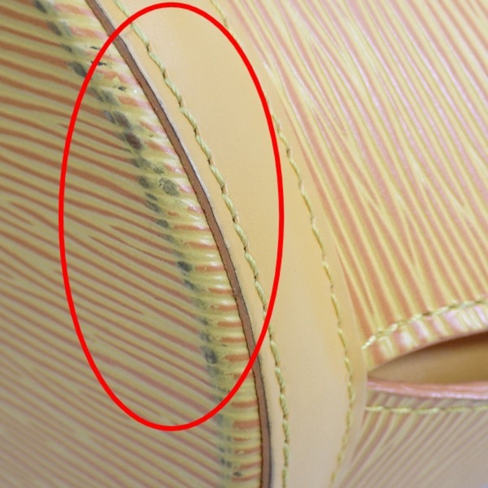 Louis Vuittons Saint-Jacques model presents a stylish tote bag specifically designed for women crafted from vibrant yellow Epi leather showcasing a chic sophisticated accessory. The exterior shows slight scratches rubbing at the corners along with slight cracking on the handles while the interior exhibits minor stains and slight scuffing. We recommend that you look at all the pictures before making your purchase to ensure that you are satisfied with the condition of the item.