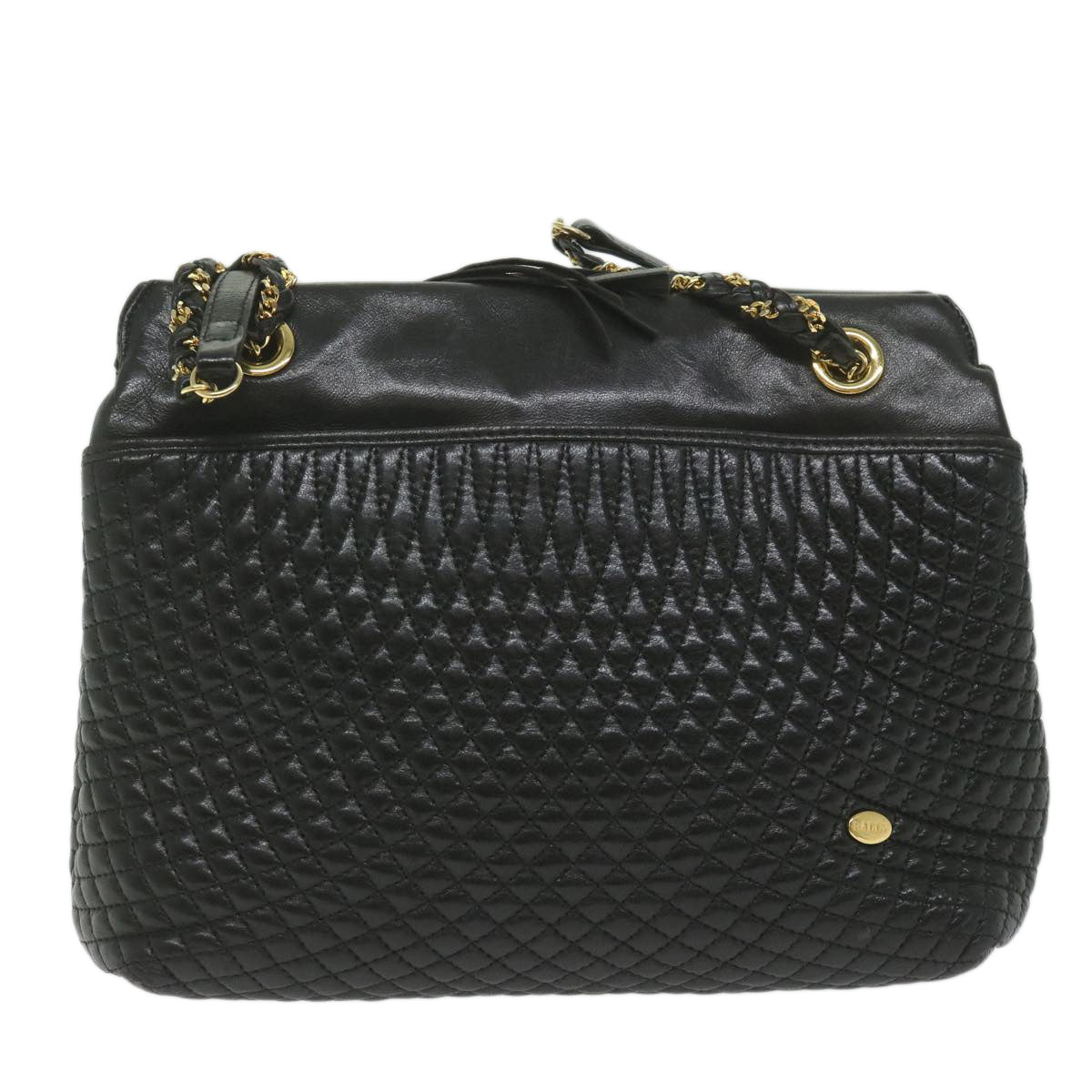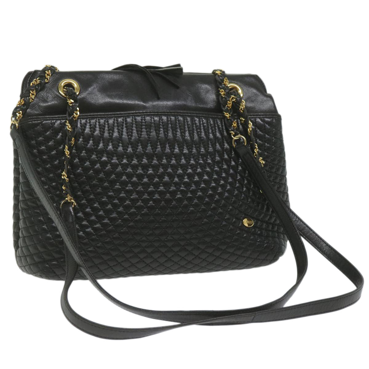 This BALLY shoulder bag crafted from sleek black leather embodies timeless elegance and sophistication. However it's important to note its current condition: the exterior surface displays rubbing and a slight loss of shape indicative of its previous use and handling. The shoulder strap also shows signs of rubbing reflecting its frequent use.