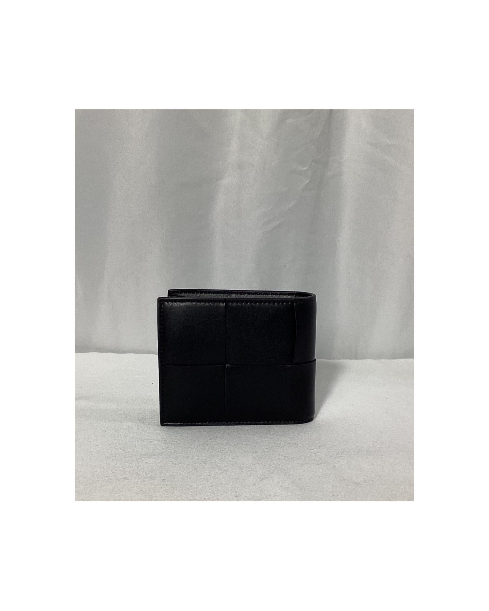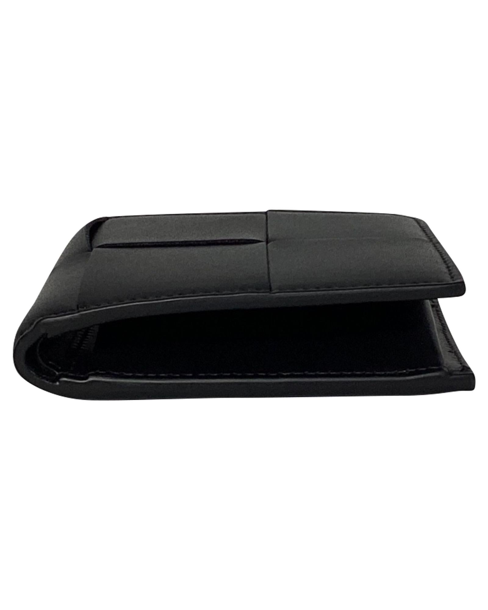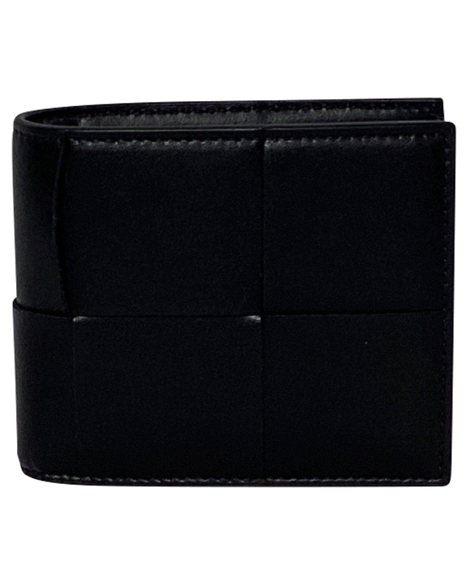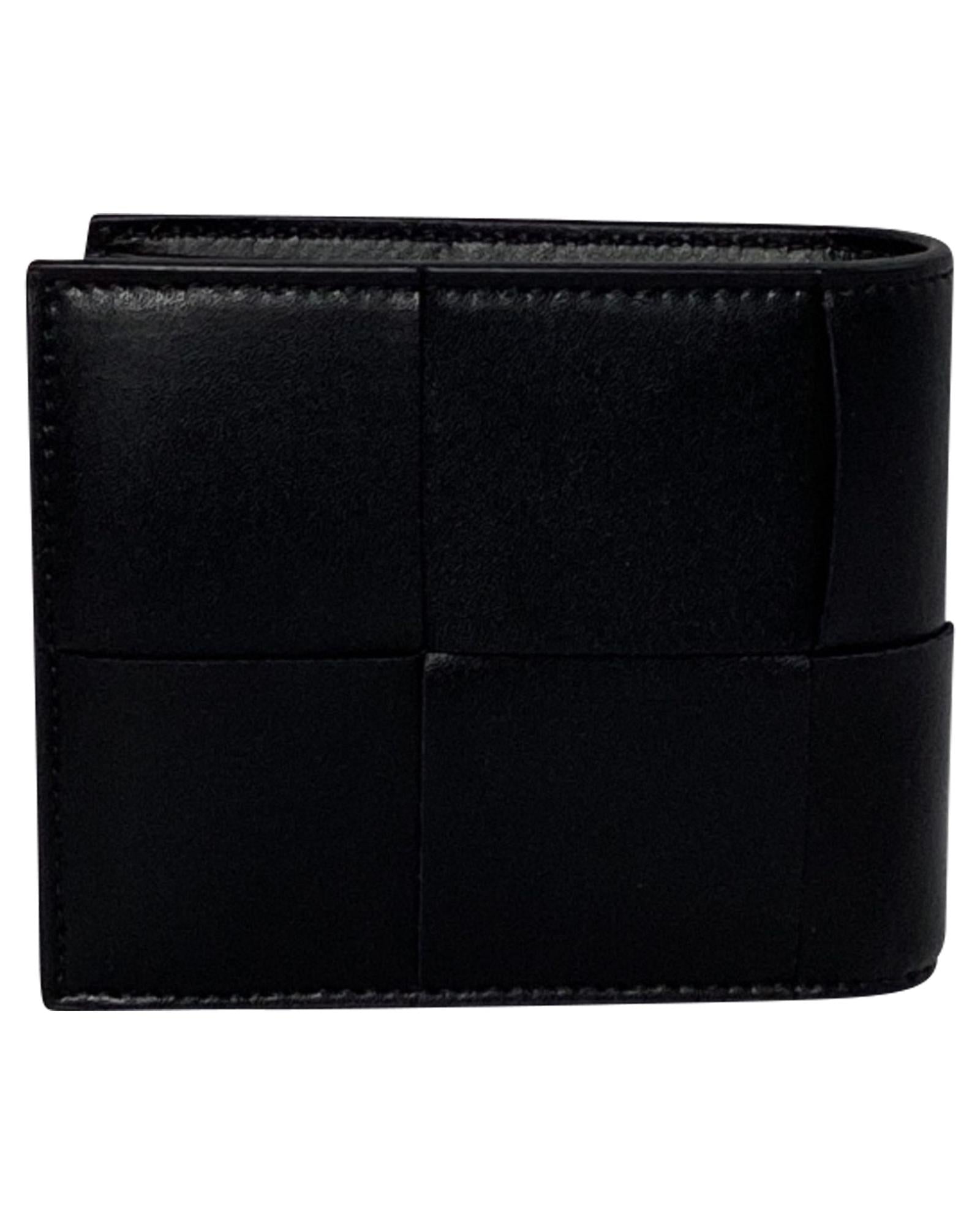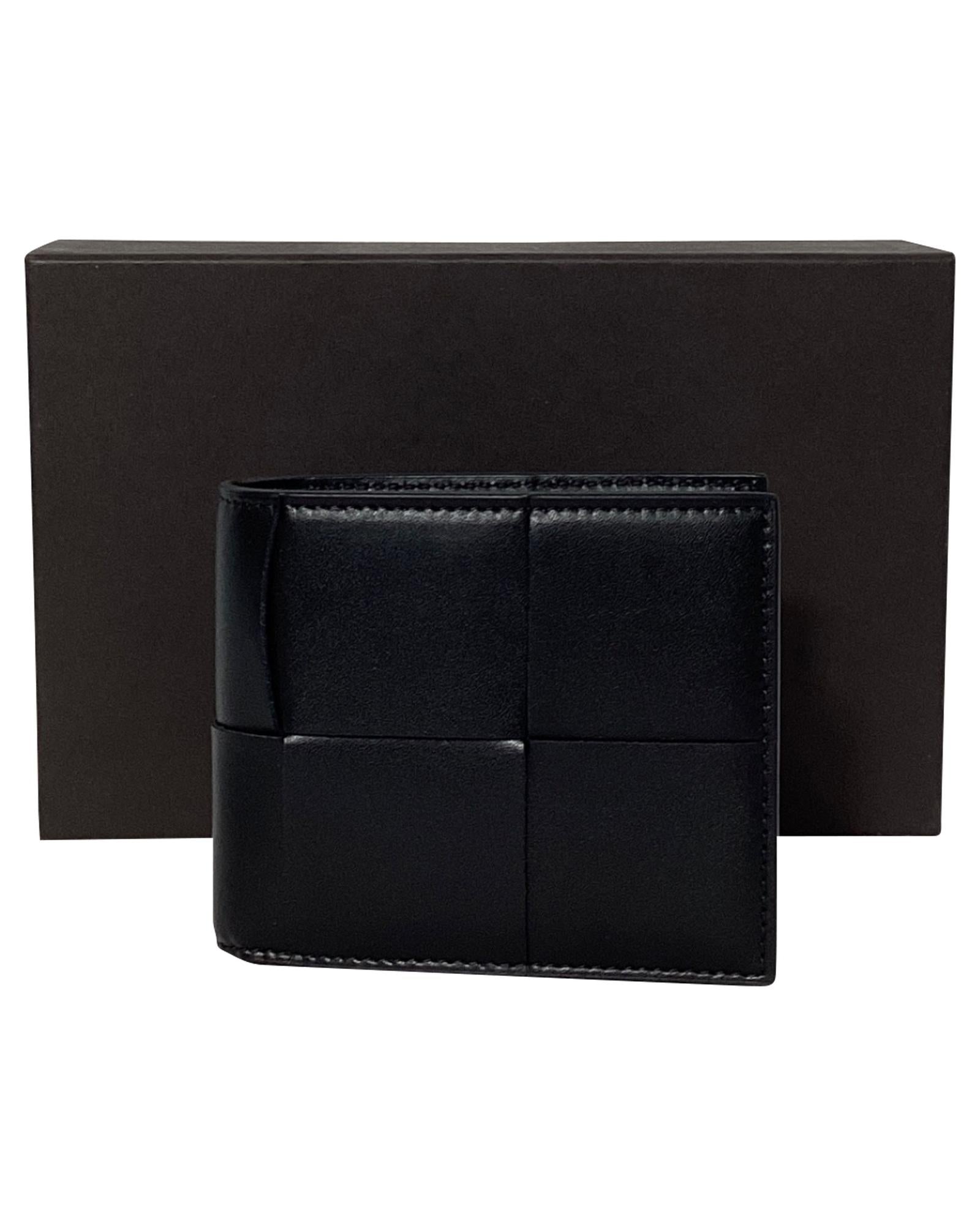 • Bottega Veneta Cassette Intrecciato Billfold Wallet in Black Leather