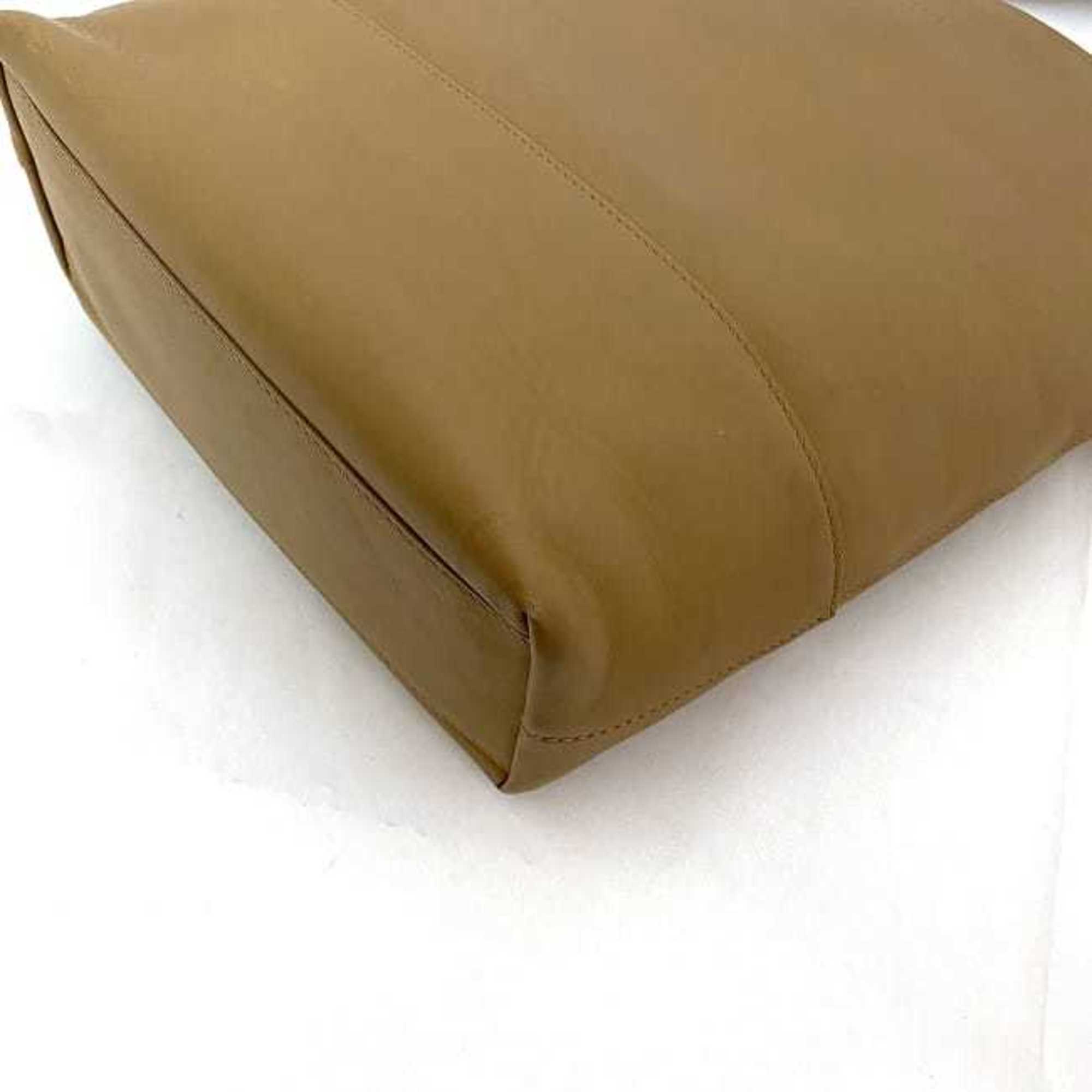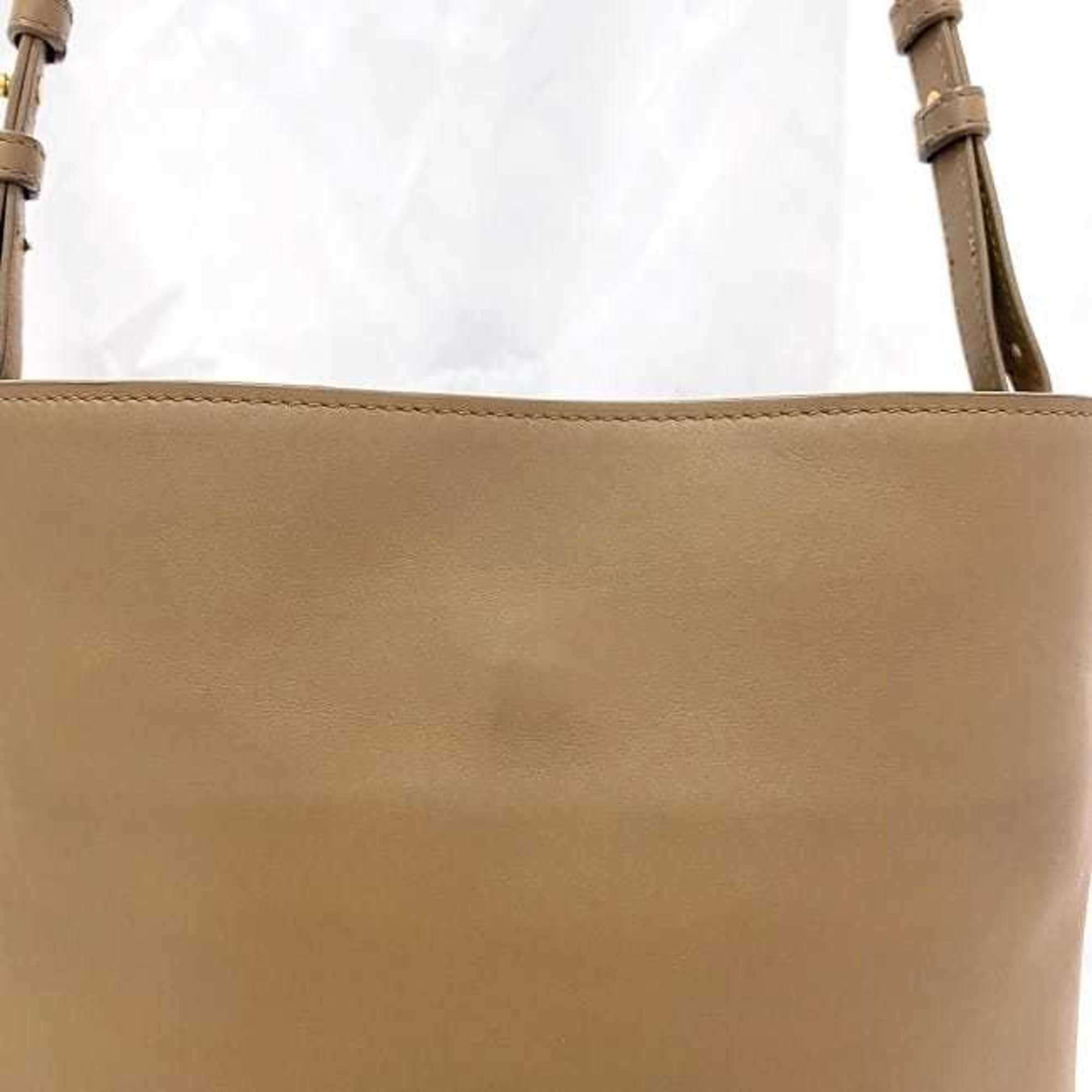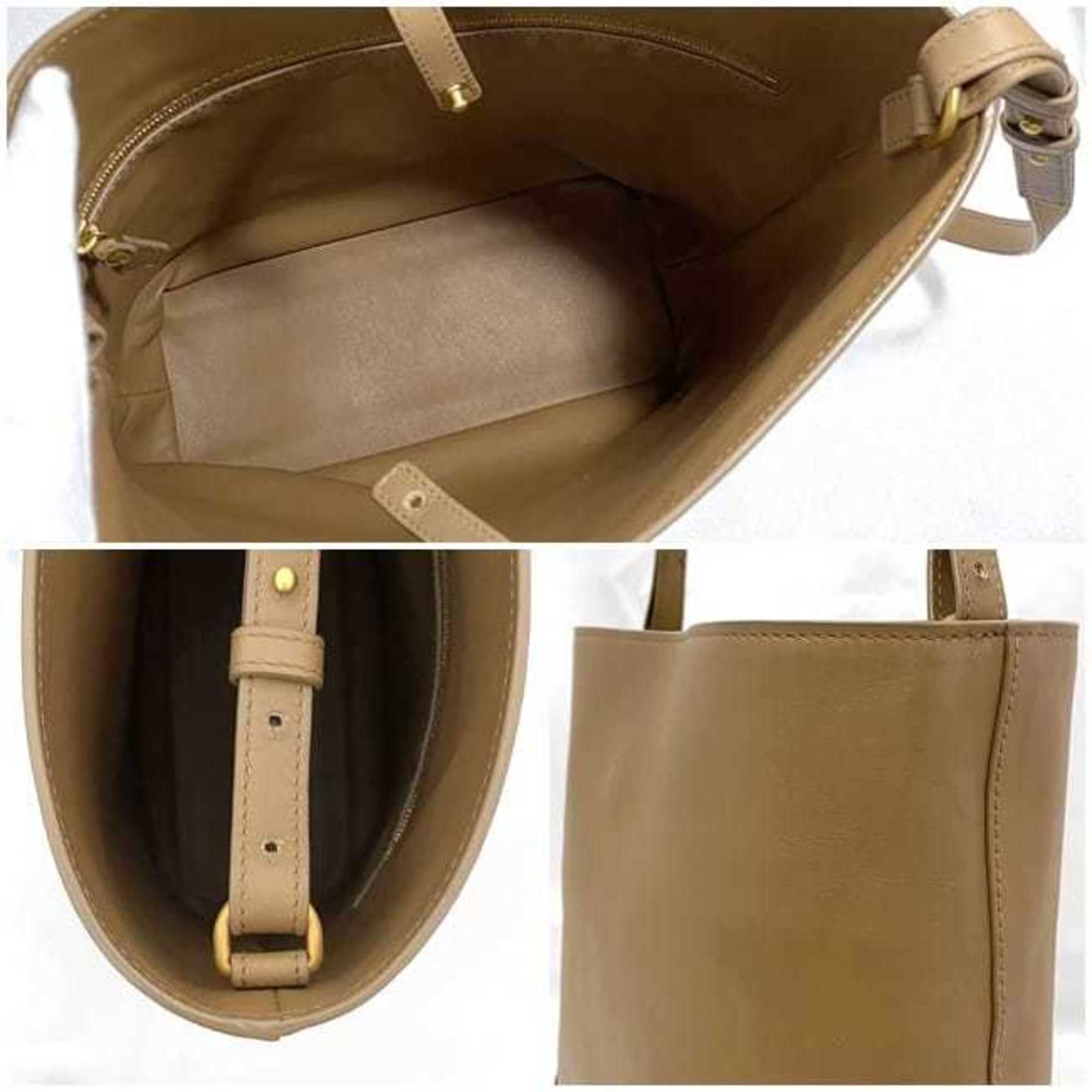 Beige Leather Shoulder Bag with Inner Zipper Pocket