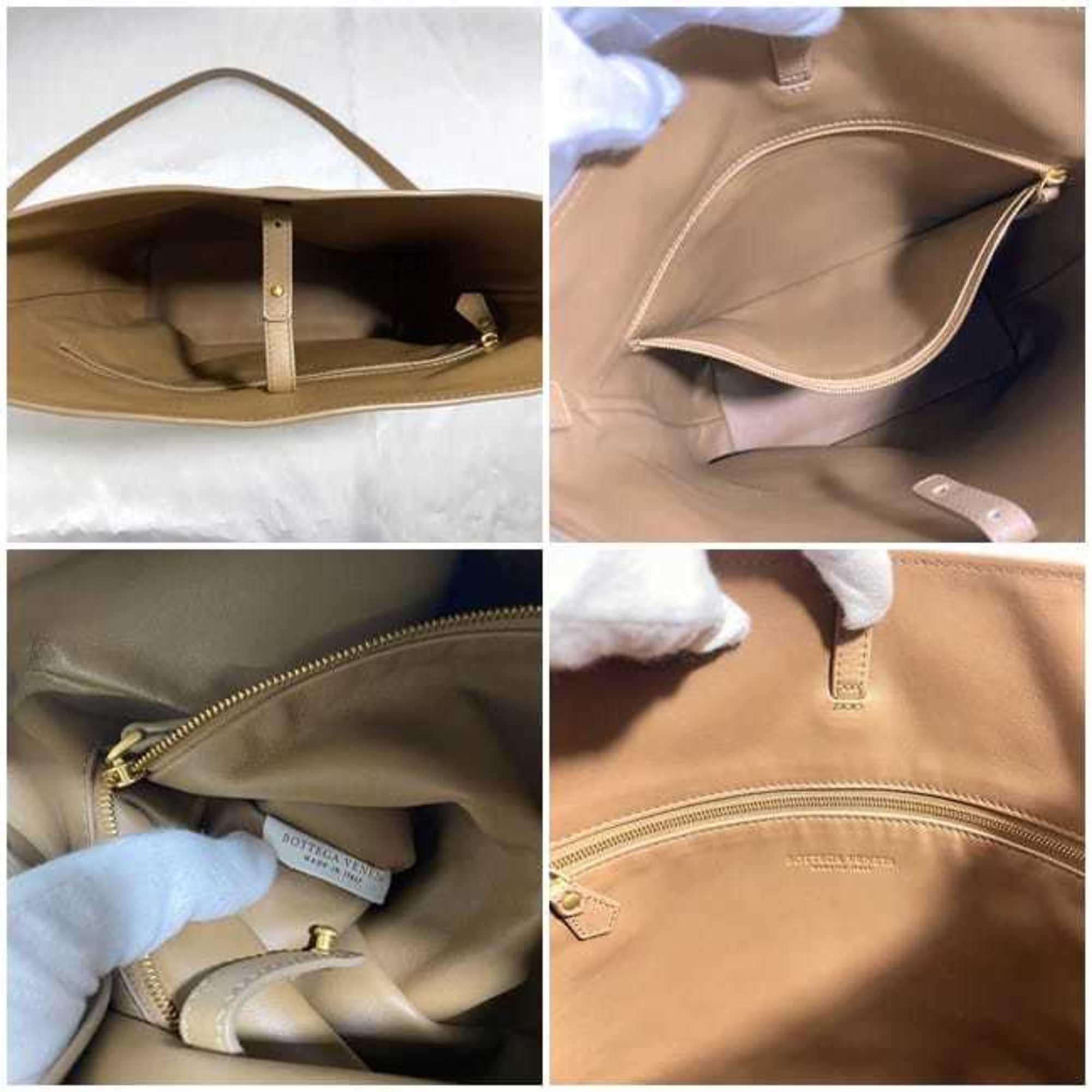 The Bottega Veneta shoulder bag in beige leather is a sophisticated accessory designed for women. It features a single inner zipper pocket for secure storage.
