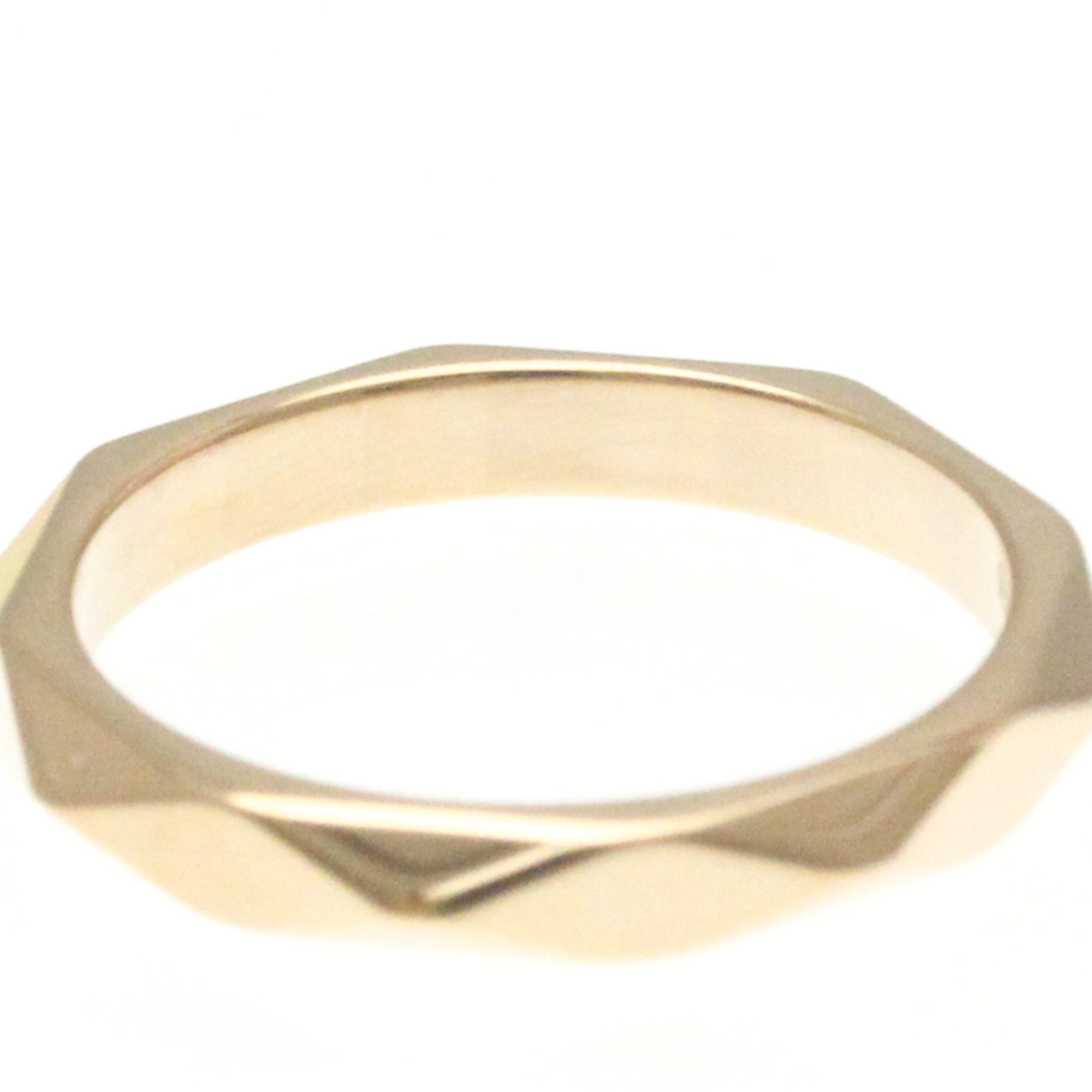 The Facette wedding band has a modern aesthetic featuring a geometric motif which catches the light.The ring is enhanced by the alliance of the precise polishing work on the gold and the subtle sparkle of the diamonds.A wedding band which is modern and sophisticated for a celebration of enduring love.