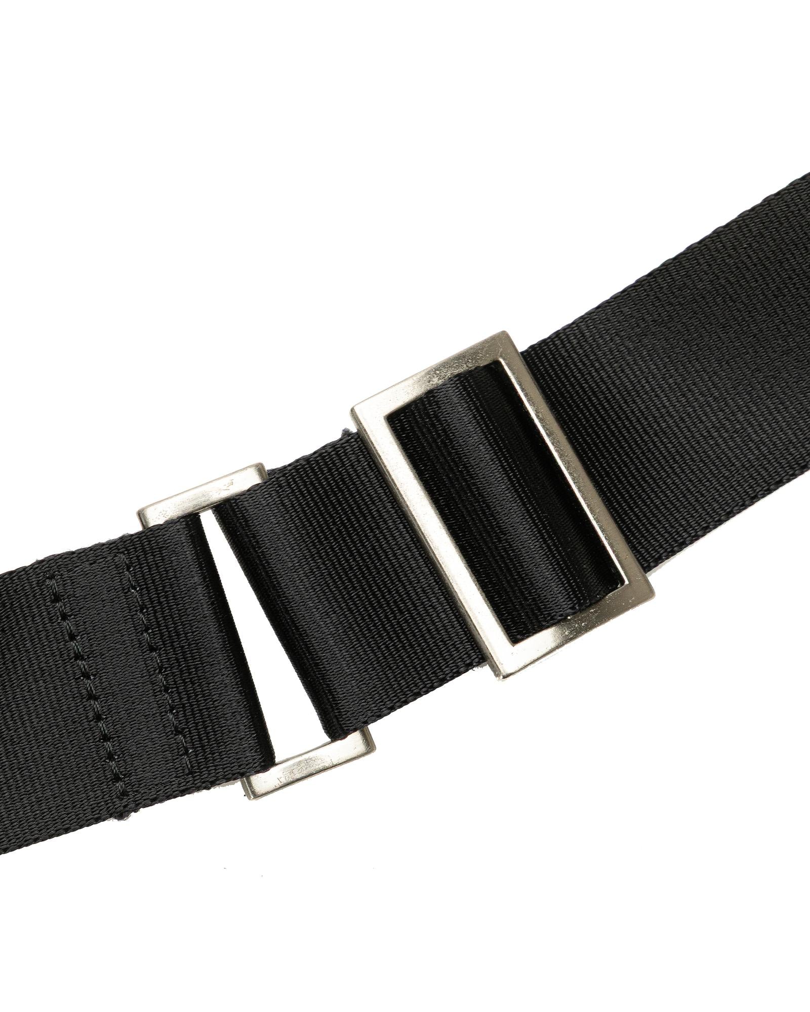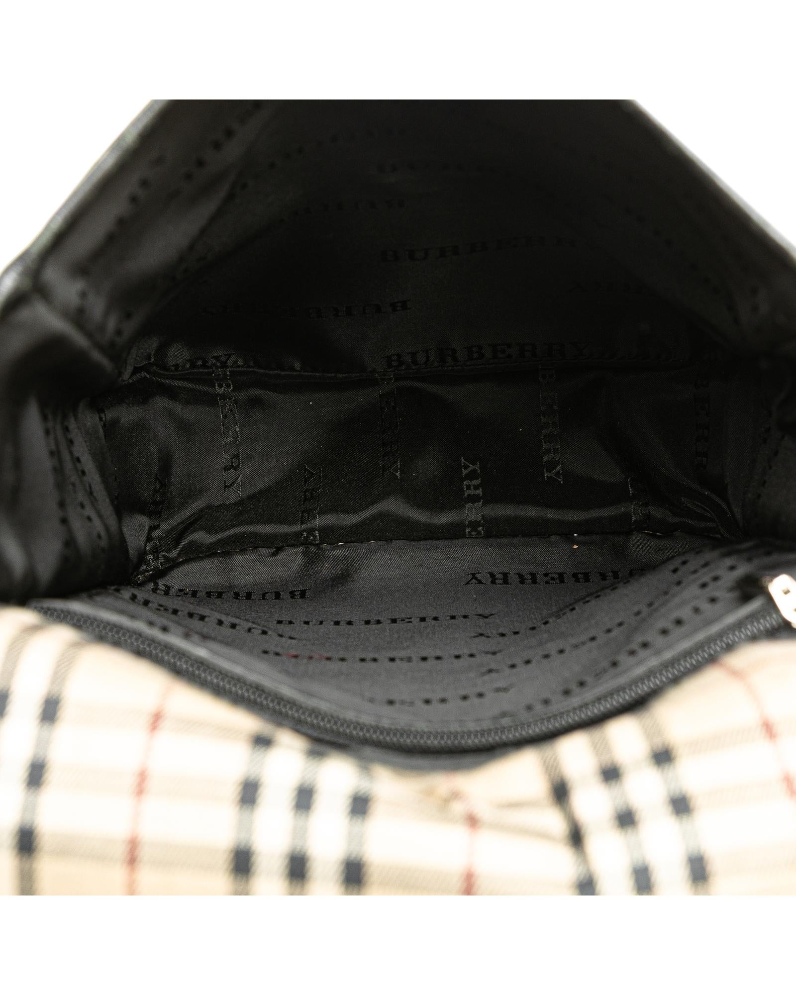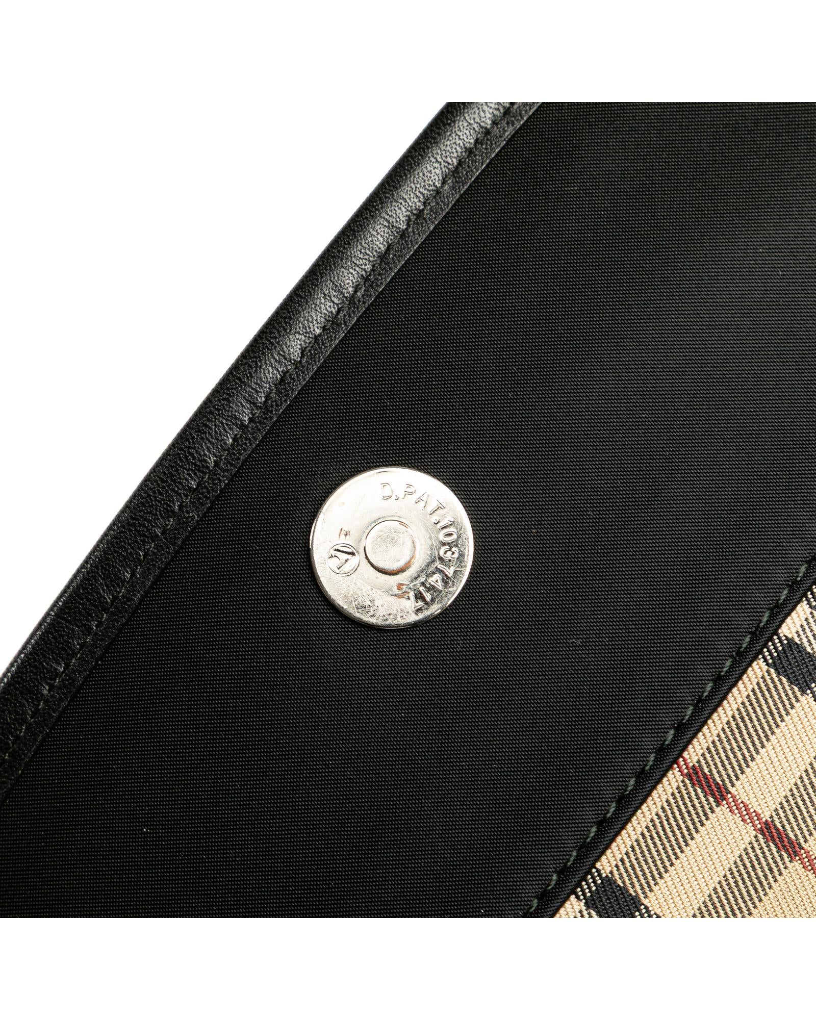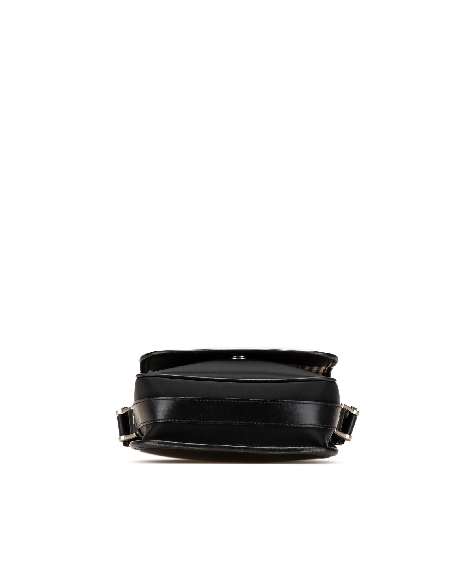 This crossbody bag features a nylon body with leather trim an adjustable flat canvas strap a front flap with magnetic snap closure exterior zip and slip pockets and an interior zip pocket.