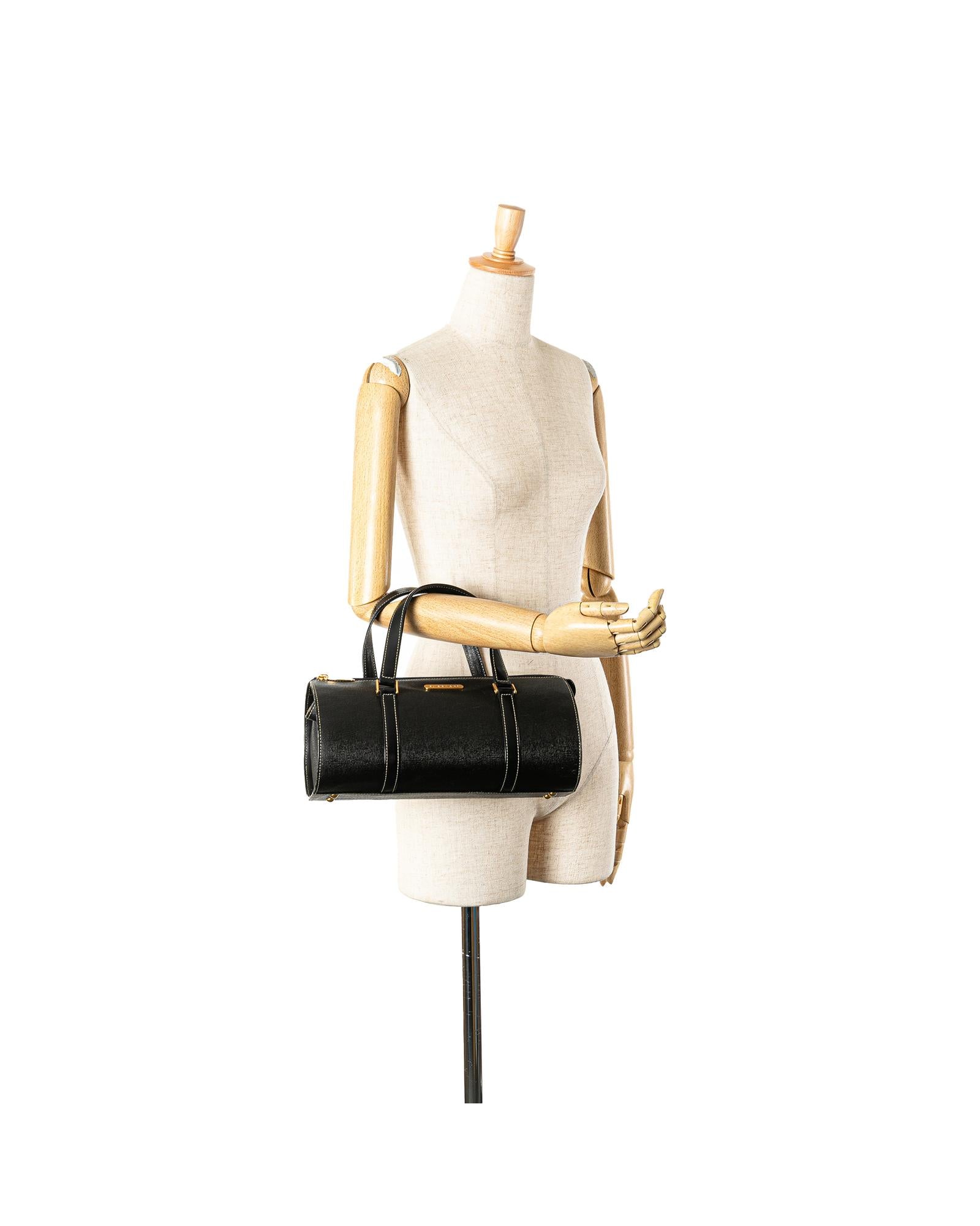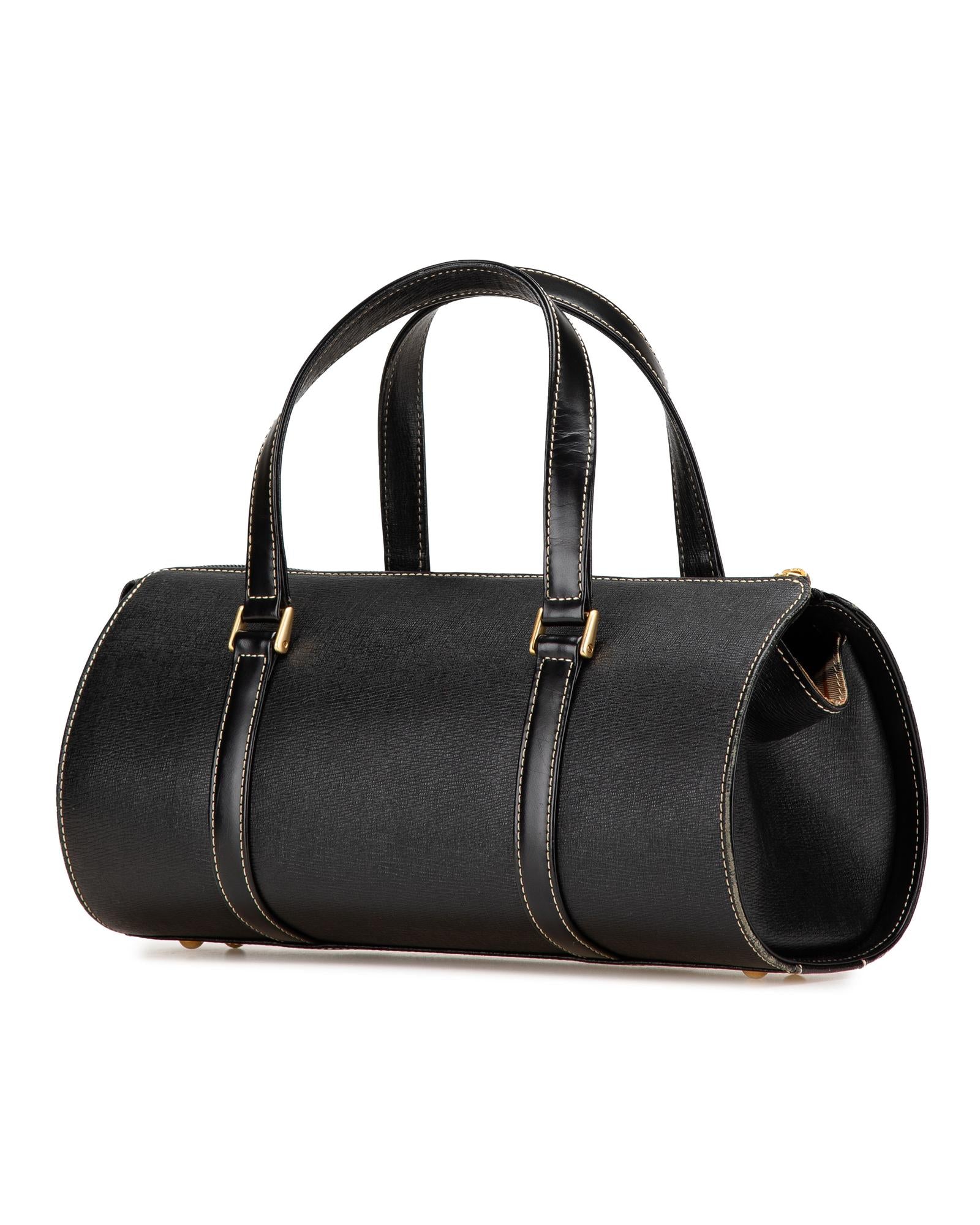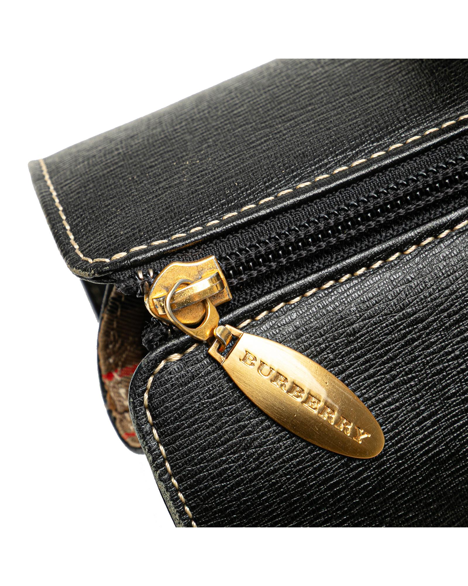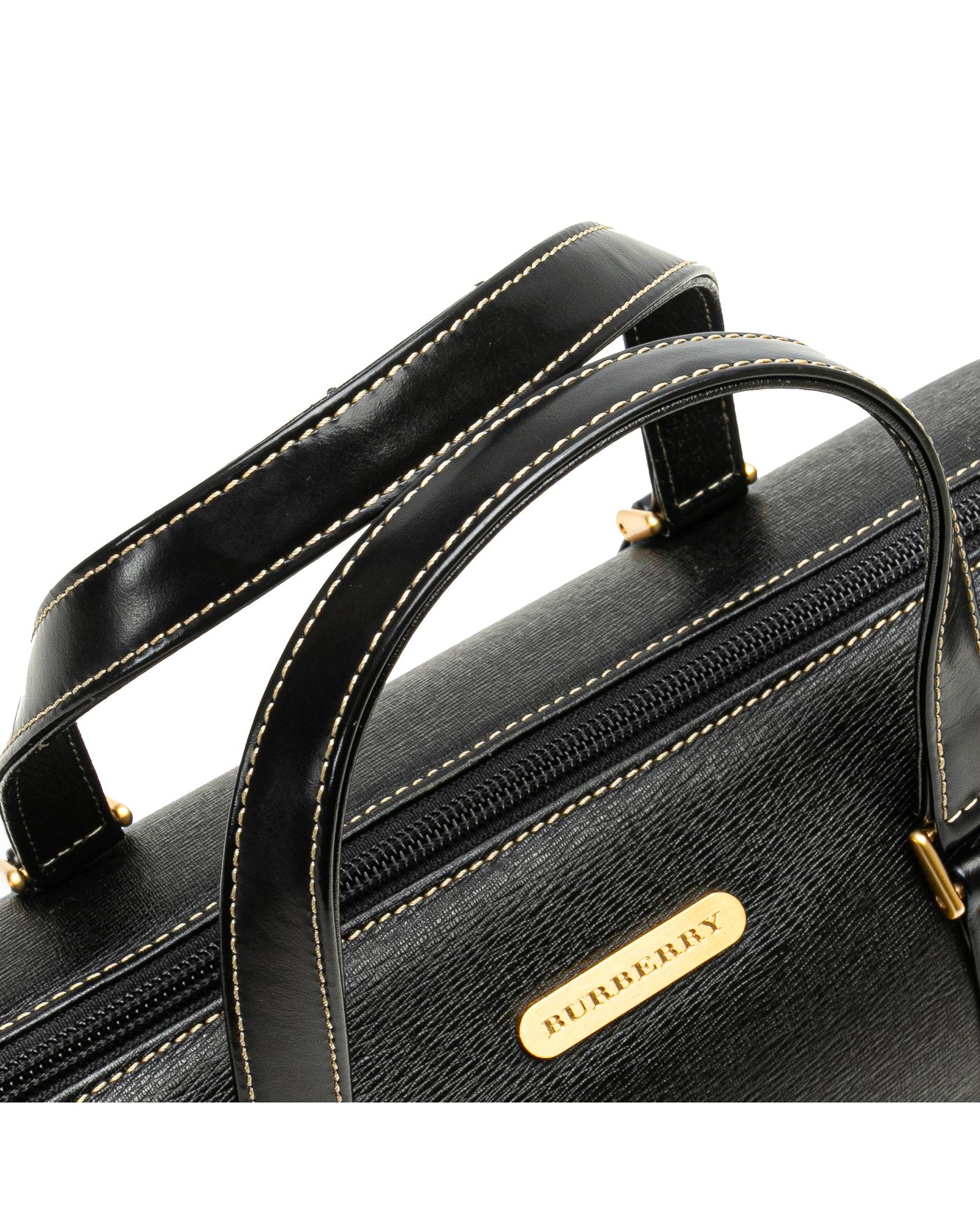 This handbag features a leather body flat leather handles a top zip closure and an interior zip pocket.Brand: Burberry
