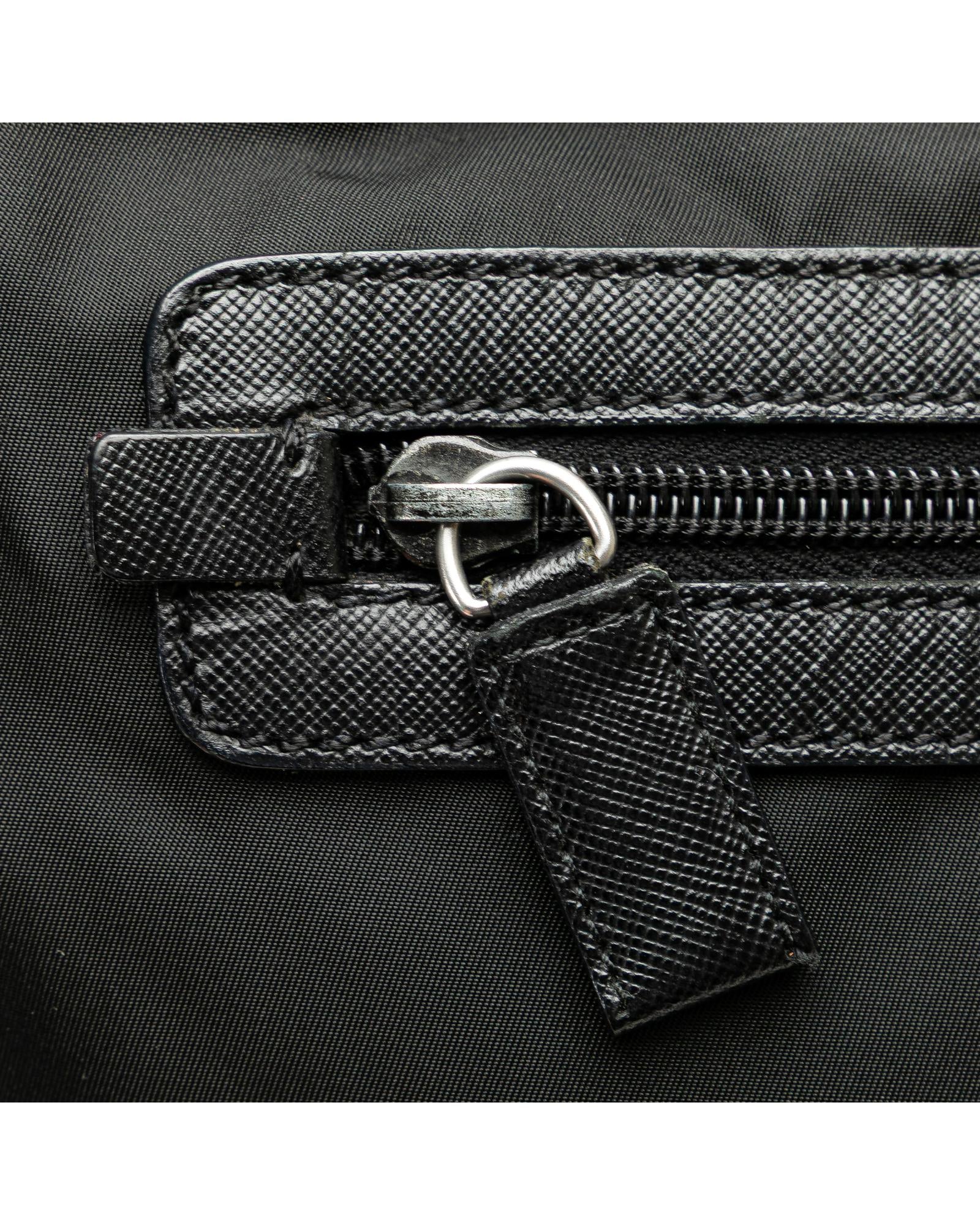 This crossbody bag features a nylon body with leather trim an adjustable flat strap a top zip closure an exterior back zip pocket and an interior zip pocket.Brand: Prada Vintage