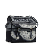 The Diorcamp messenger bag features a canvas body a flat strap a front flap and an interior slip pocket.