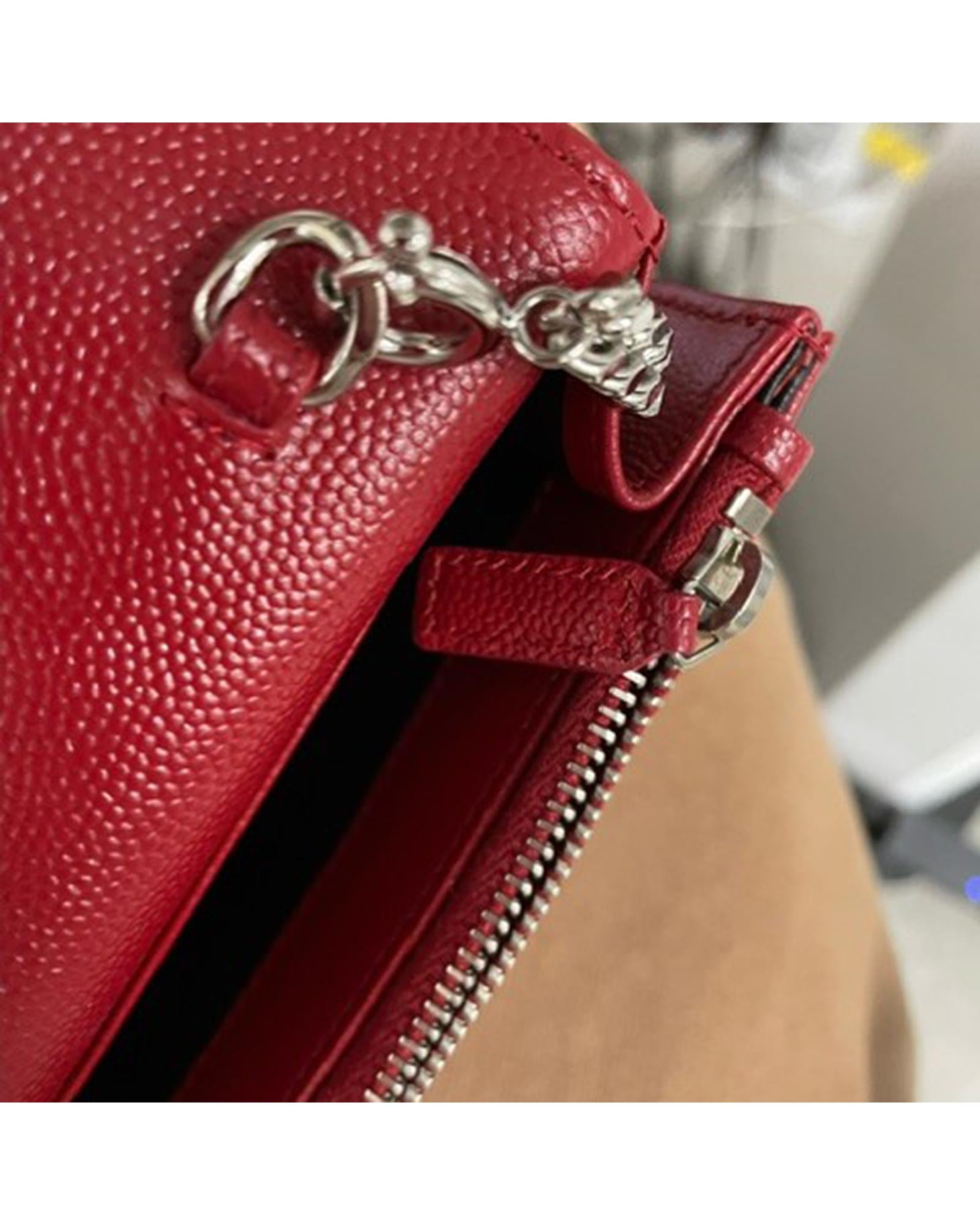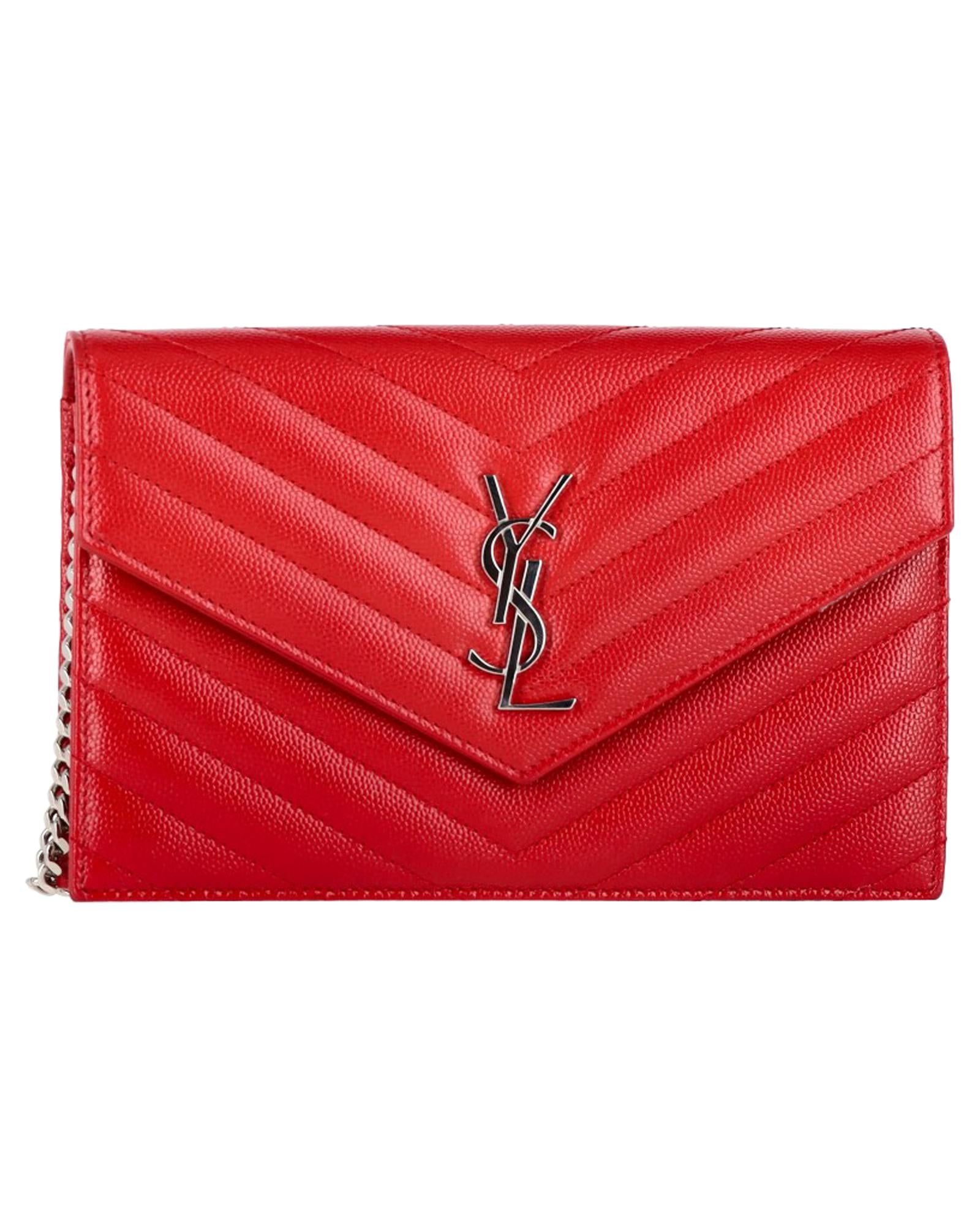 - Saint Laurent Classic Cassandre Matelasse Wallet On Chain Bag in Red Leather
