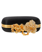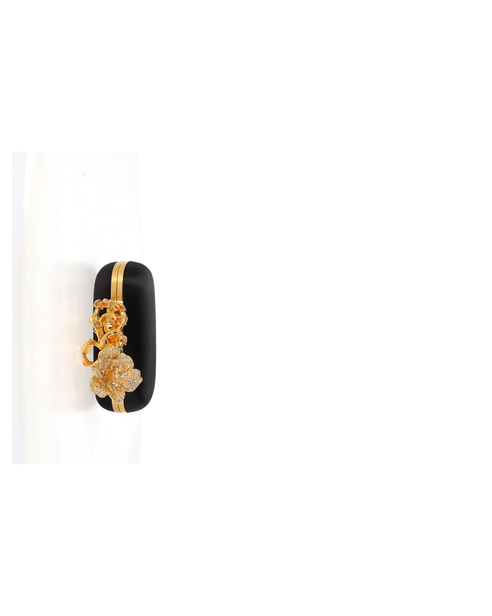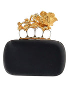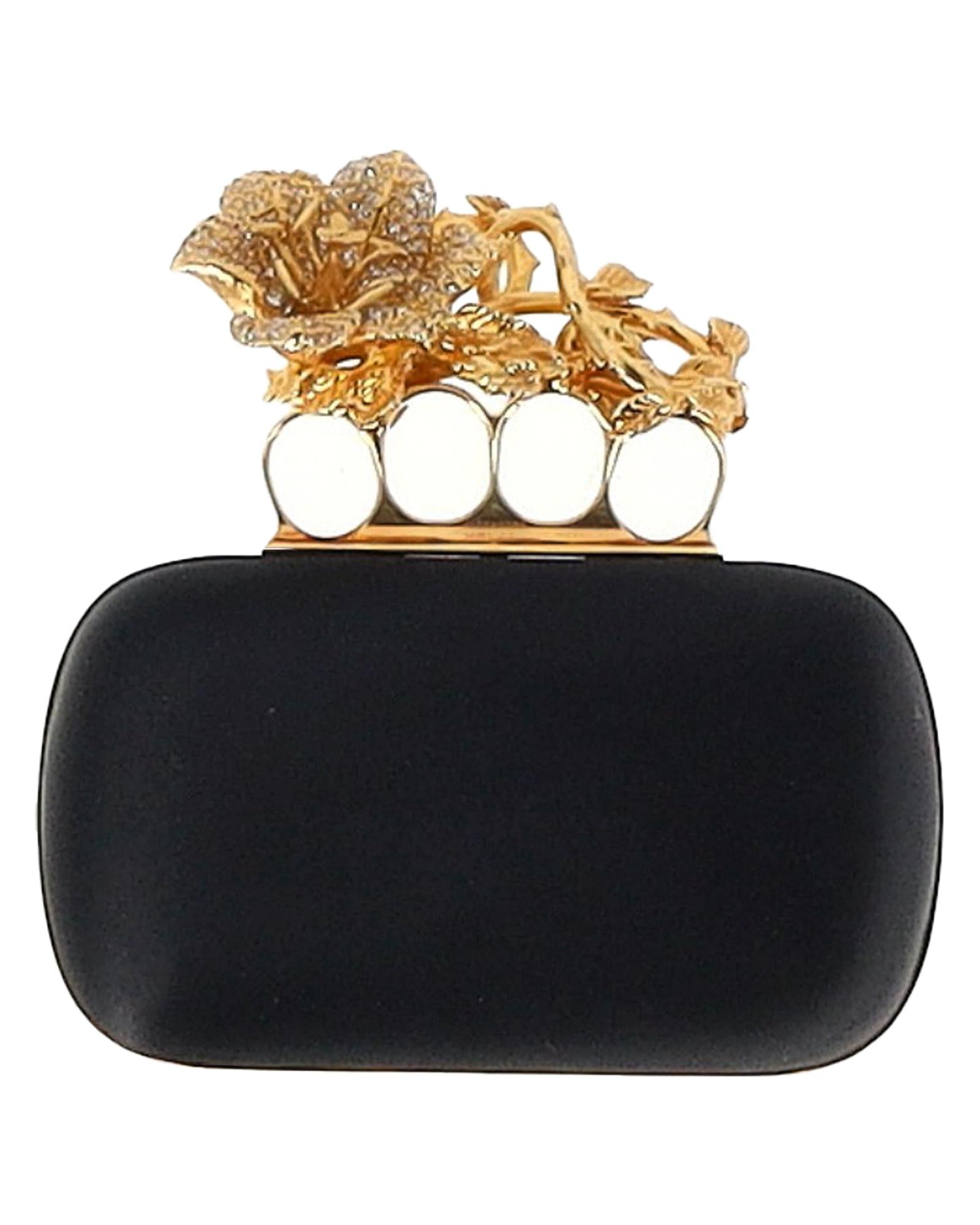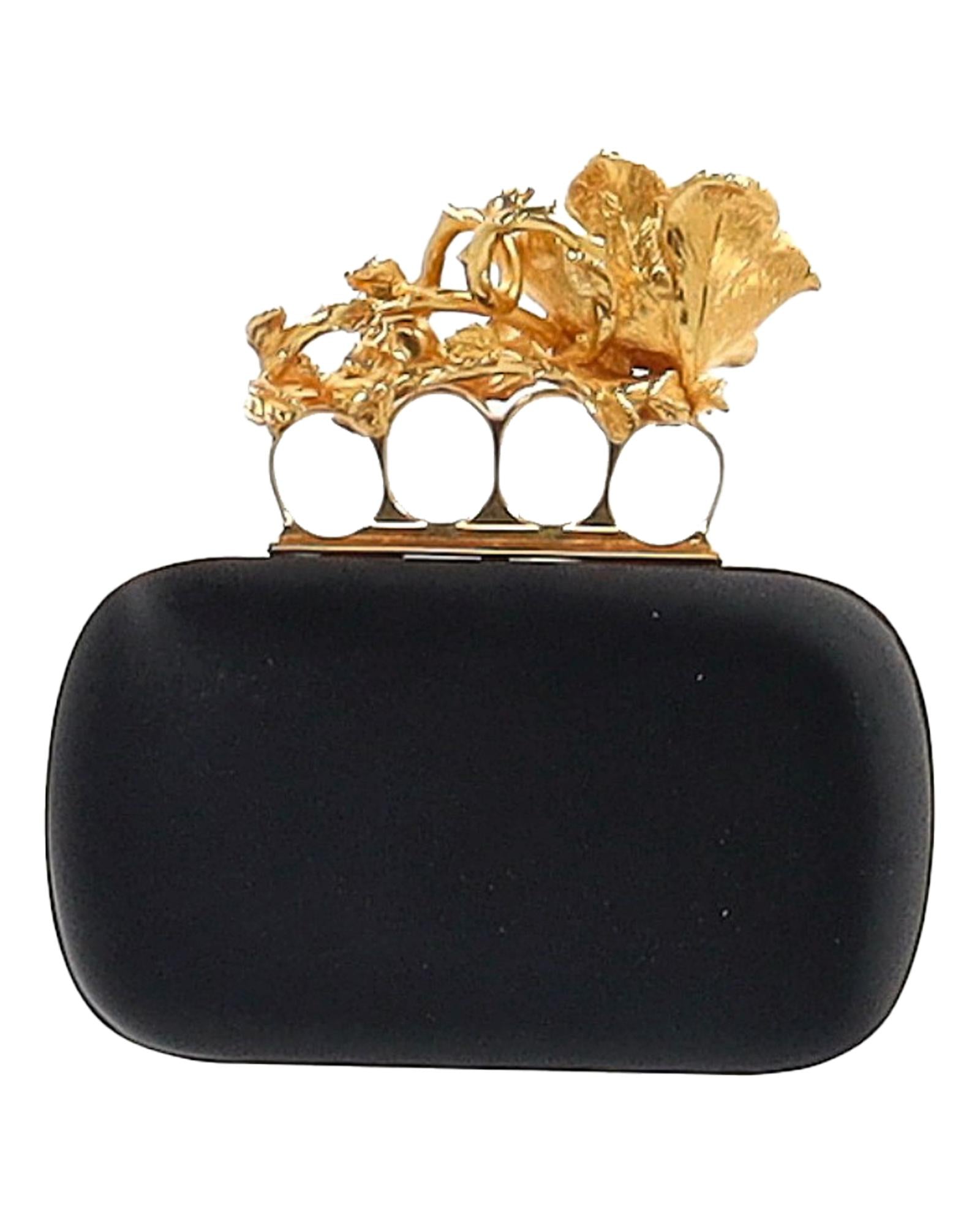 - Alexander McQueen Floral Knuckle Clutch in Black Satin