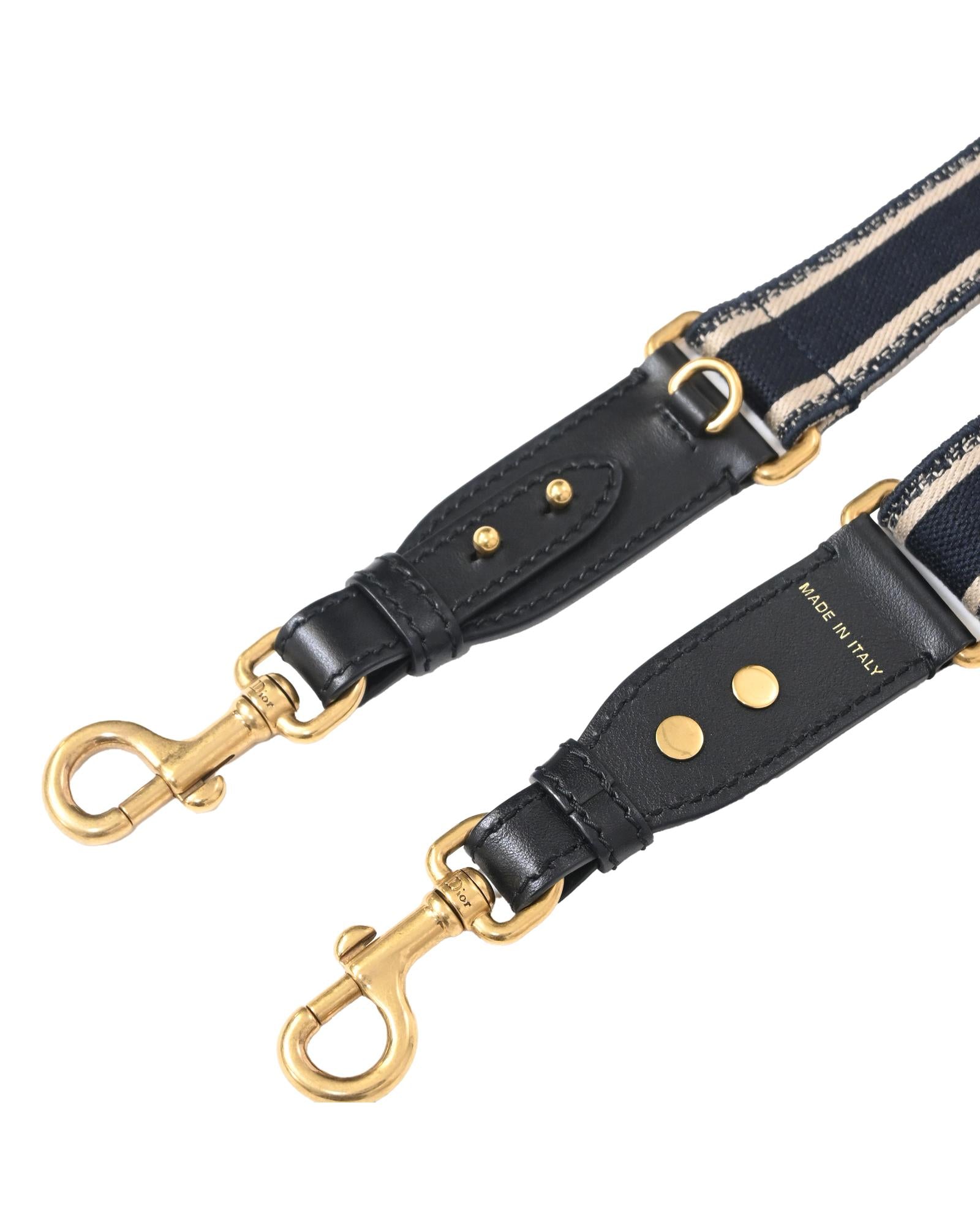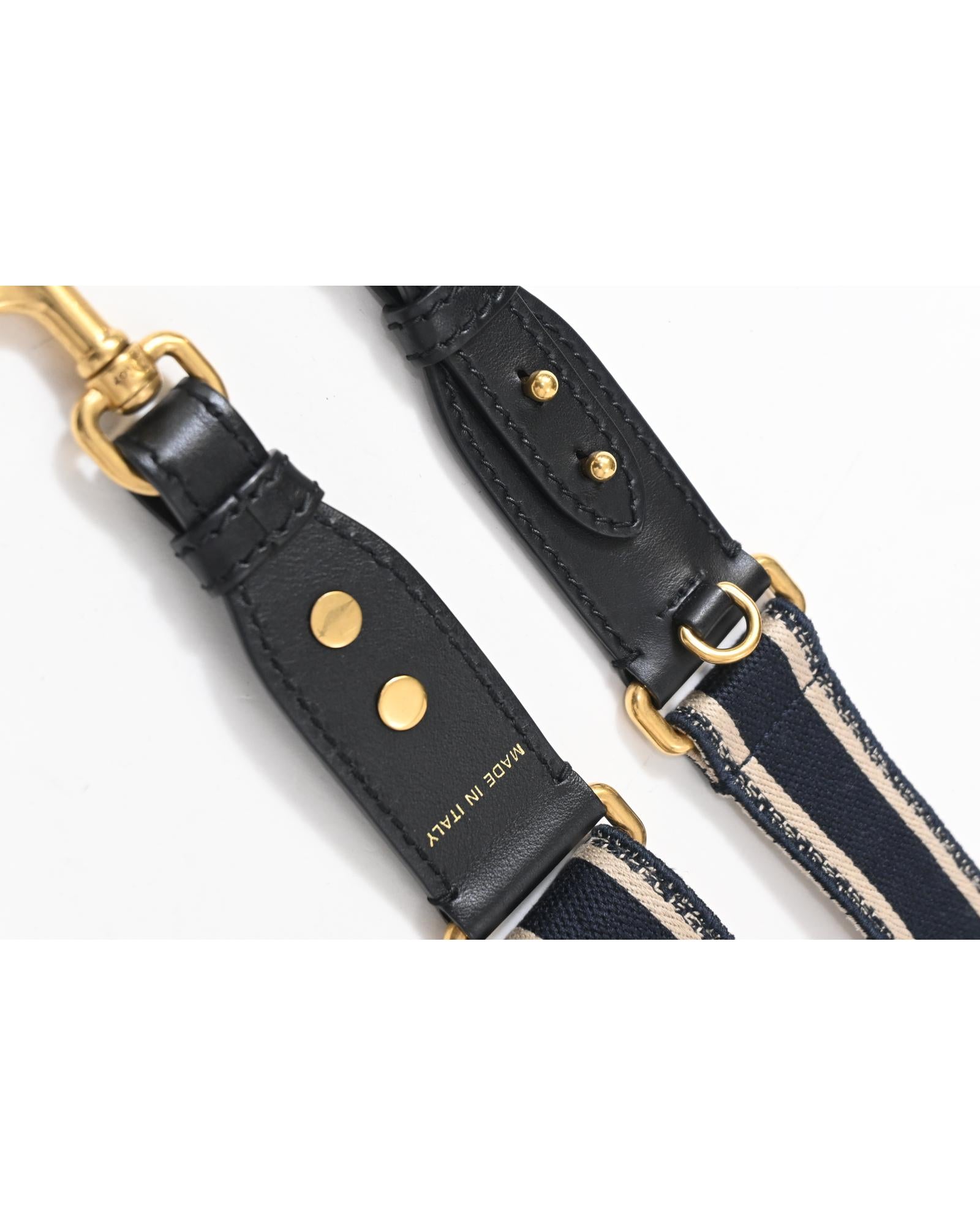 - Dior Logo Embroidered Book Shoulder Strap in Navy Blue Cotton