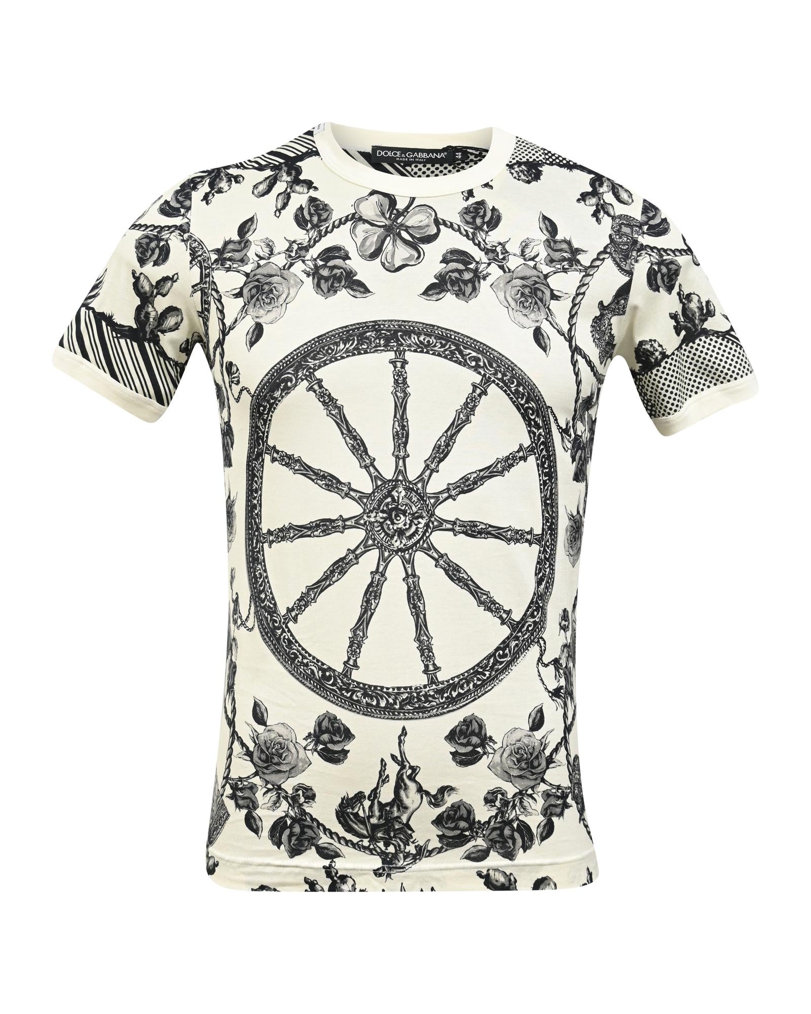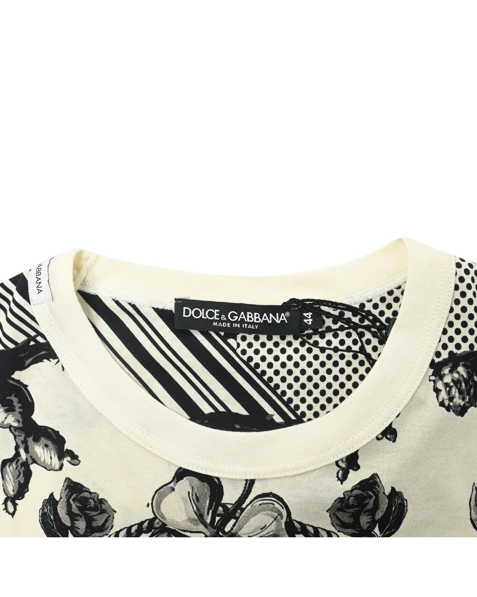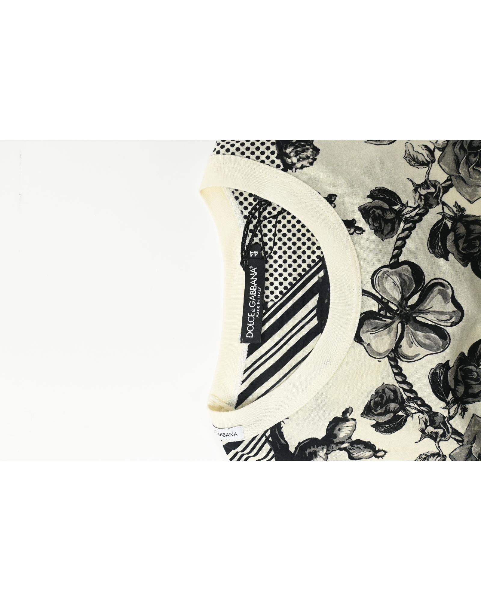 - Dolce & Gabbana Monochrome Pique Rose Printed T