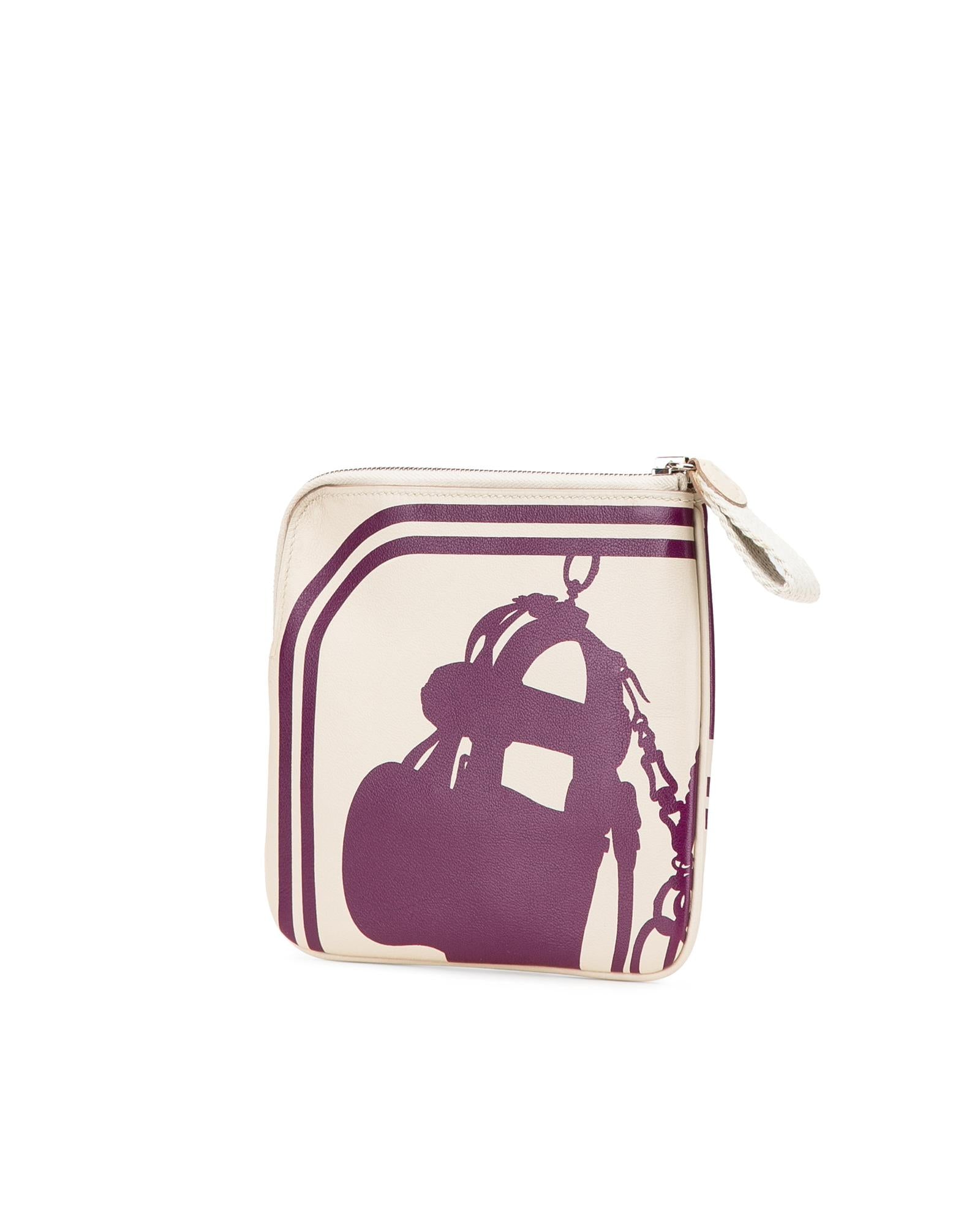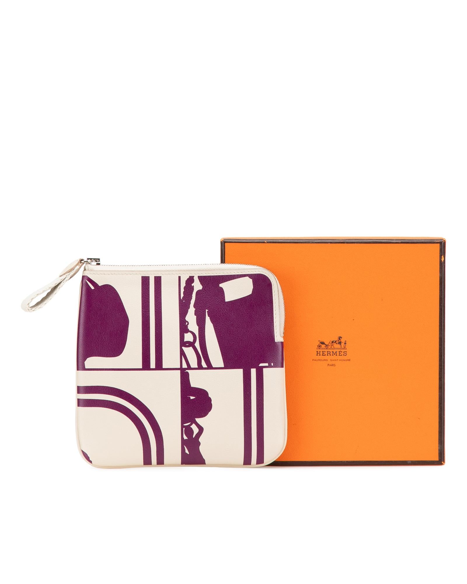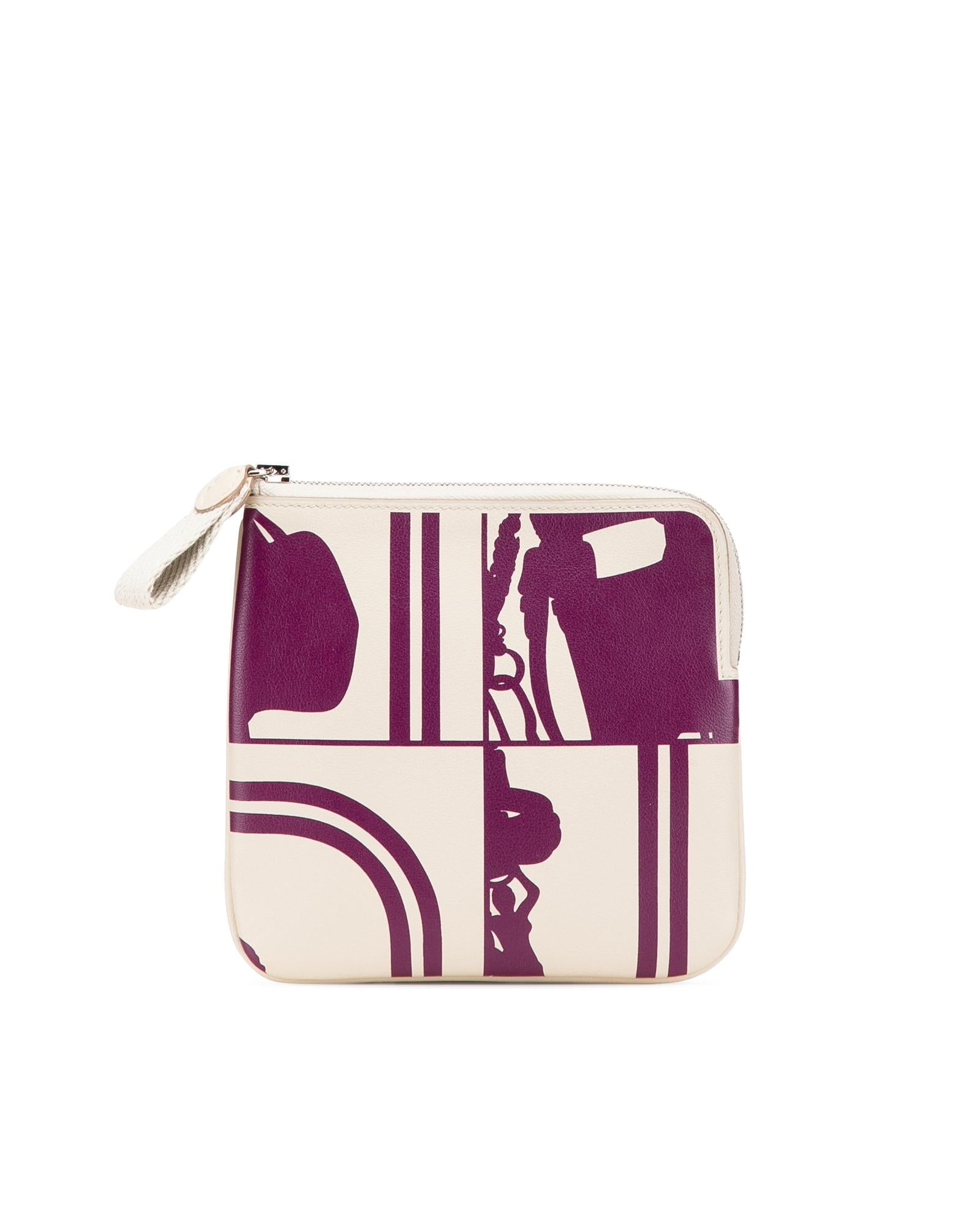 This Pouch features a printed leather body a top zip closure and an interior slip pocket.