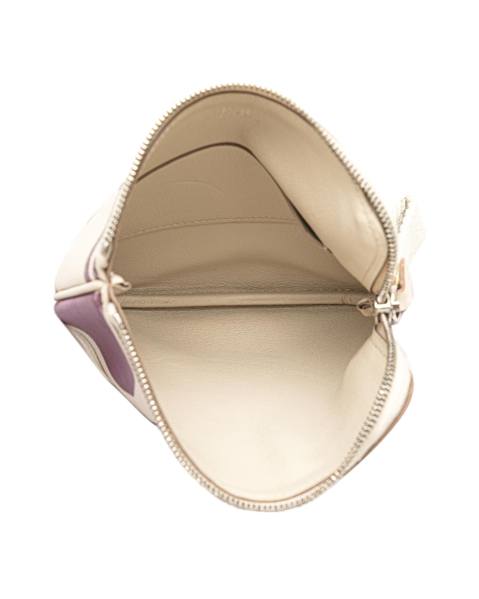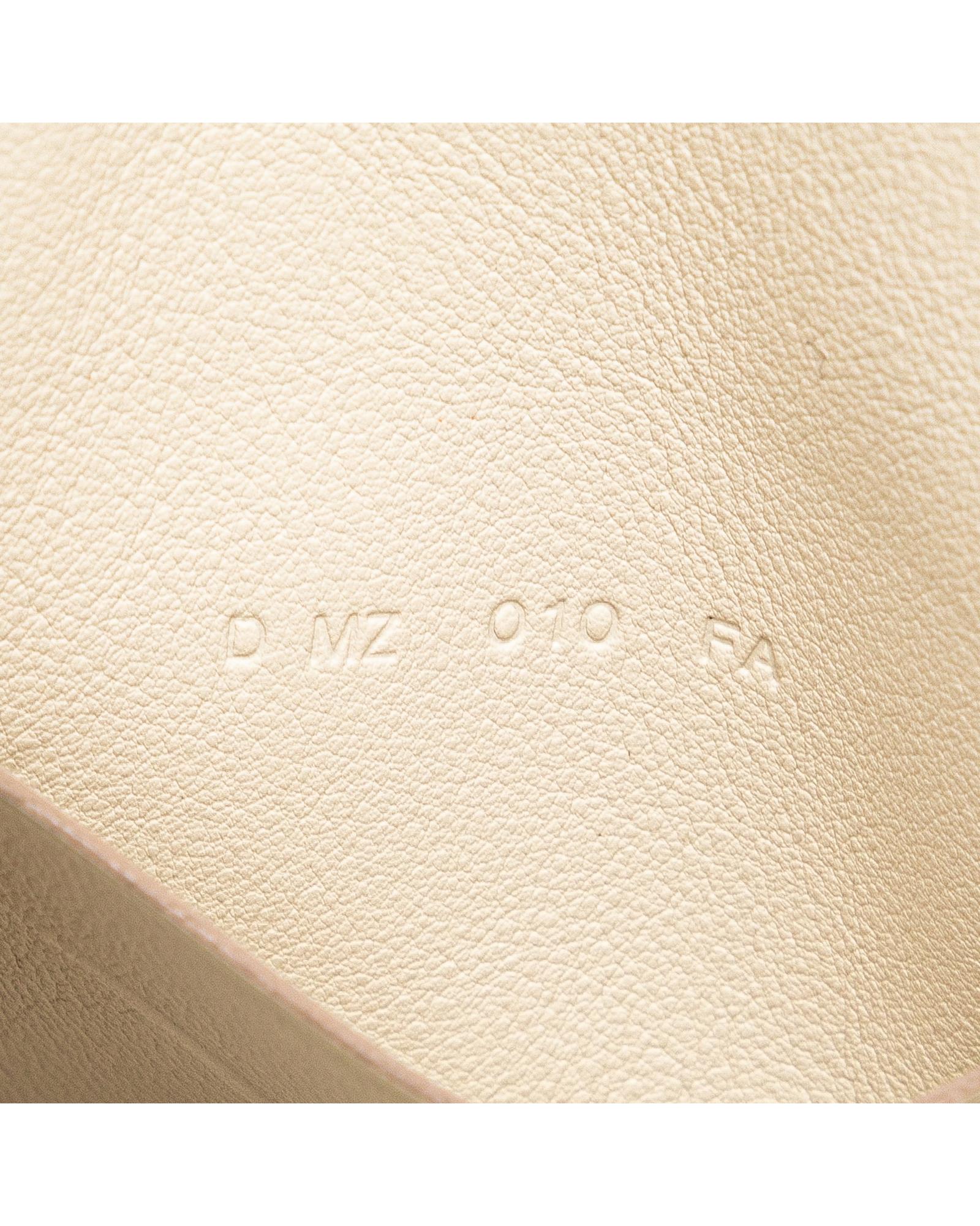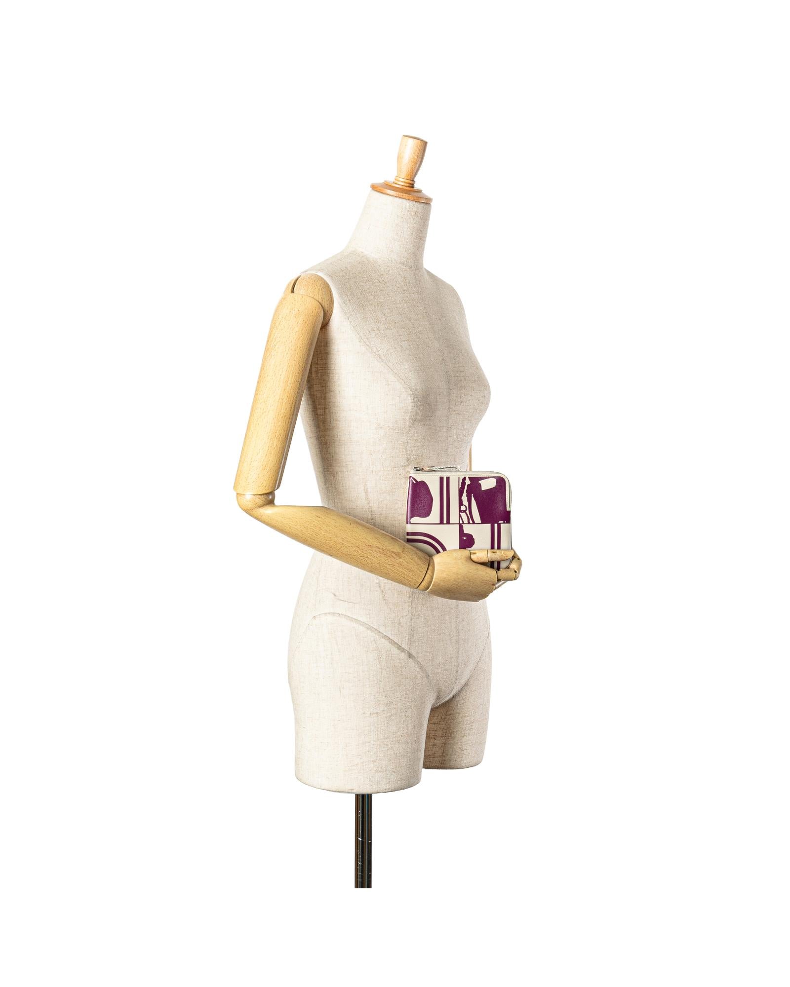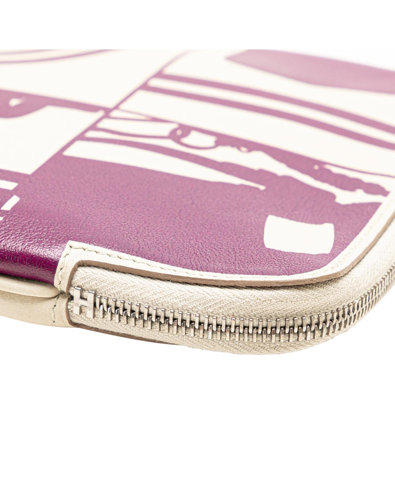 This Pouch features a printed leather body a top zip closure and an interior slip pocket.