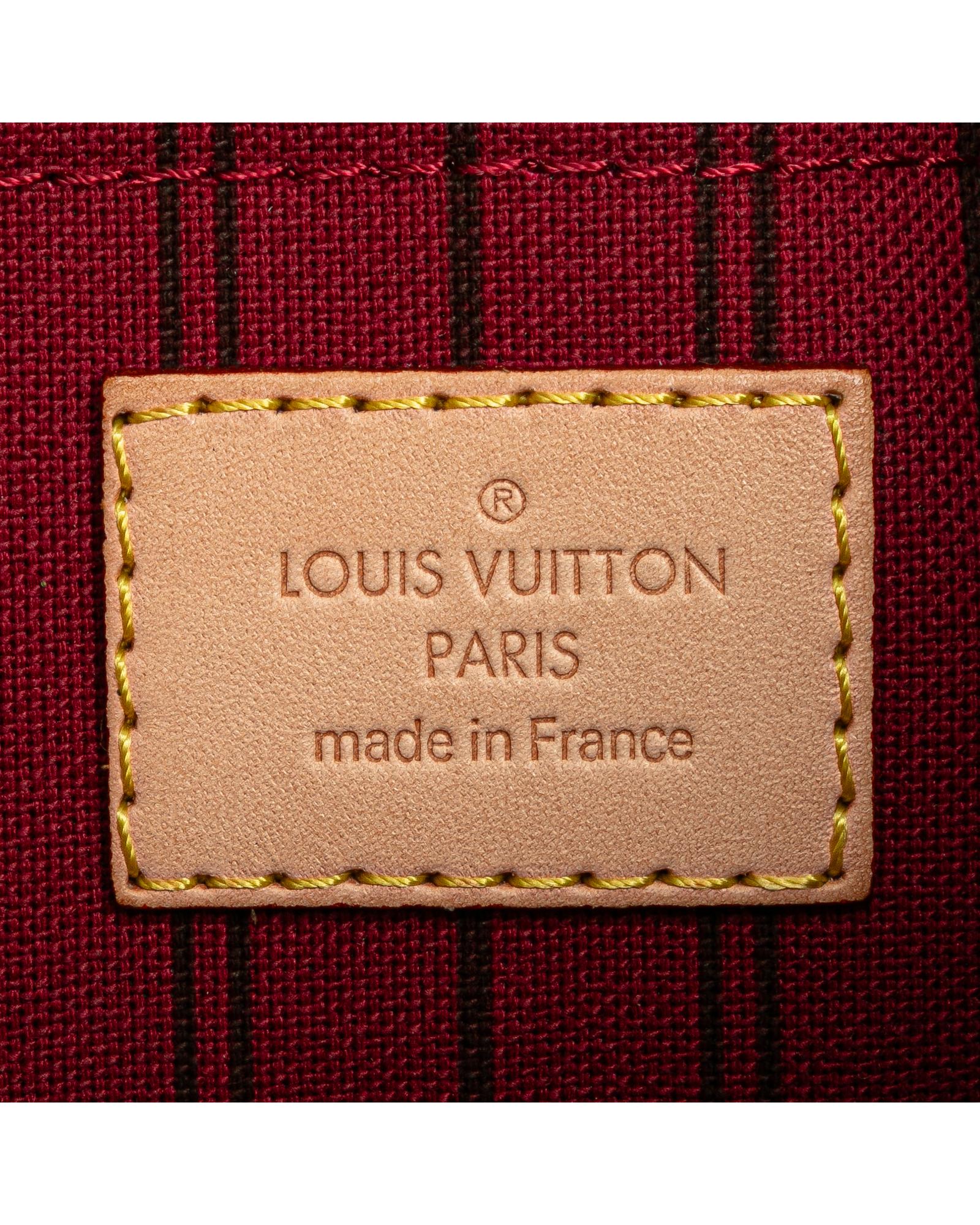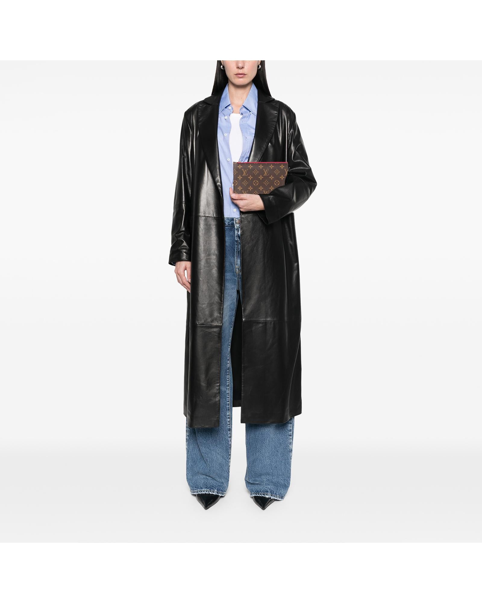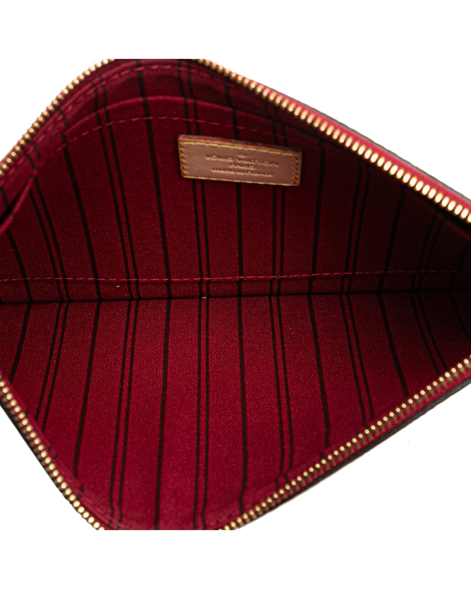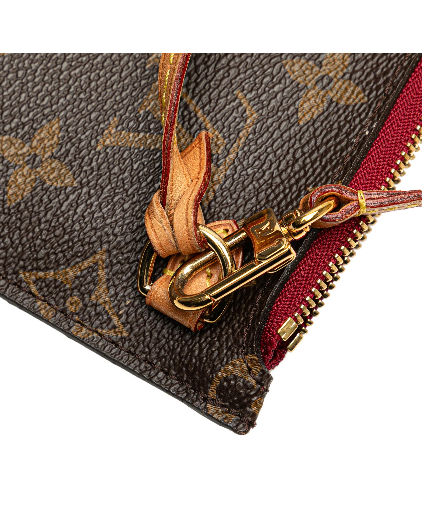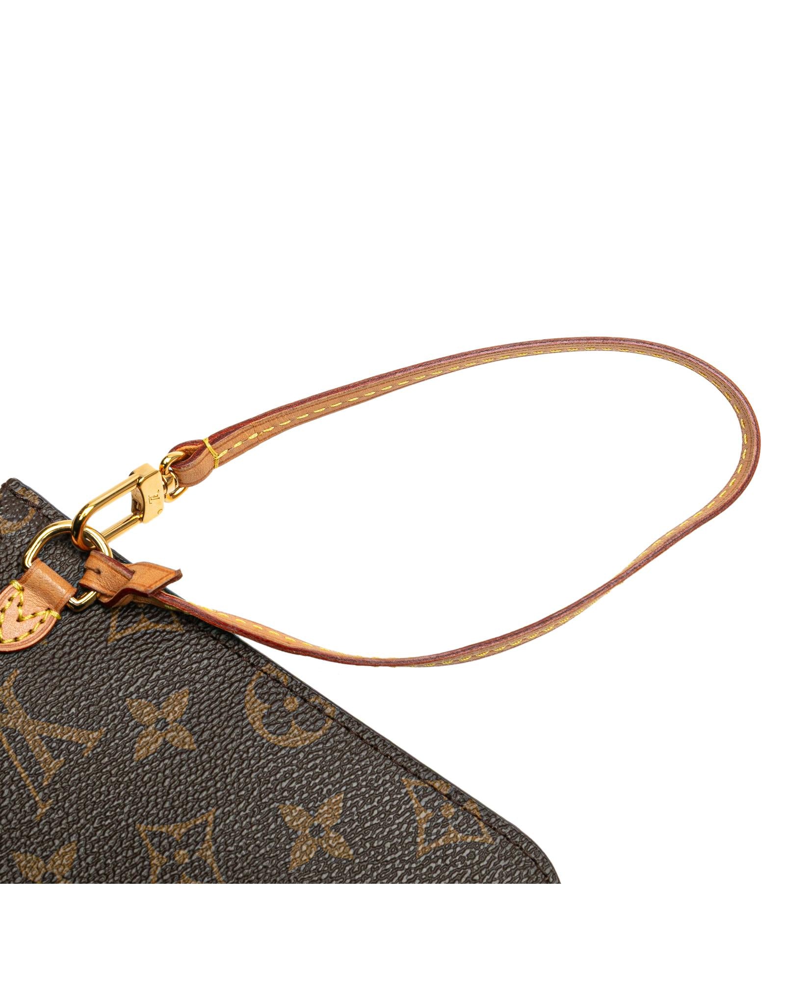 This pouch features a monogram canvas body a flat vachetta leather wrist strap a top zip closure and an interior slip pocket.Brand: Louis Vuitton Vintage