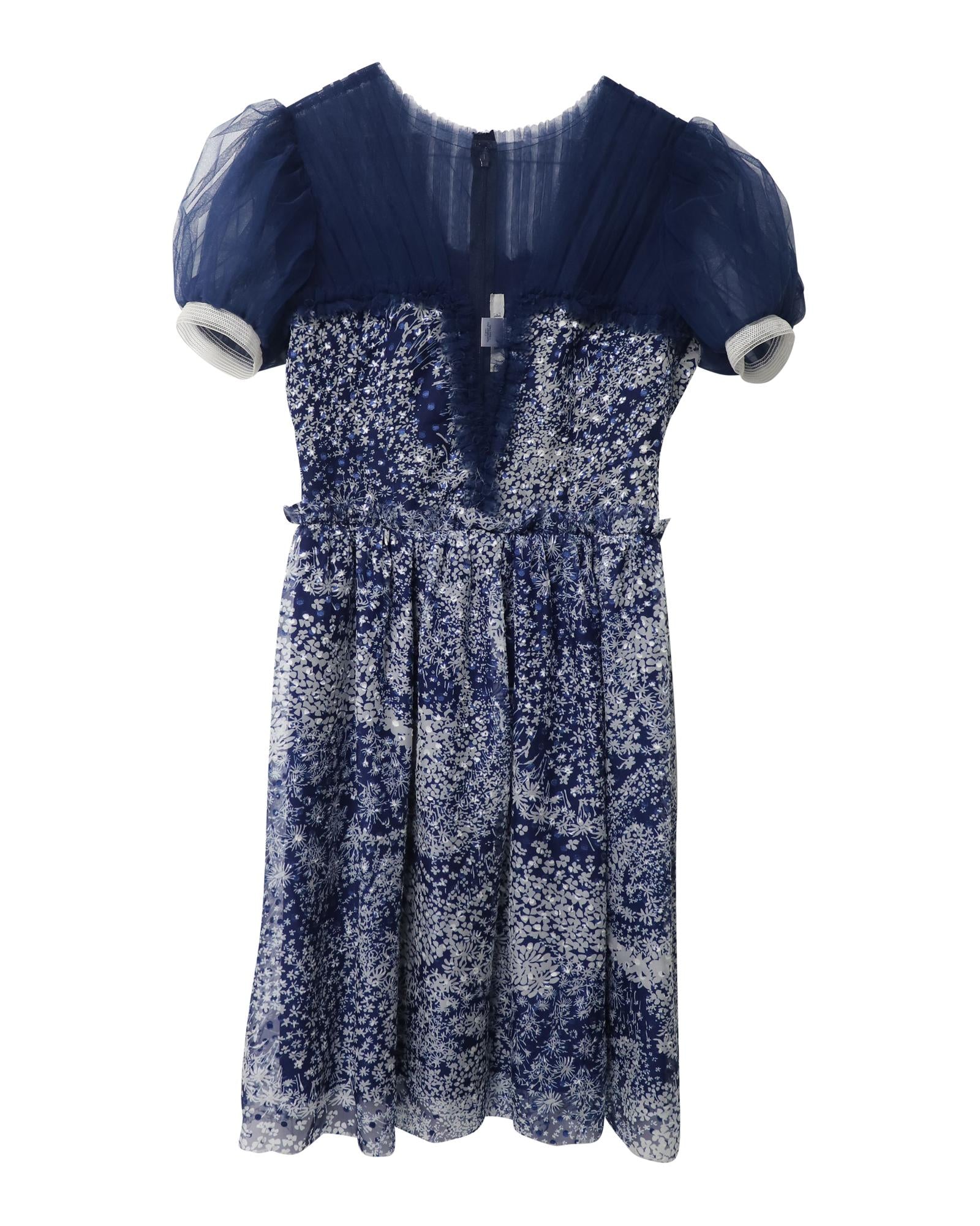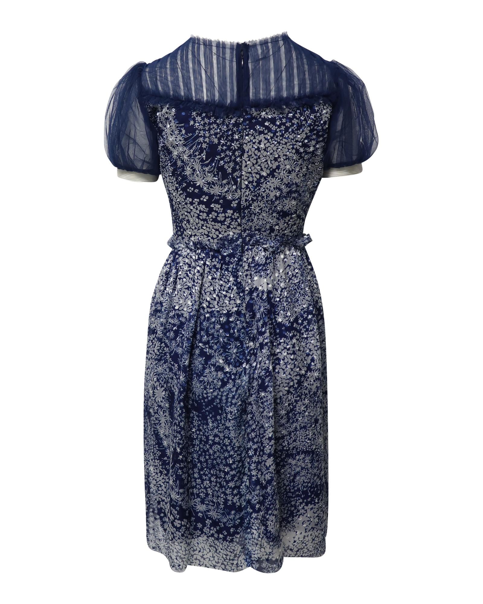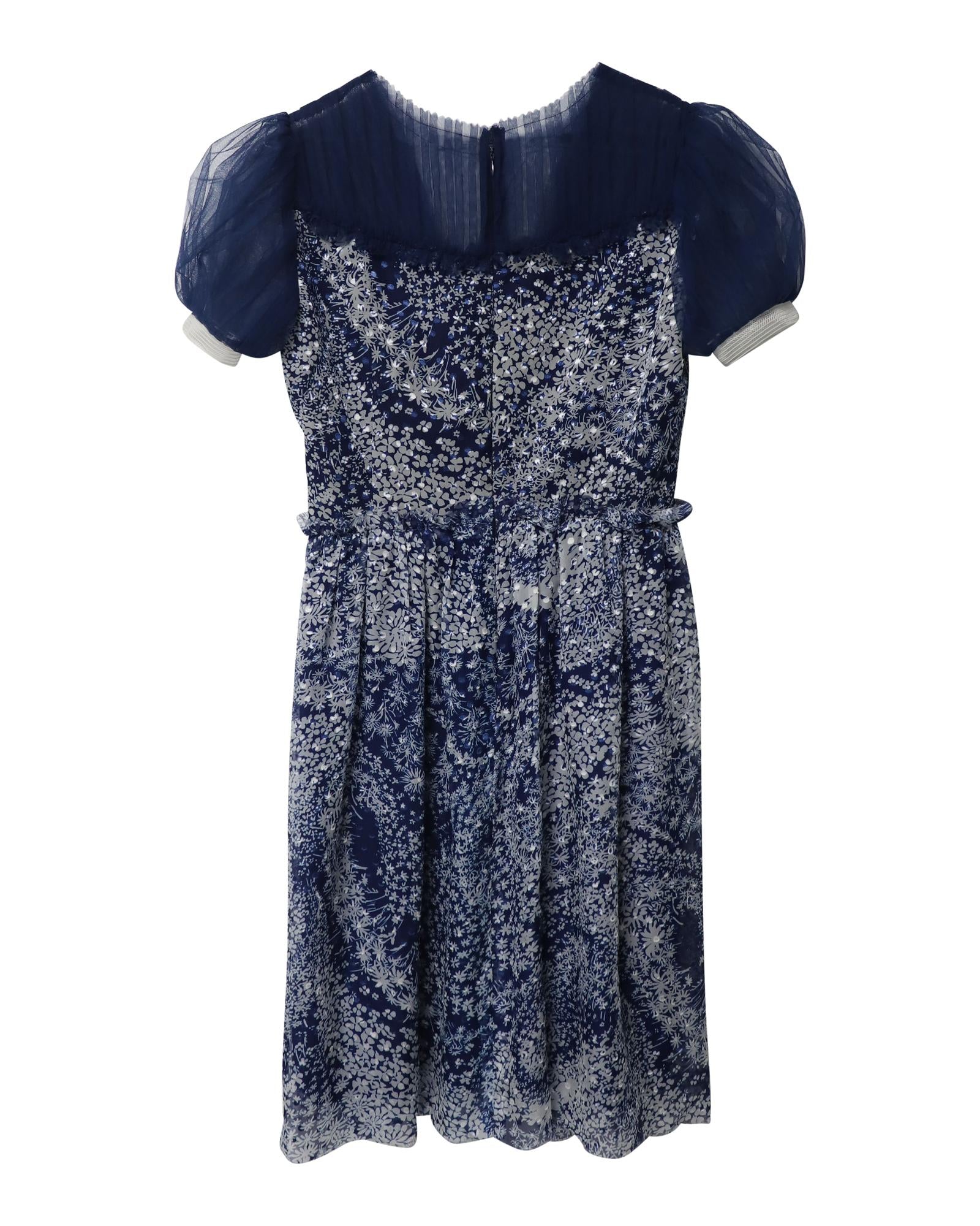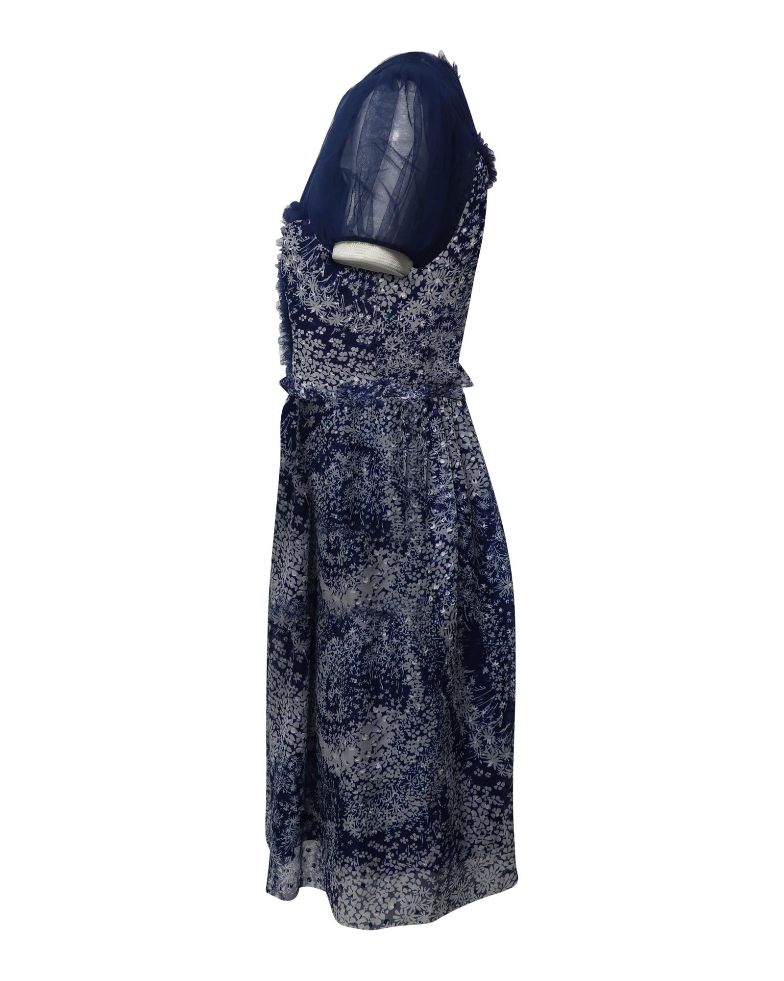 Pre-owned Floral Print Midi Dress Puff Sleeves