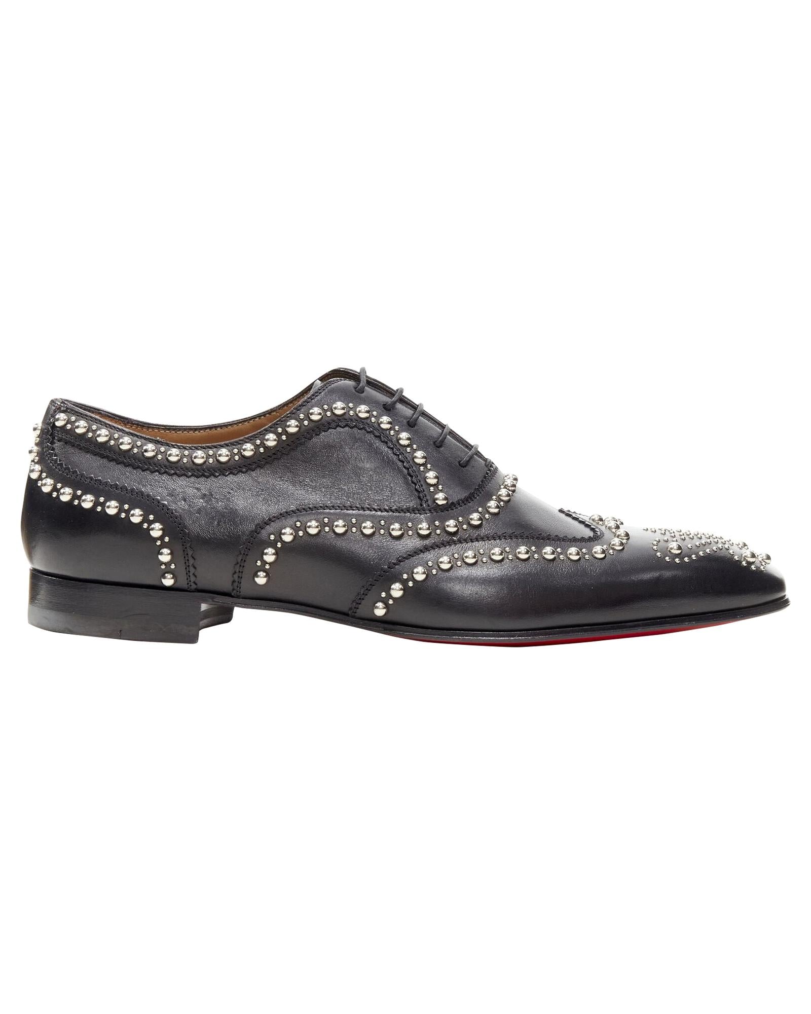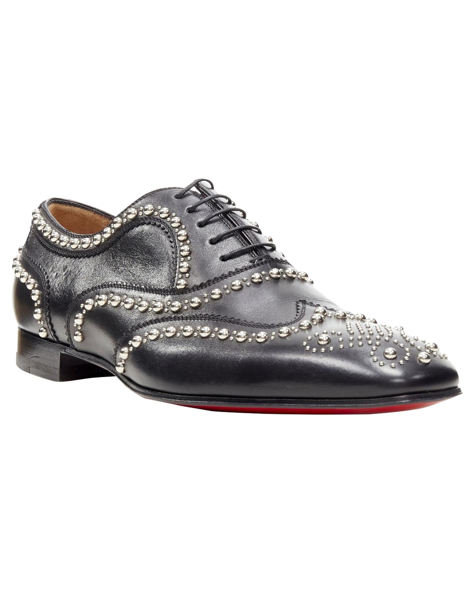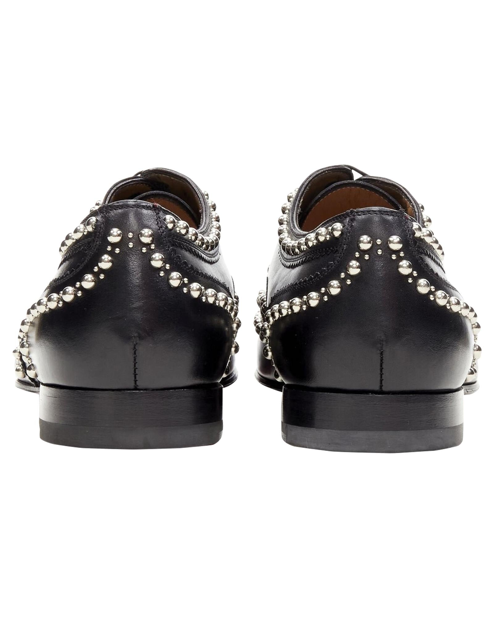Pre-owned Stylish Leather Lace-Up Oxford Shoes with Studded Detailing