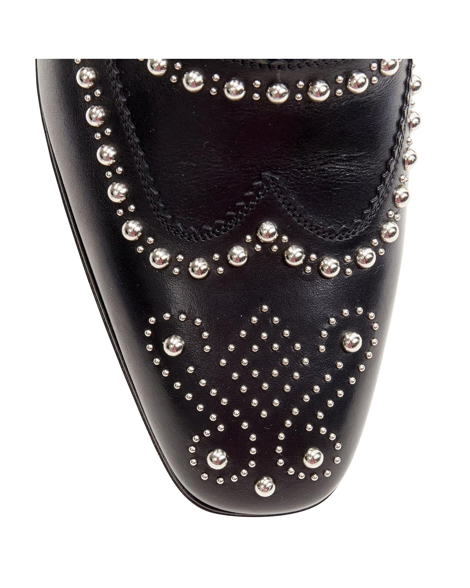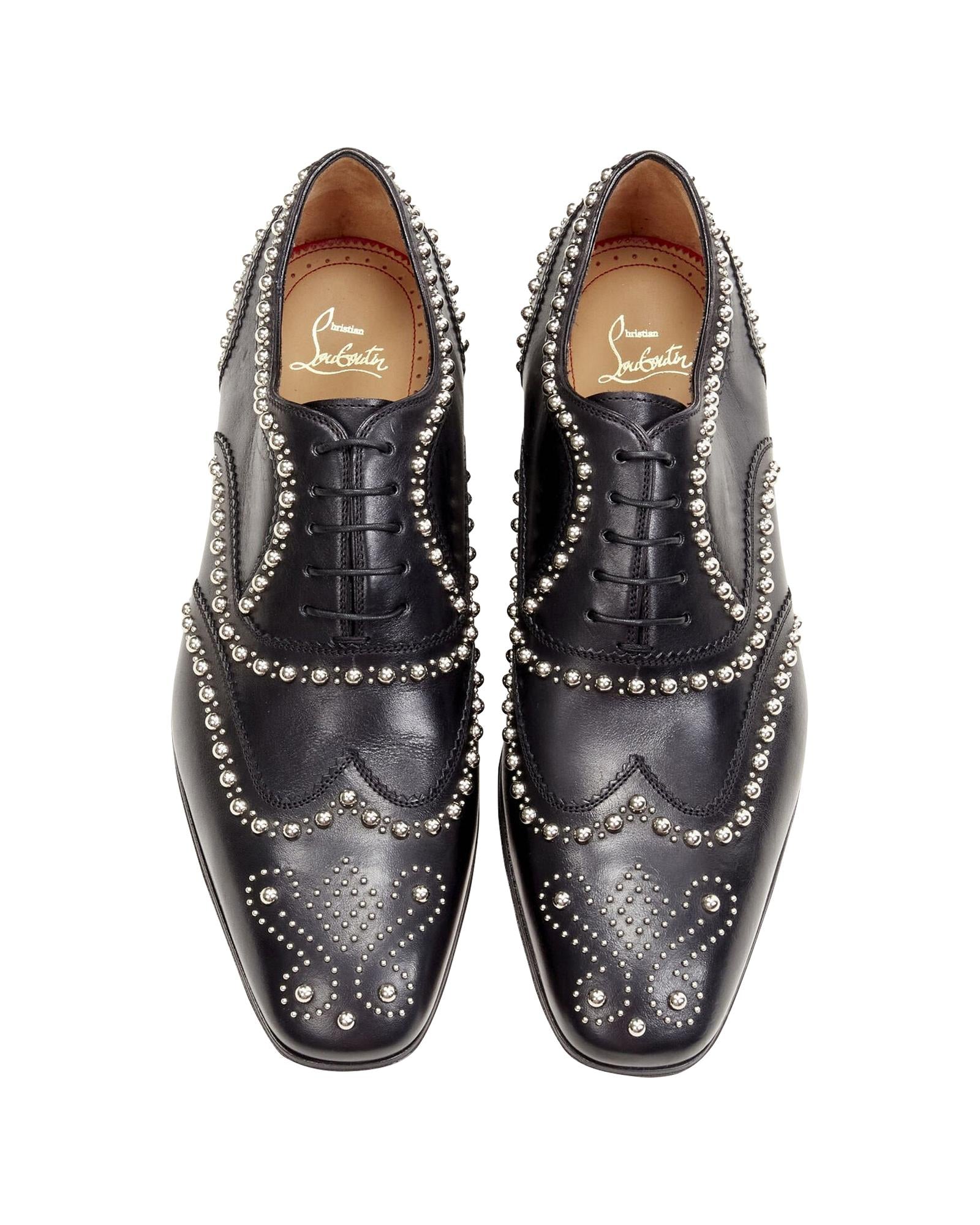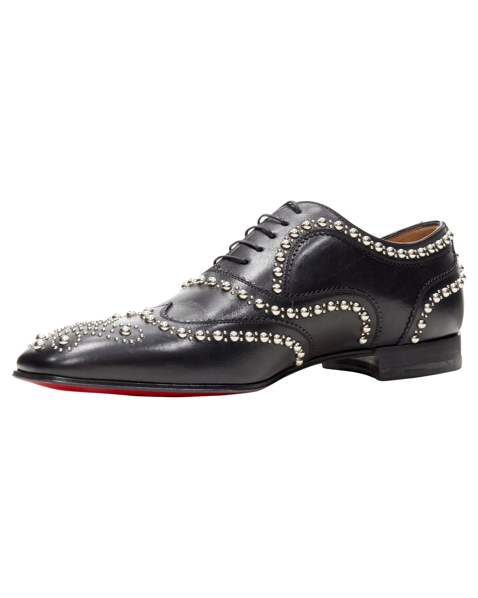 Pre-owned Stylish Leather Lace-Up Oxford Shoes with Studded Detailing