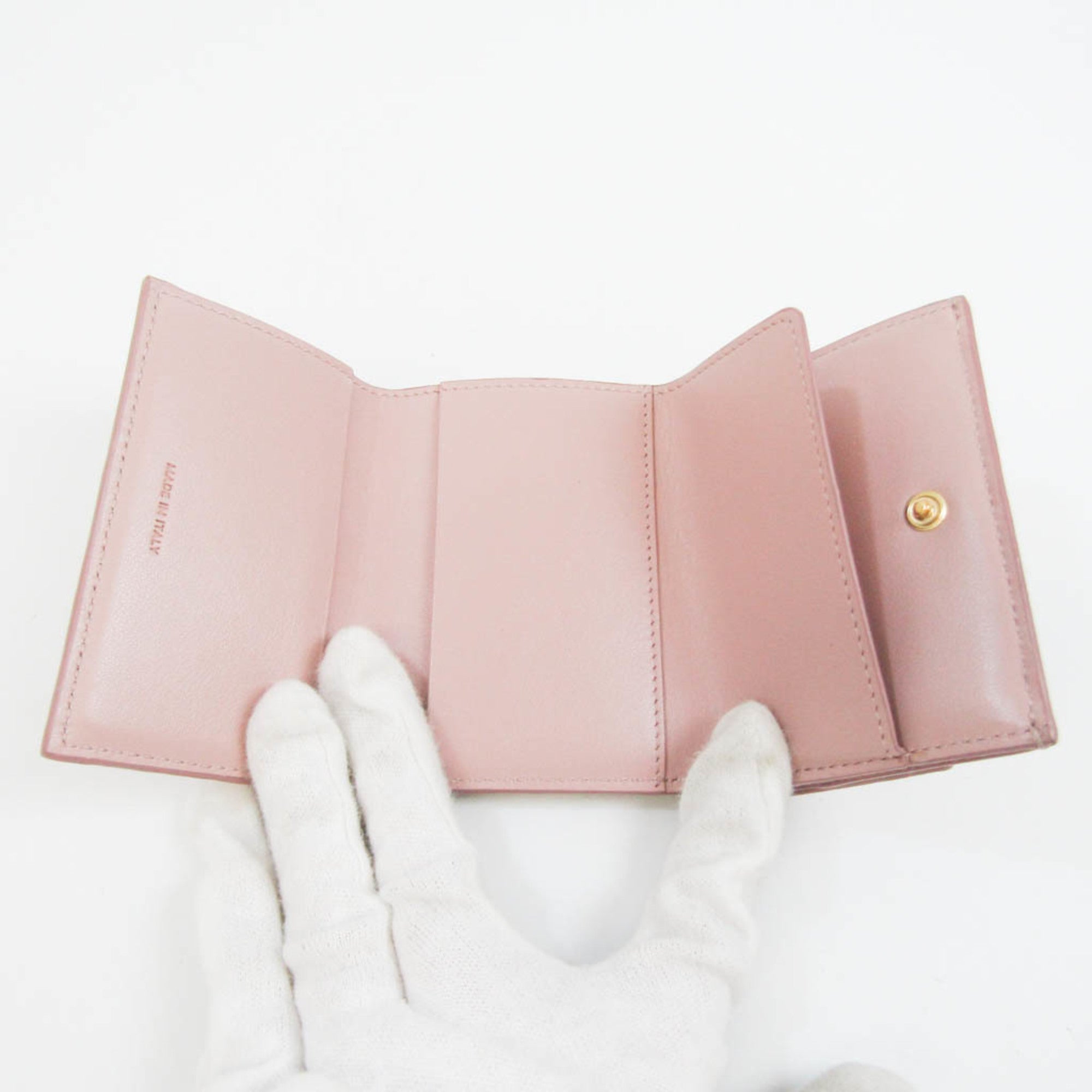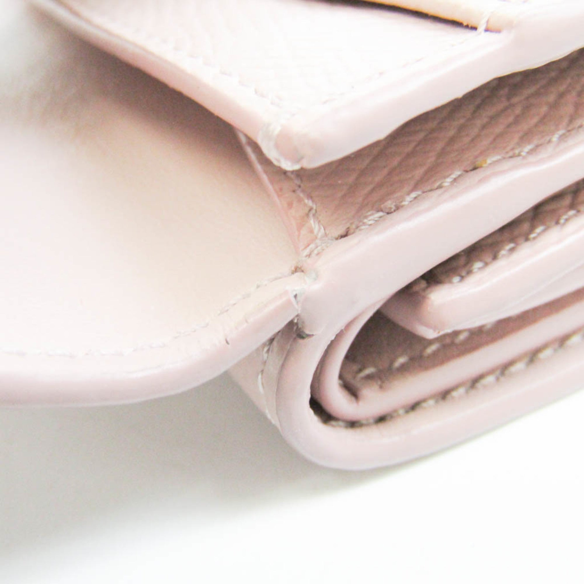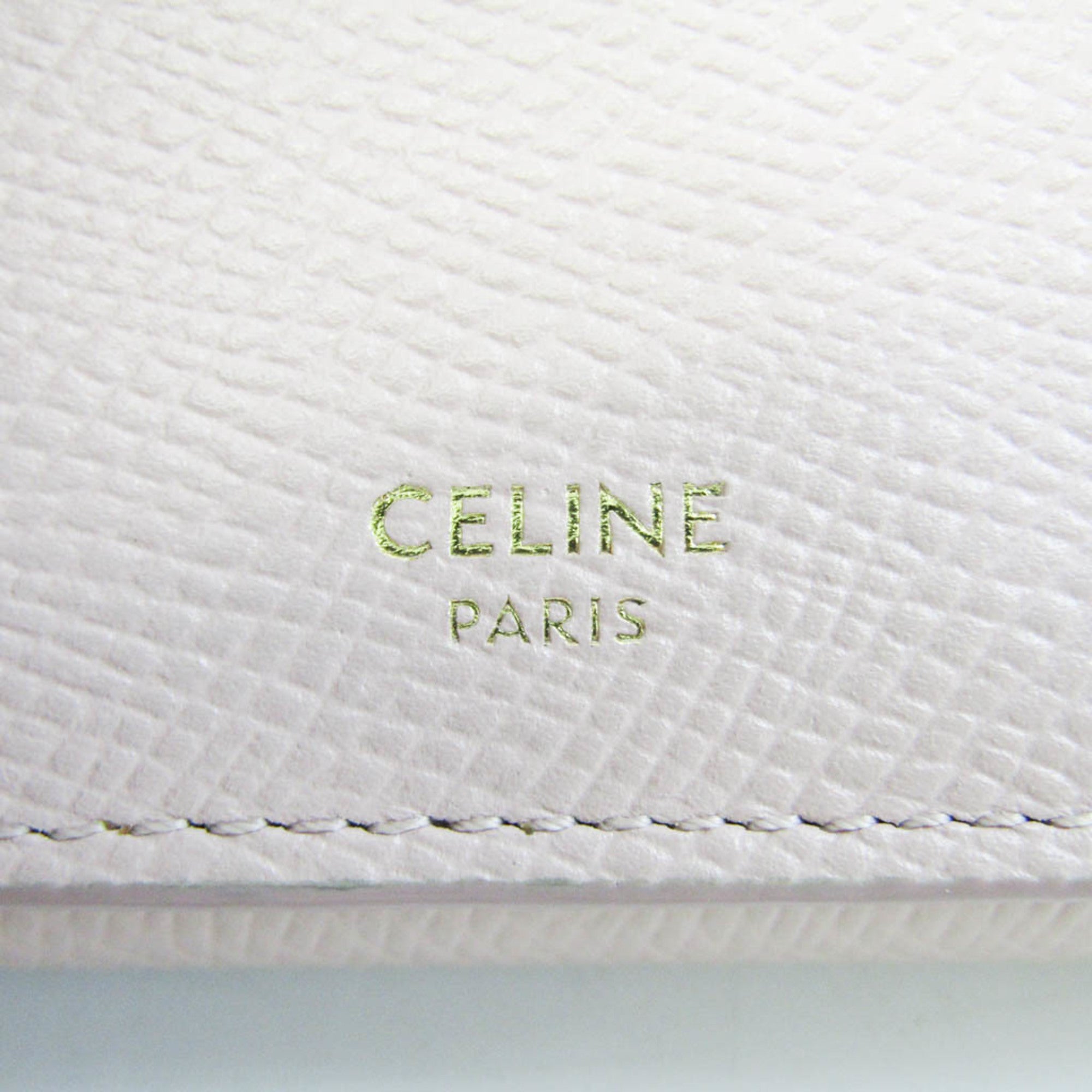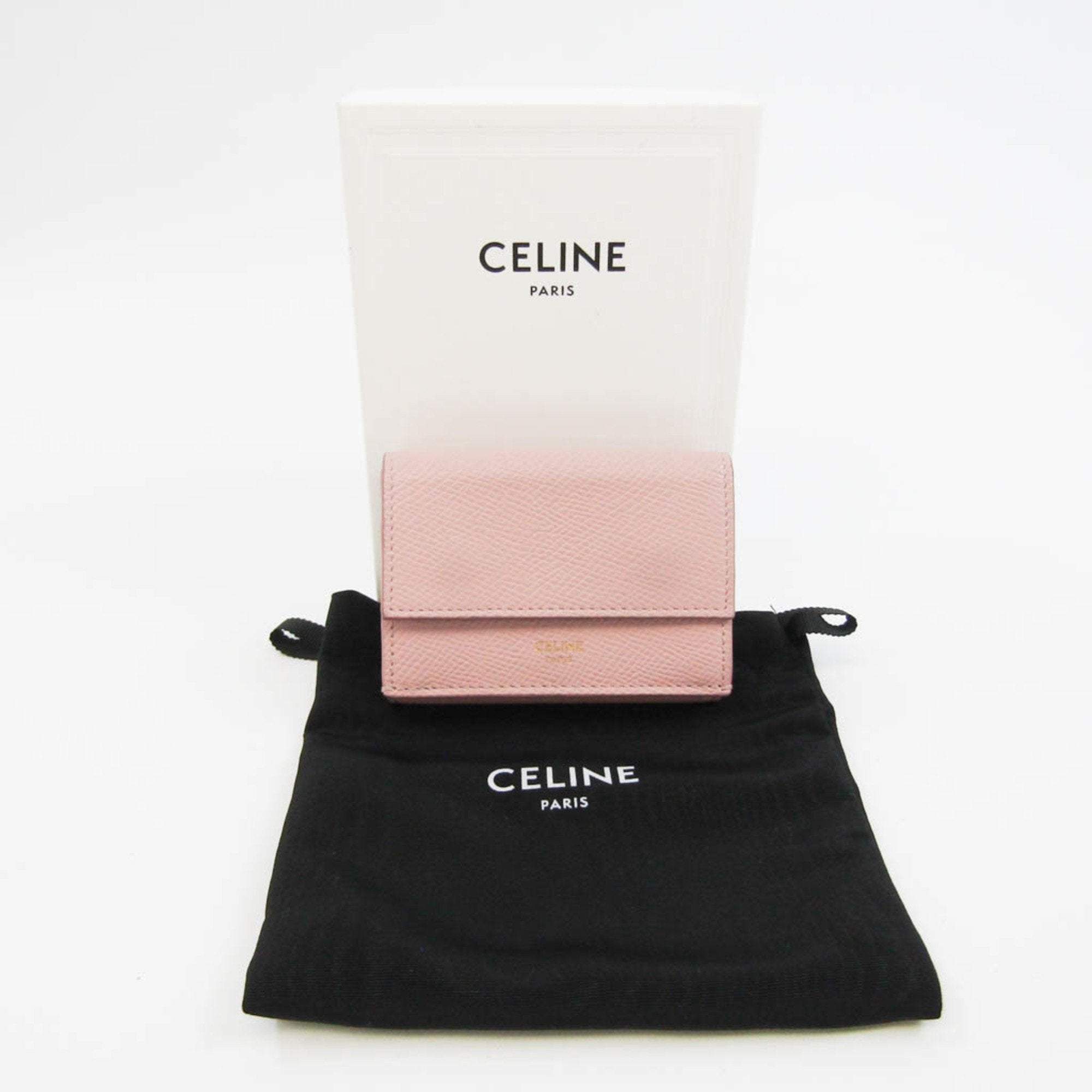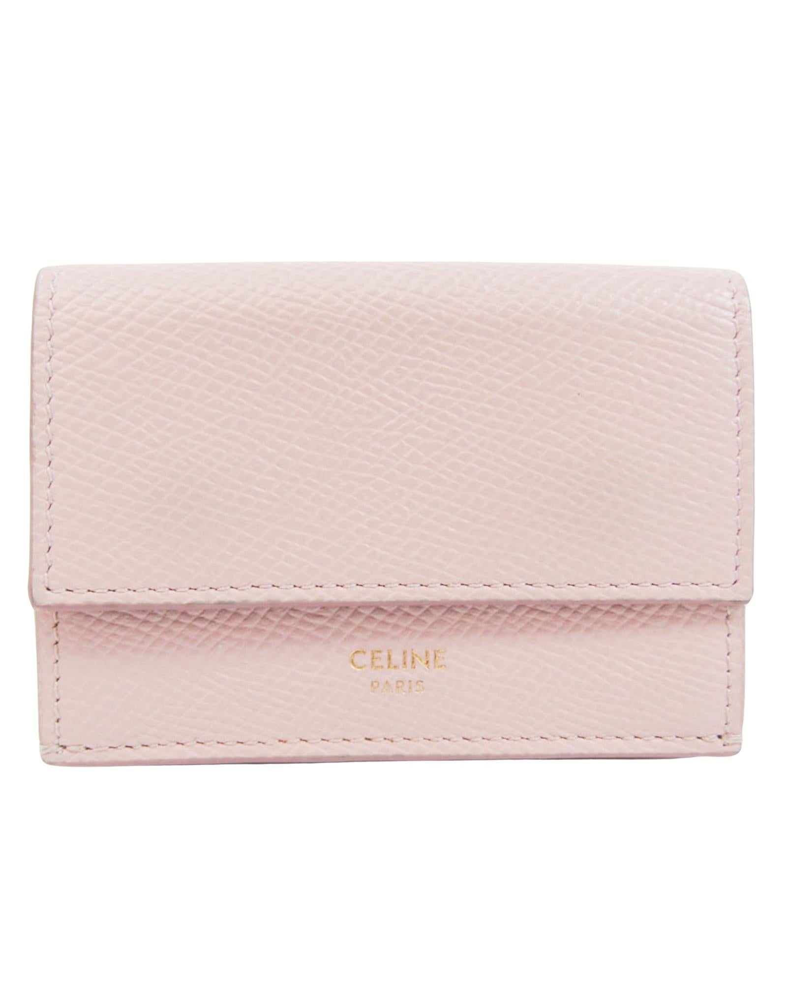 The Celine Folded Compact Wallet designed for women is a stylish tri-fold wallet in a delightful light pink leather making it a charming accessory.