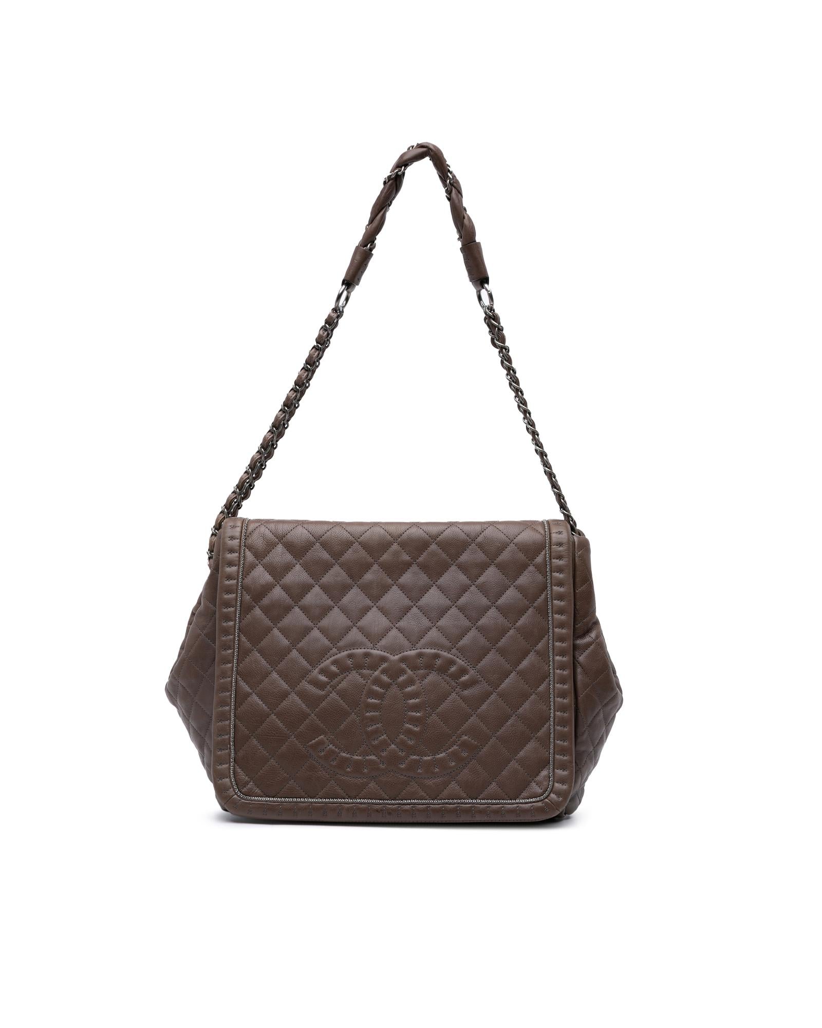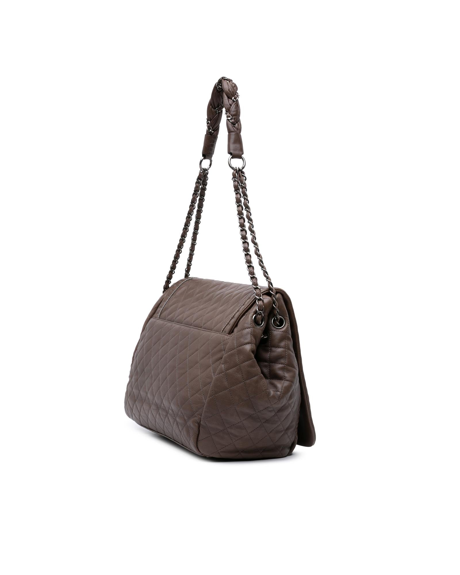 Large Quilted Calfskin Accordion Flap Bag with Chain Strap