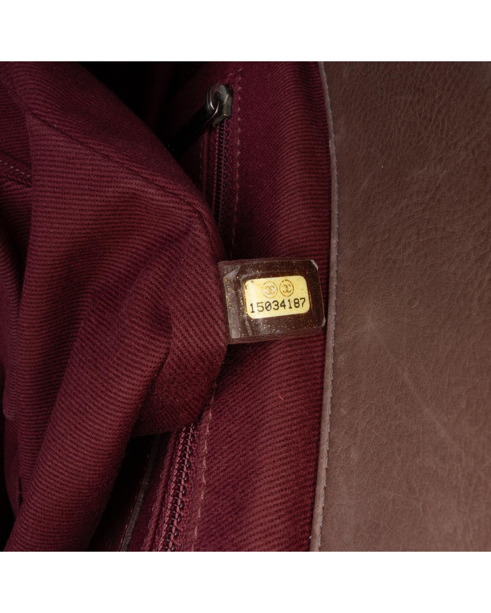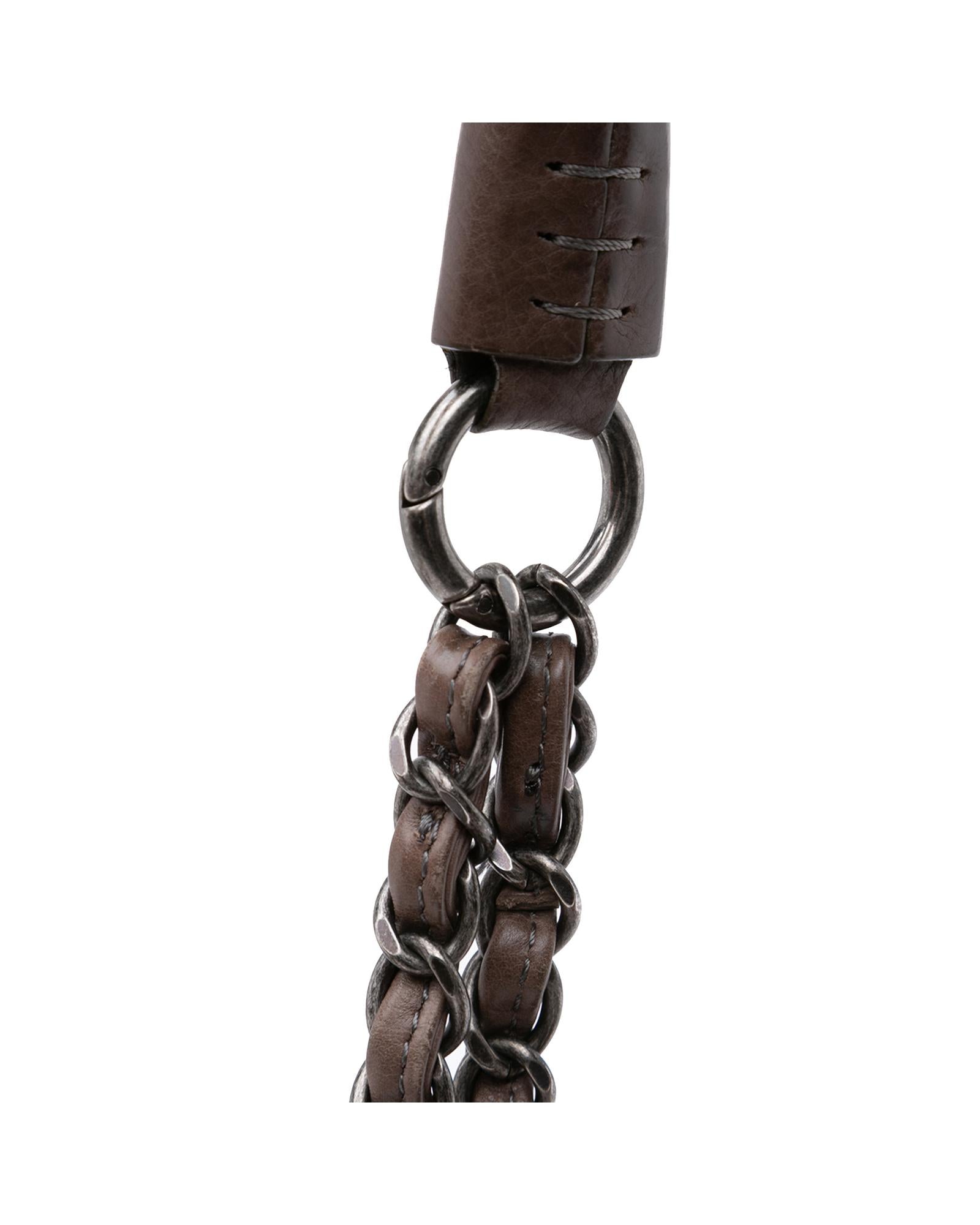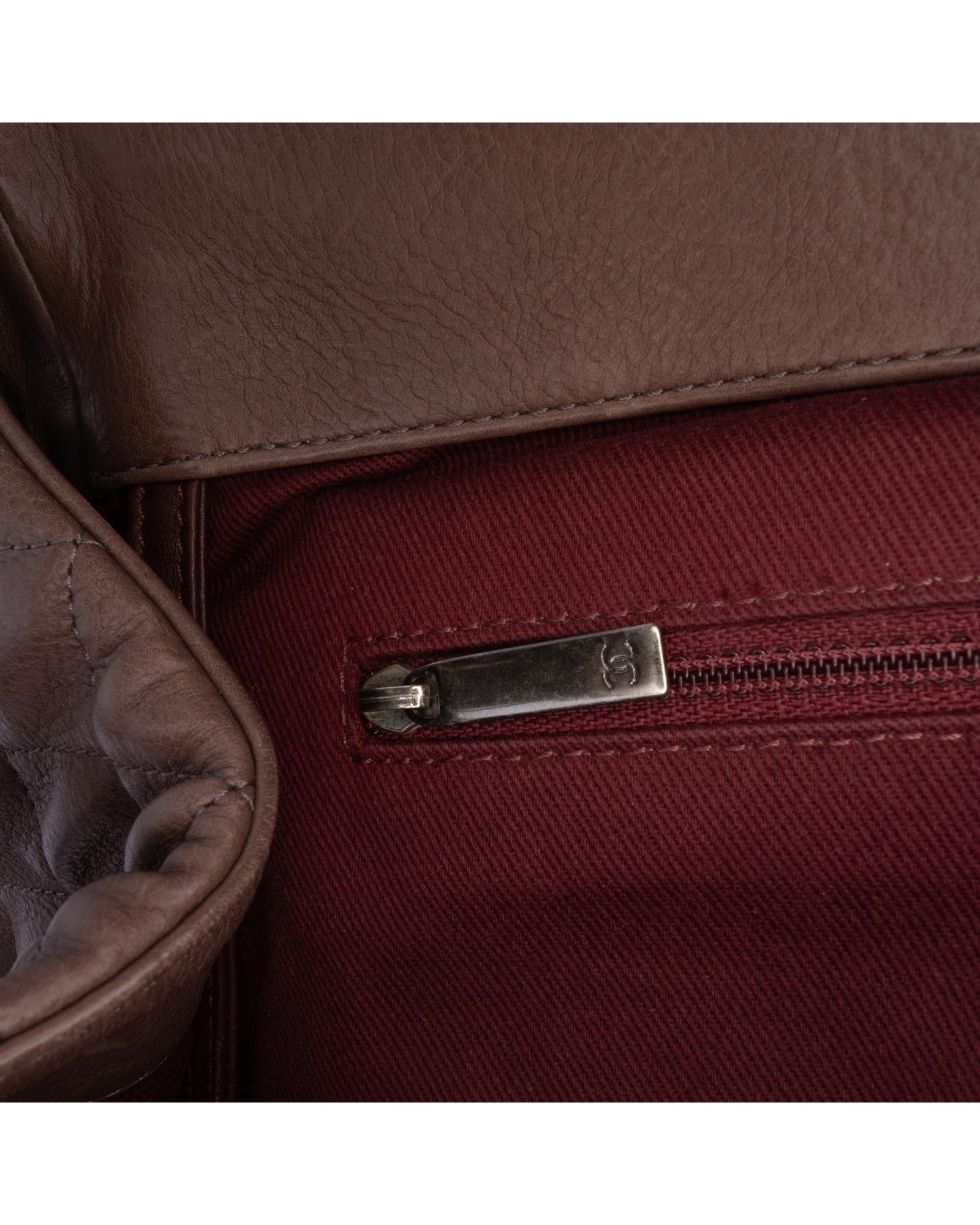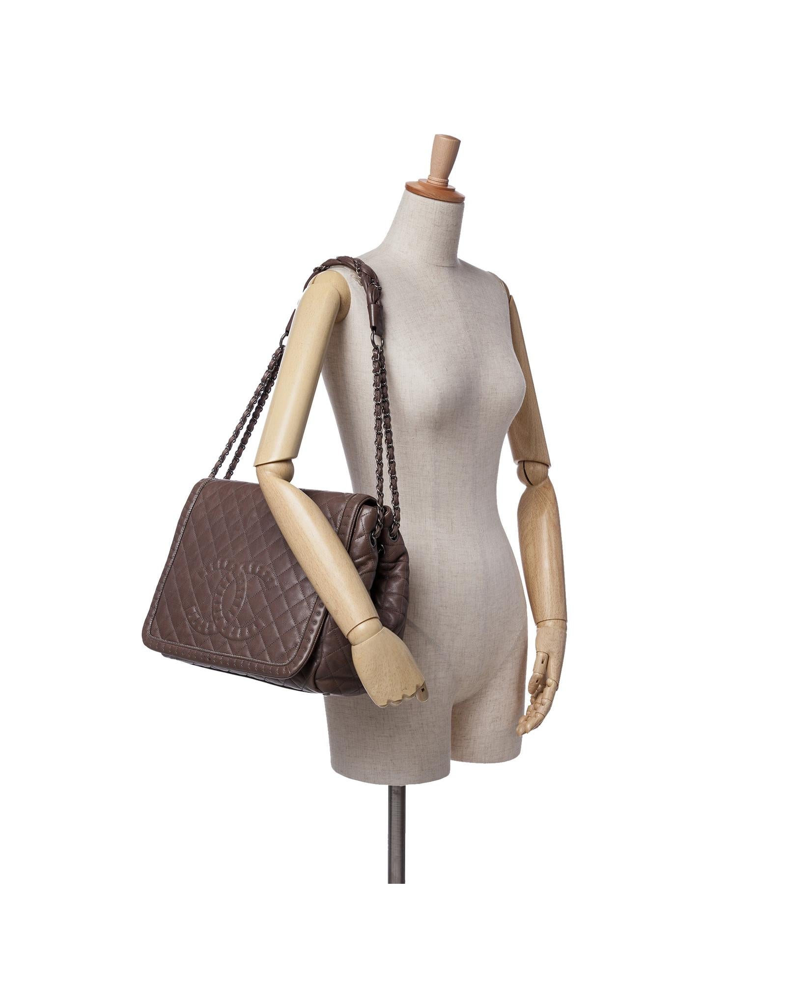 This flap bag features a quilted leather body a leather-woven chain link strap a front flap closure and interior zip and slip pockets.Brand: Chanel