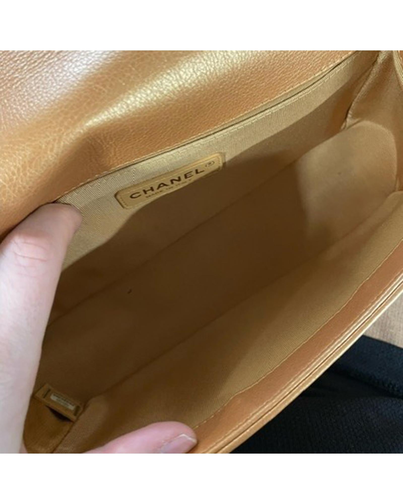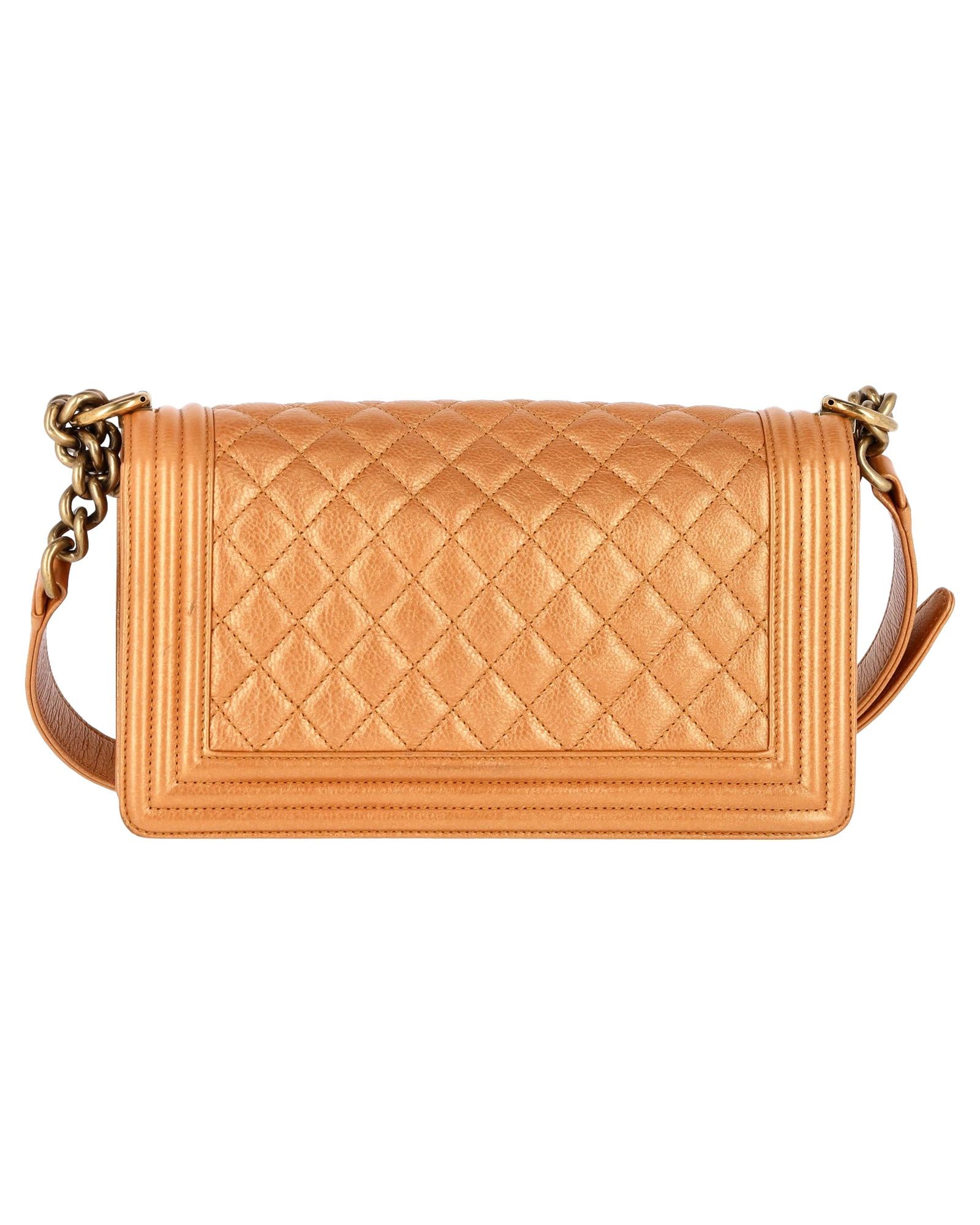• Quilted Medium Boy Flap Bag in Brown Lambskin Leather